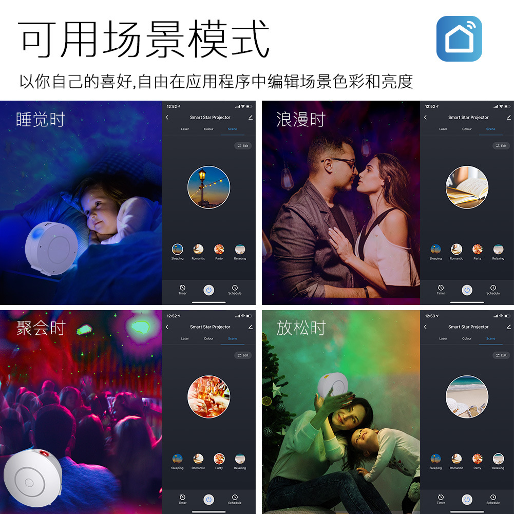 WiFi涂鸦智能家居星空投影仪app语音定时音乐律动圆形智能氛围灯