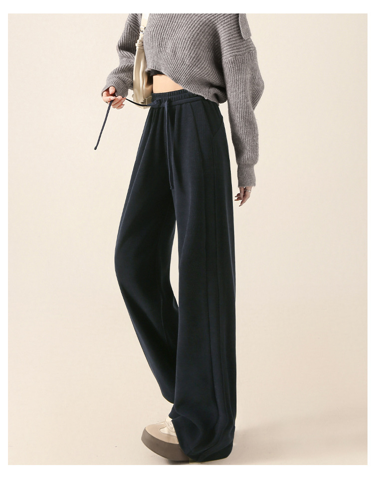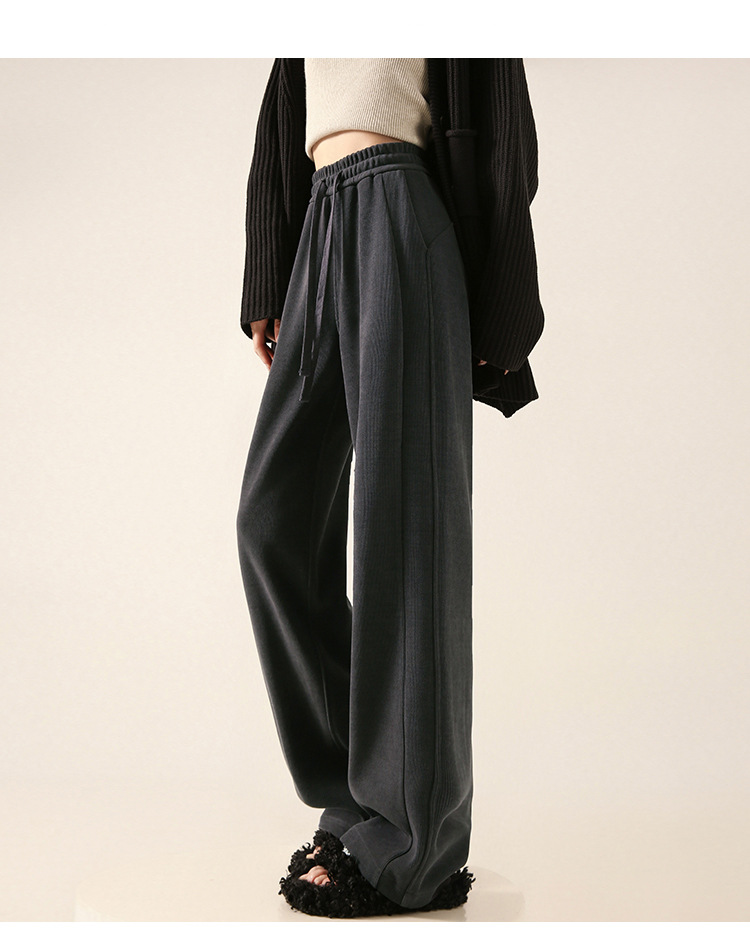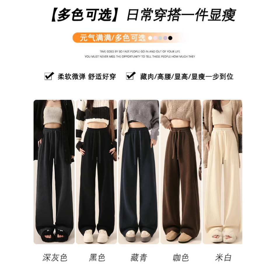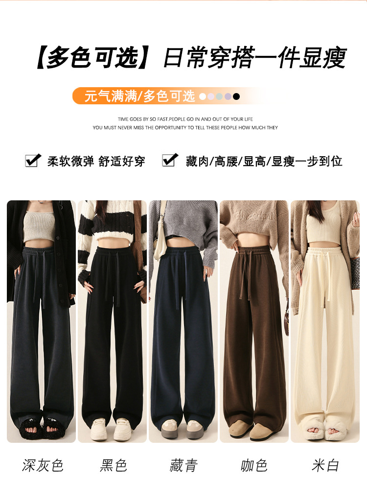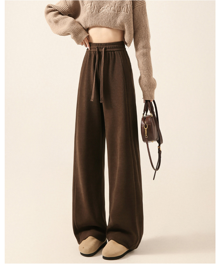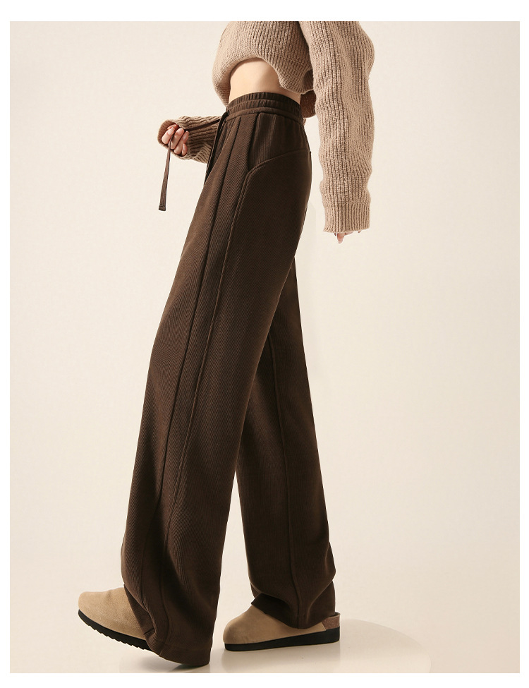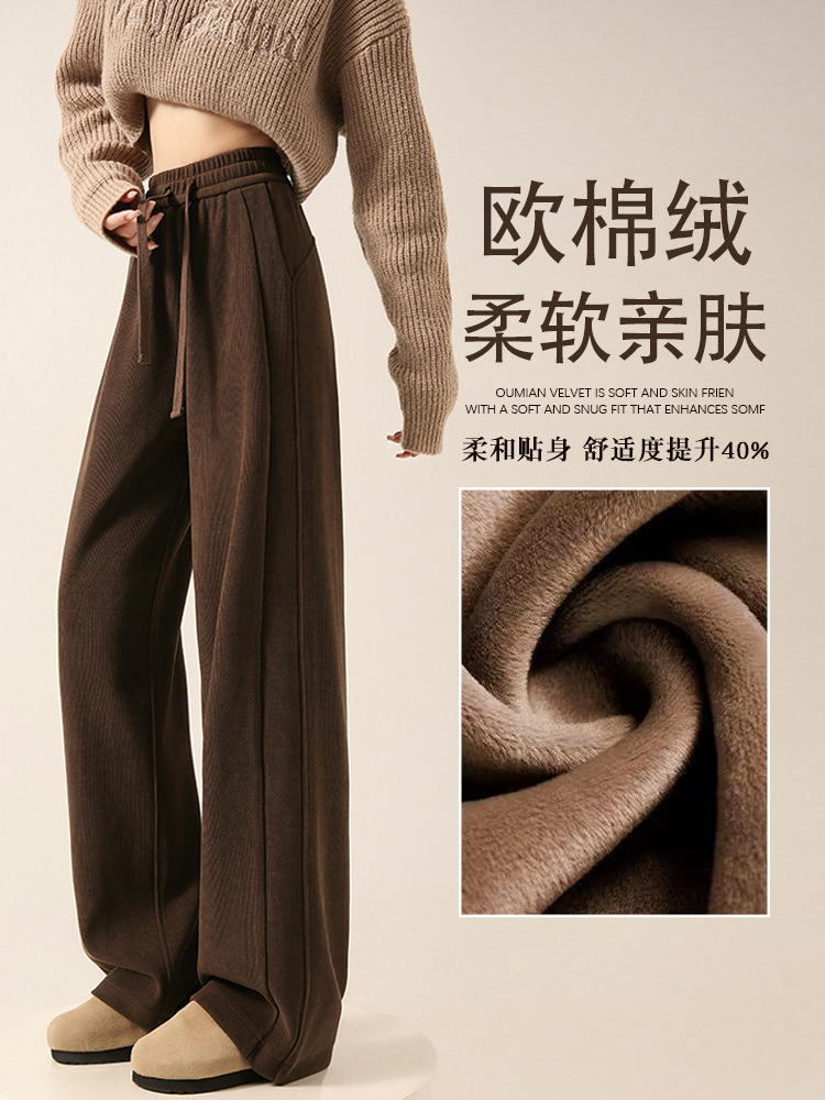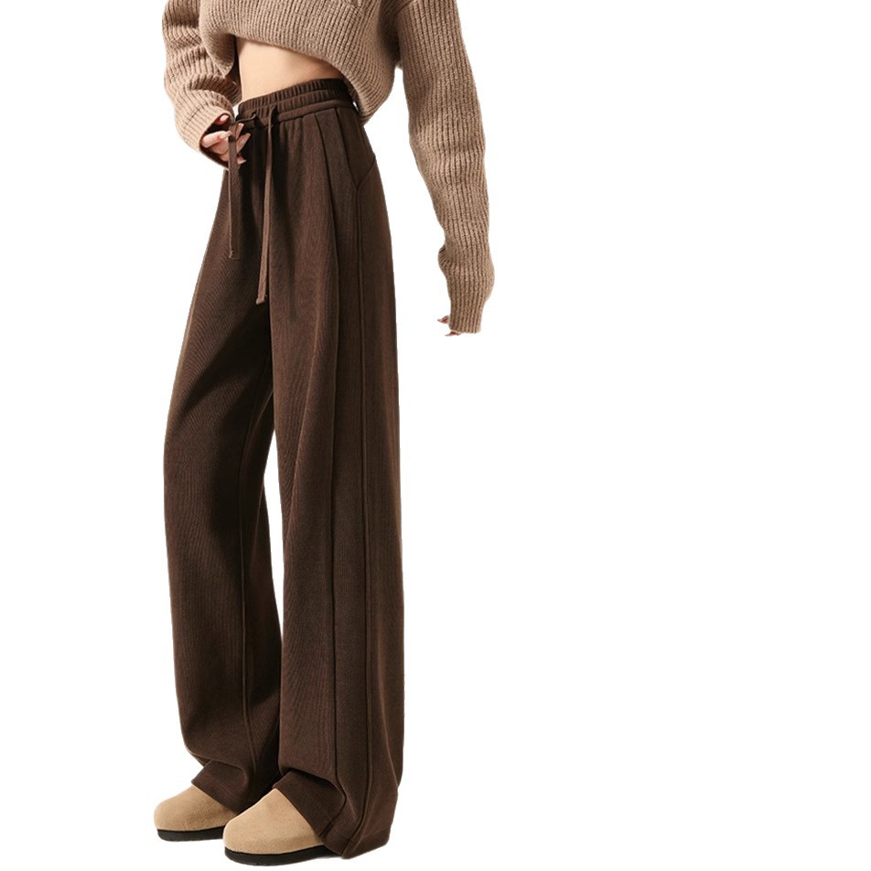 雪尼尔咖色阔腿裤女秋冬加绒2025新款休闲裤加长窄版直筒裤A8204