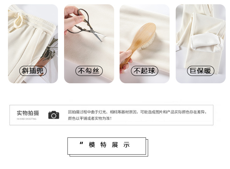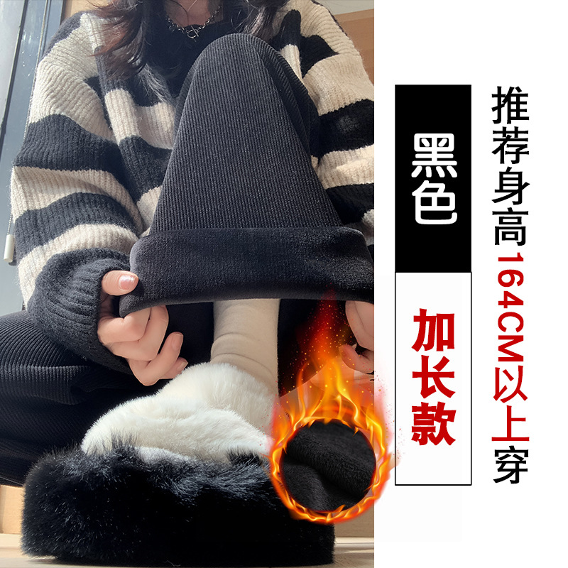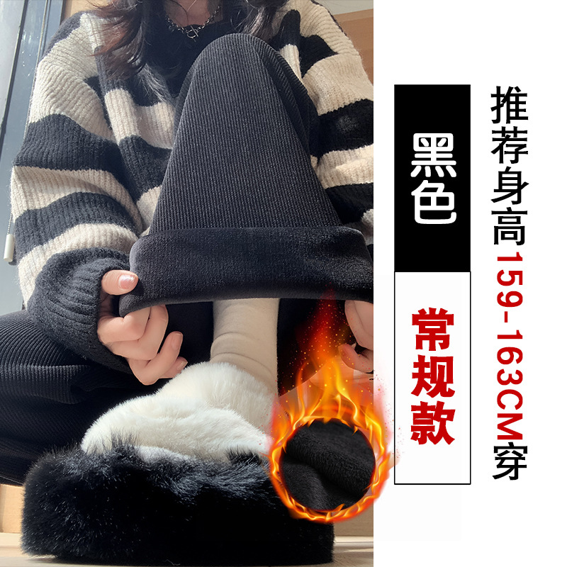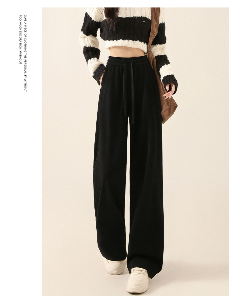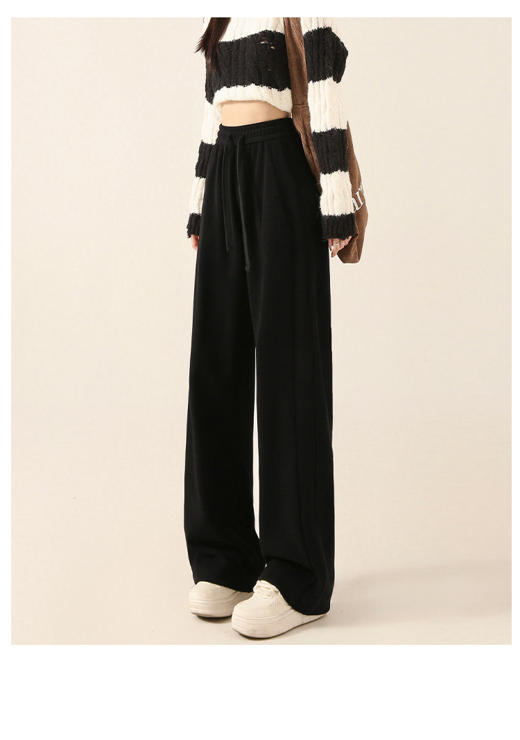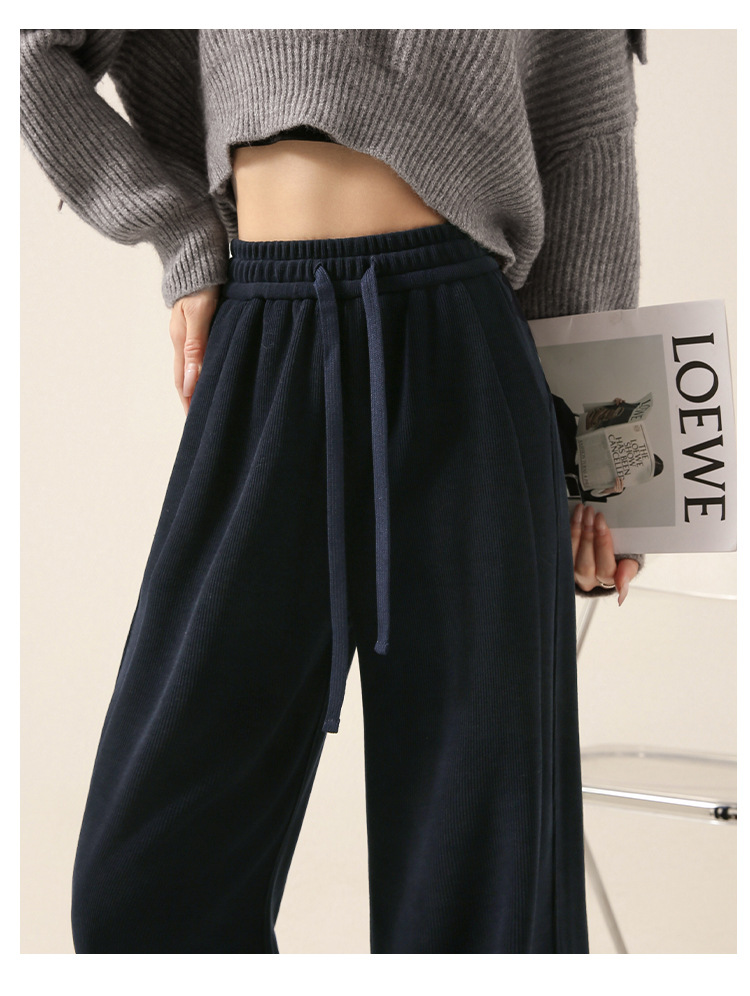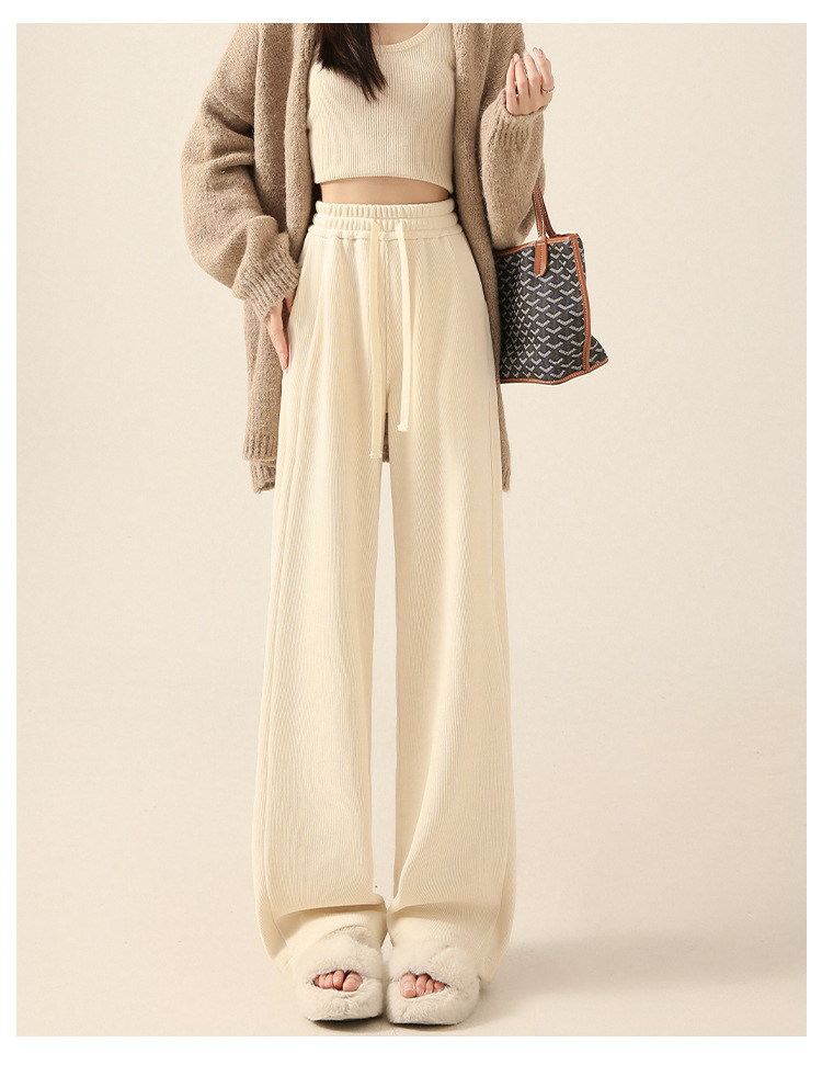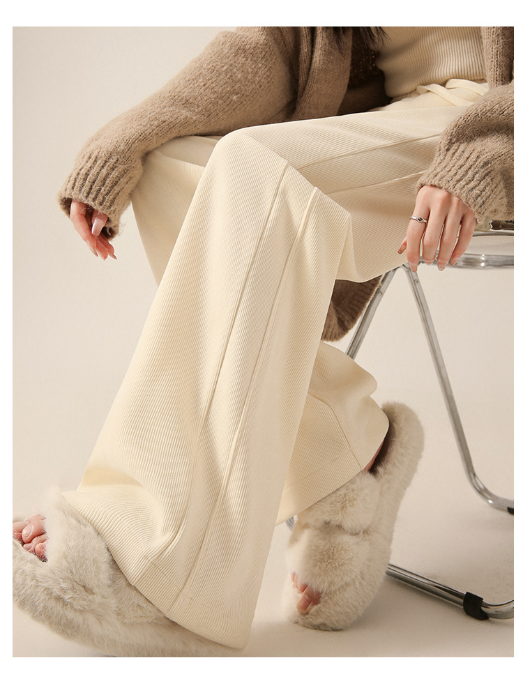 雪尼尔咖色阔腿裤女秋冬加绒2025新款休闲裤加长窄版直筒裤A8204