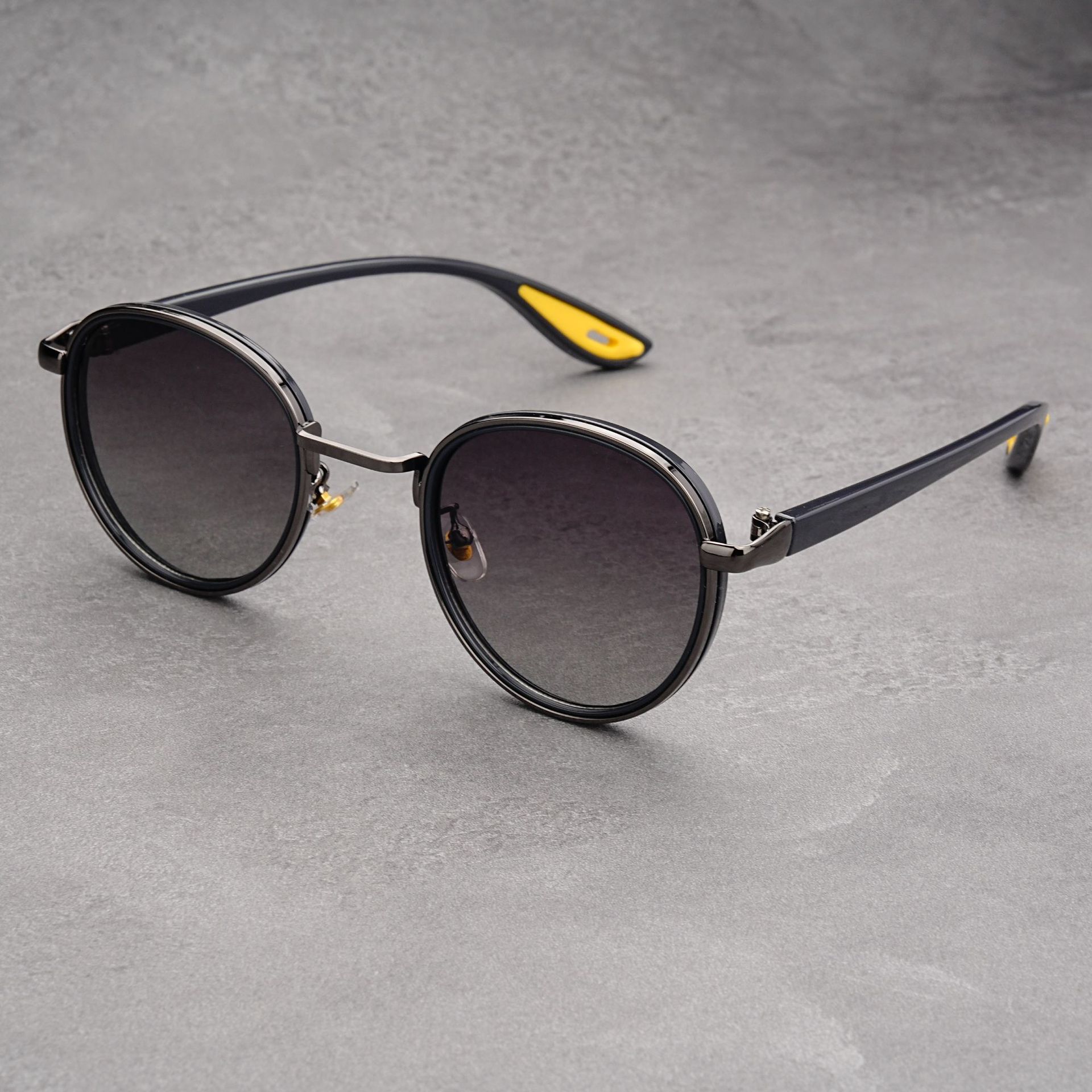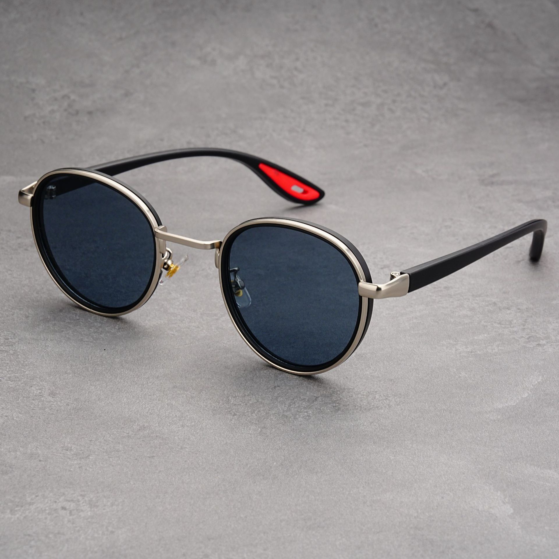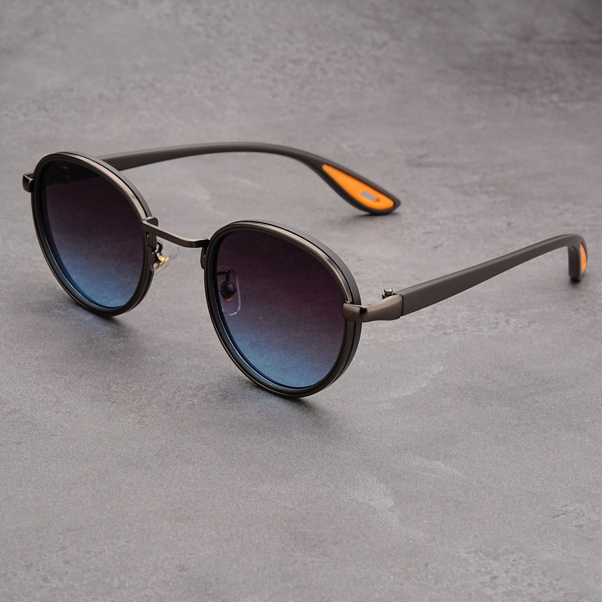 新款复古休闲金边圆形太阳眼镜网红同款个性嘻哈街拍凹造型墨镜男