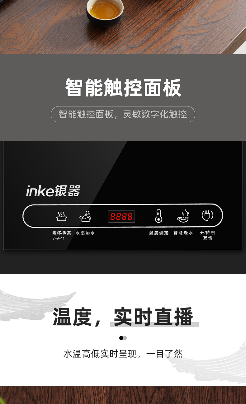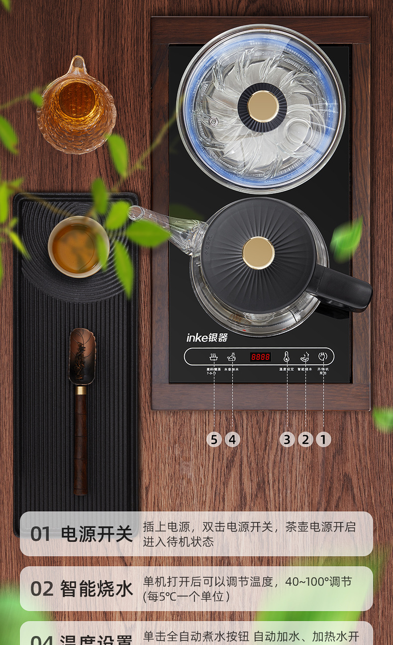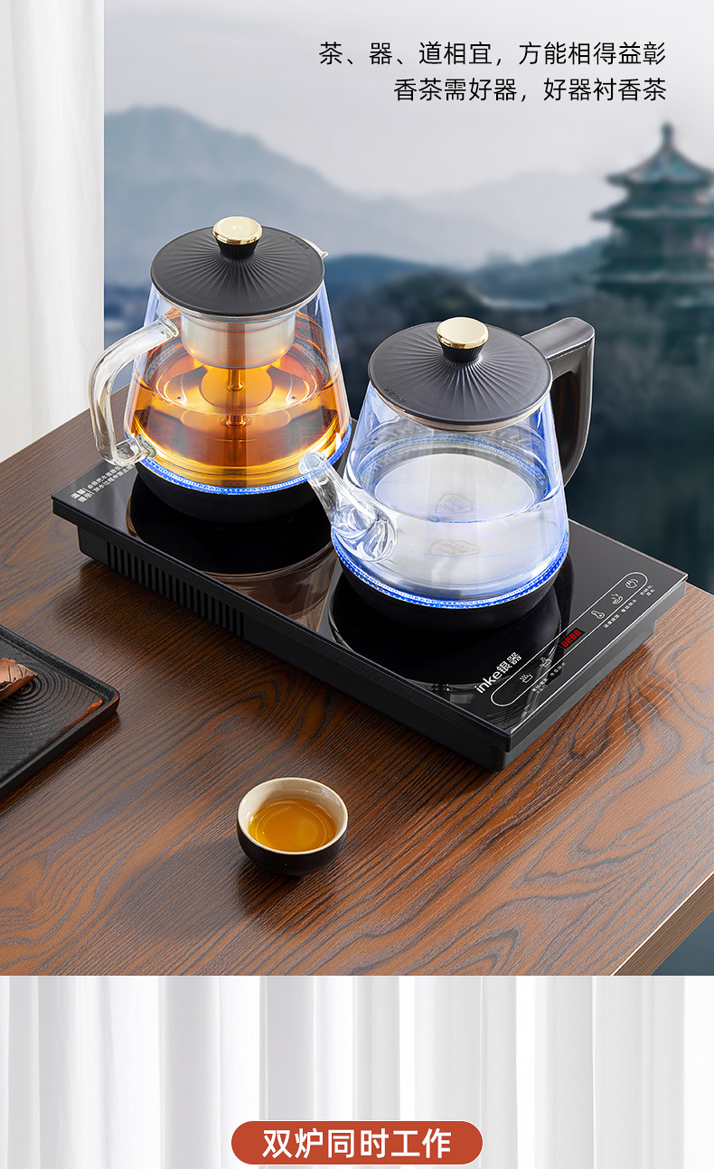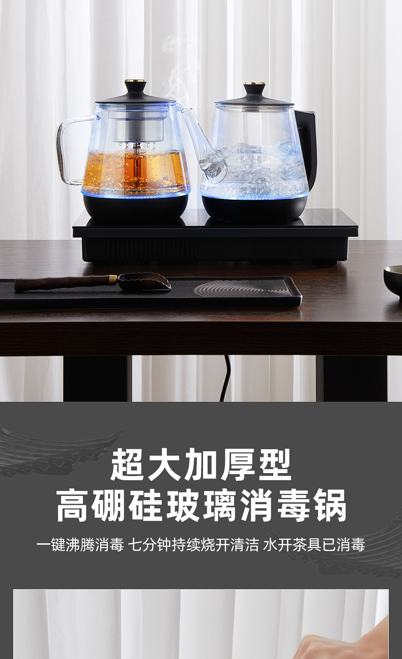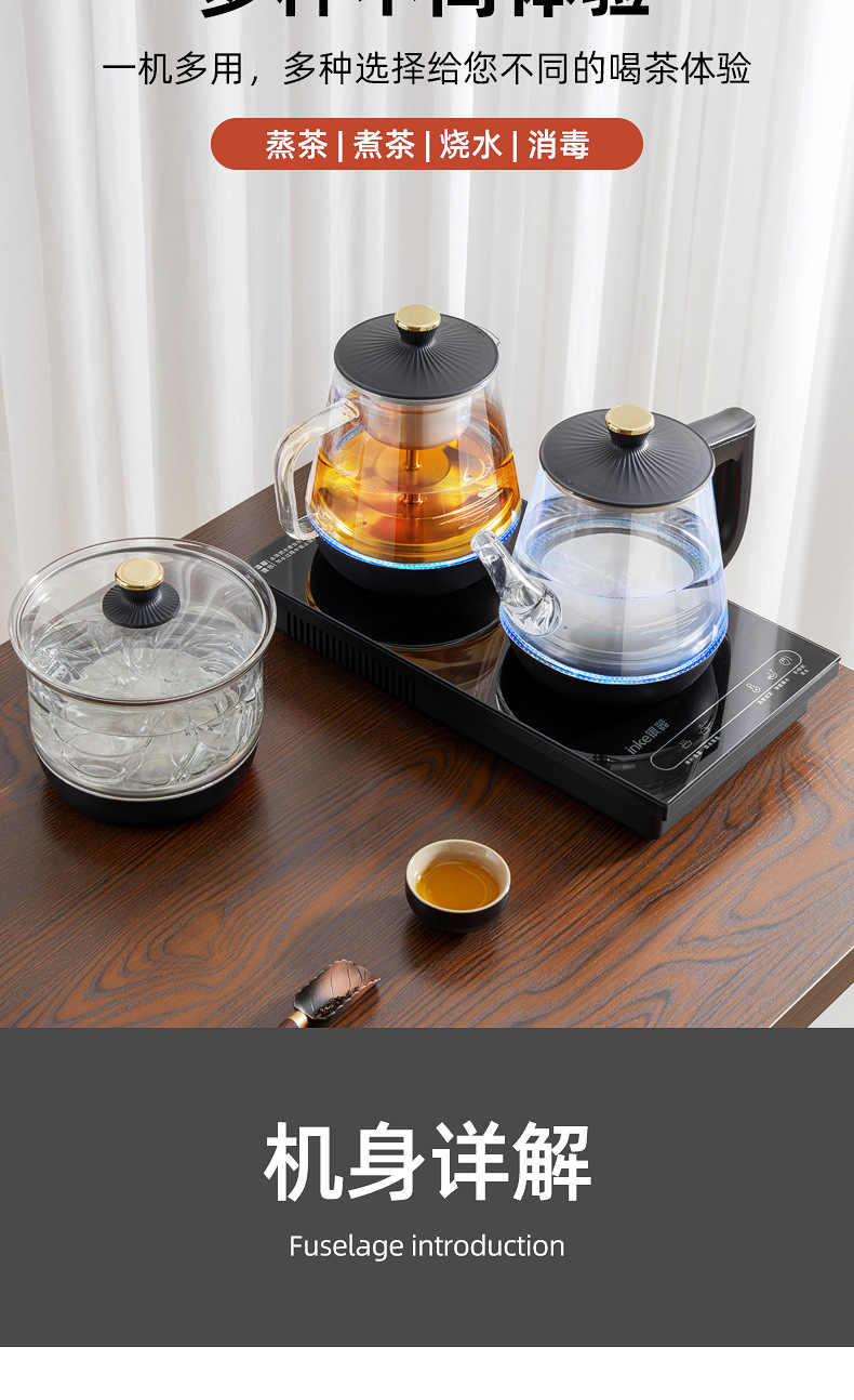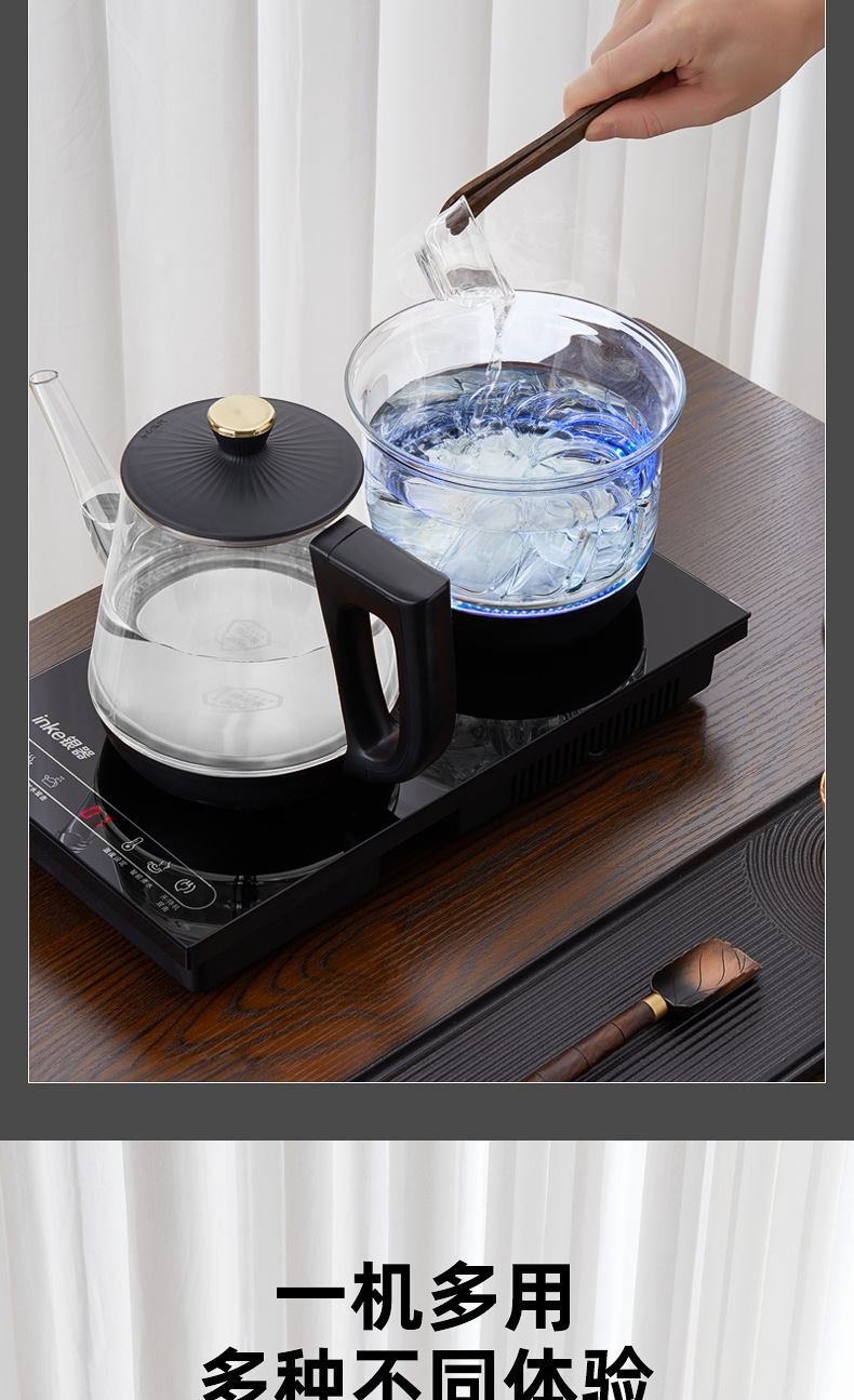 全自动底部上水电热烧水壶玻璃手柄抽水泡茶嵌入茶台一体套装