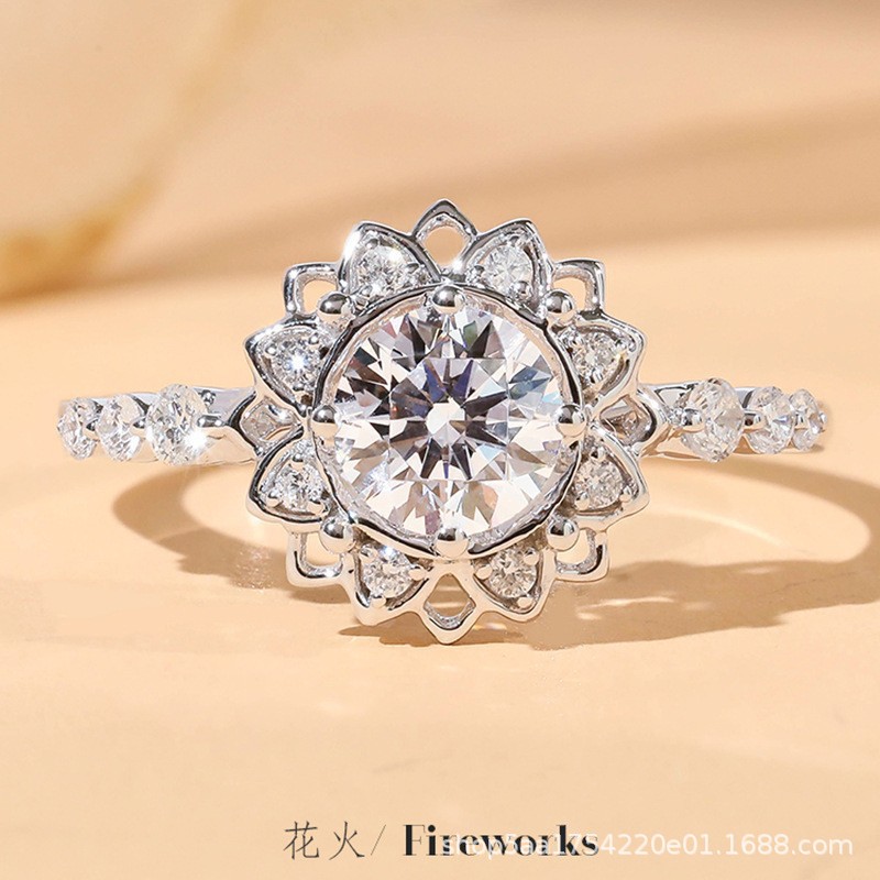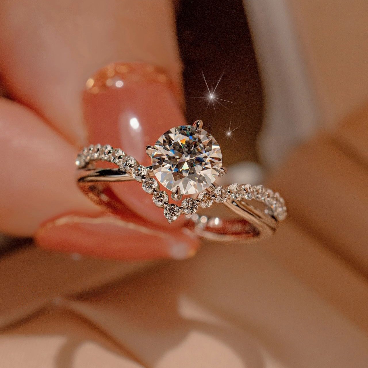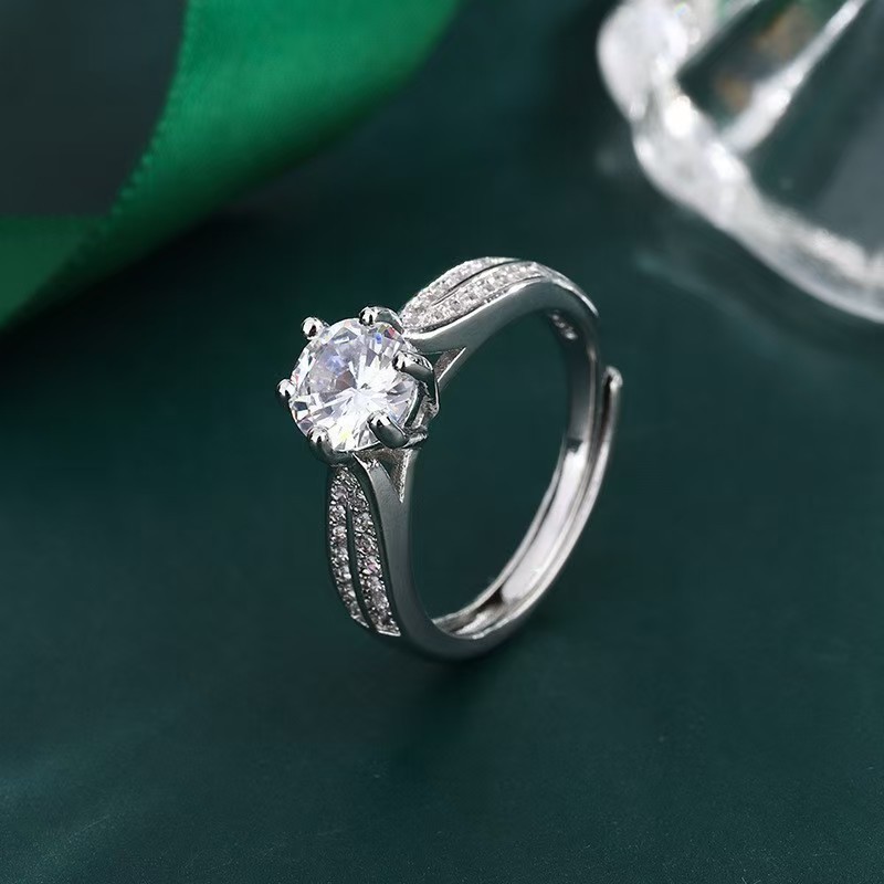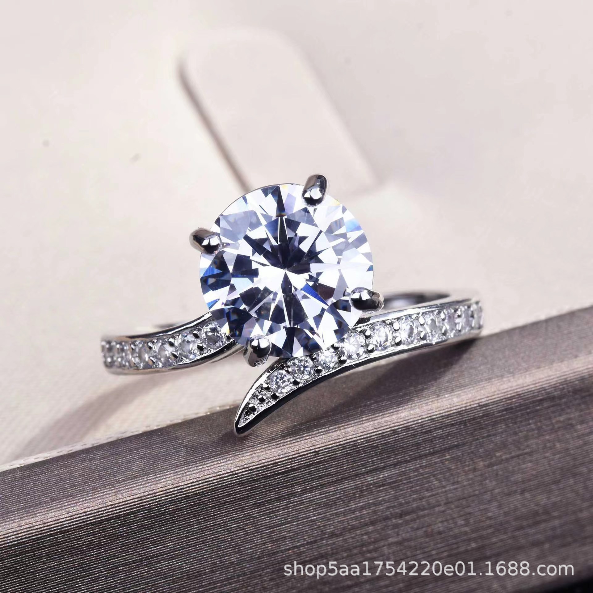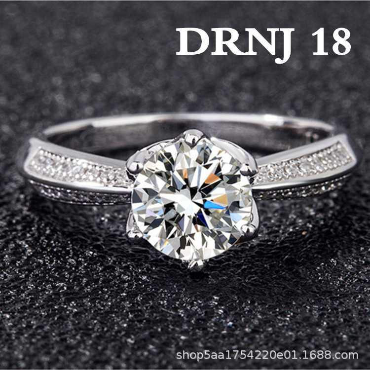 抖音快手直播货源高碳钻 八心八箭戒指女一克拉简约六爪婚戒钻戒