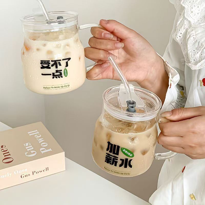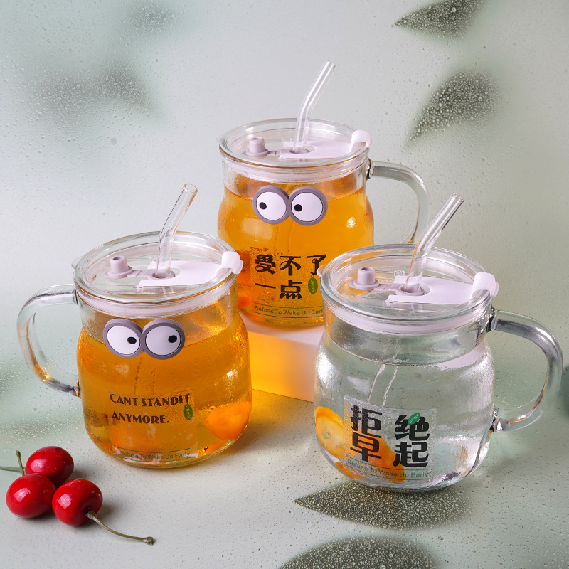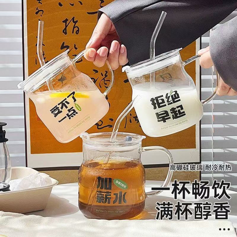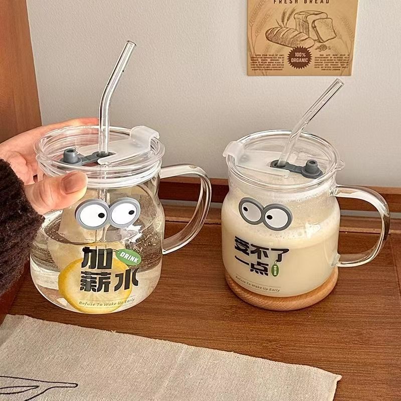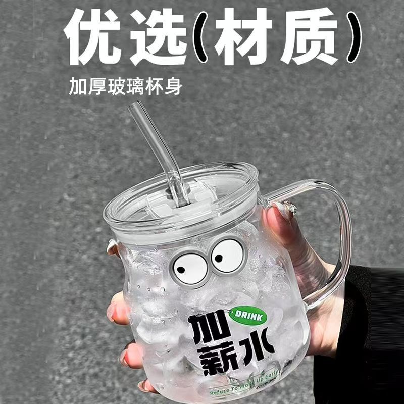 玻璃杯带盖女生高颜值情侣吸管马克杯家用网红贴纸夏天办公室水杯