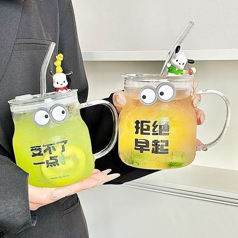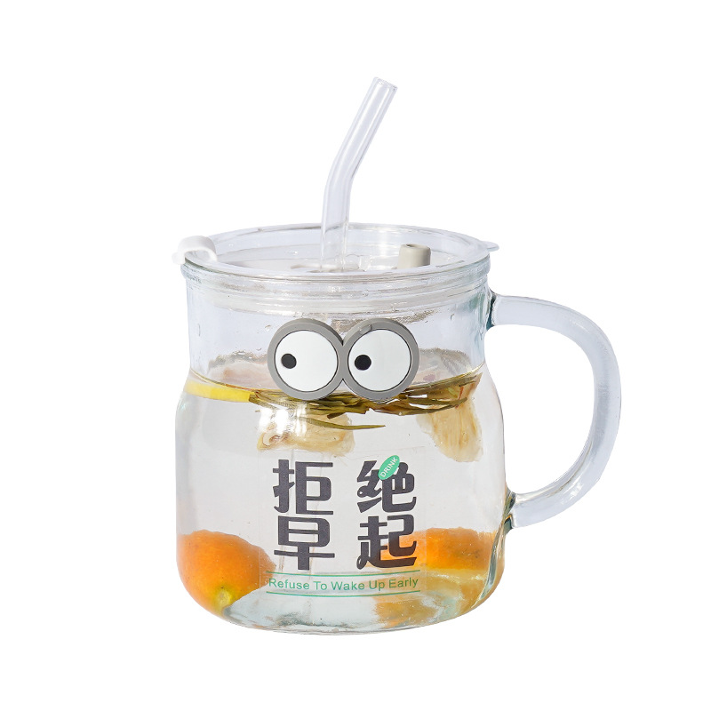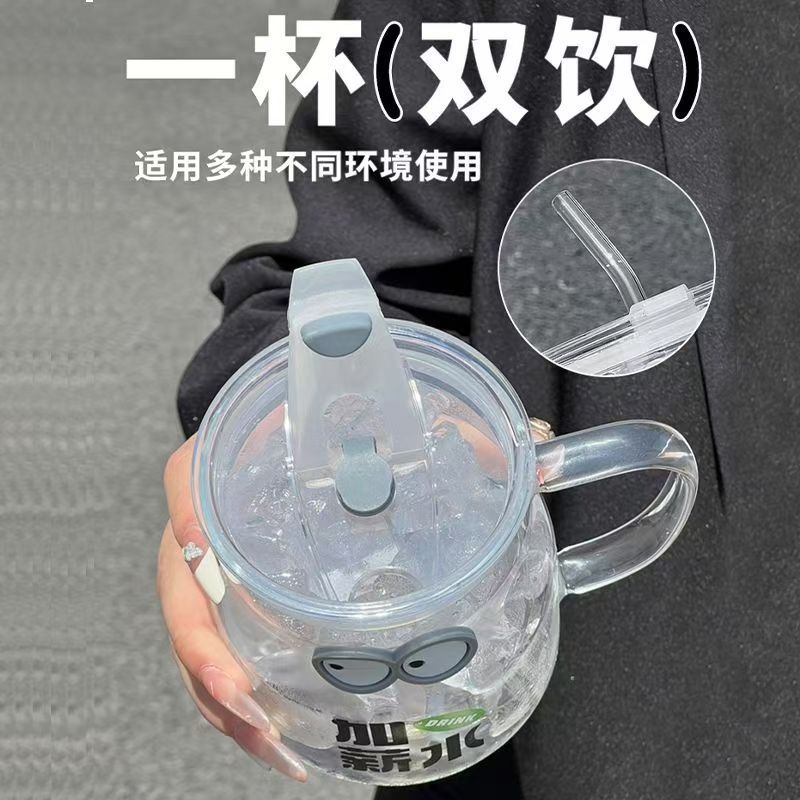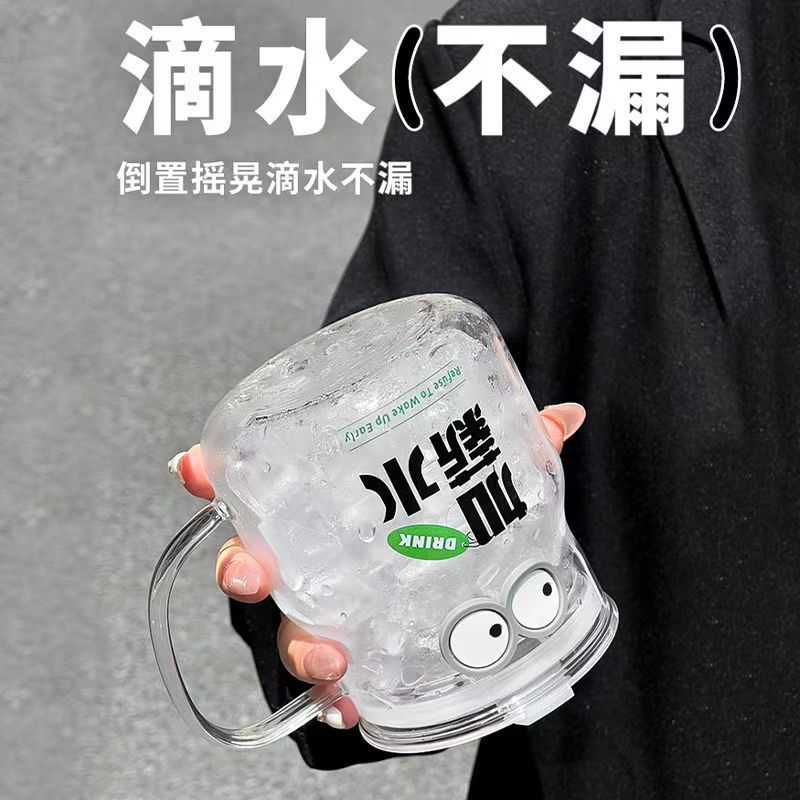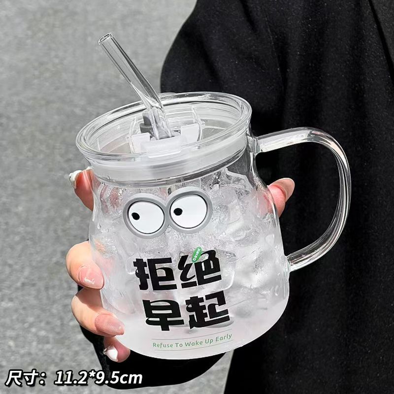 玻璃杯带盖女生高颜值情侣吸管马克杯家用网红贴纸夏天办公室水杯