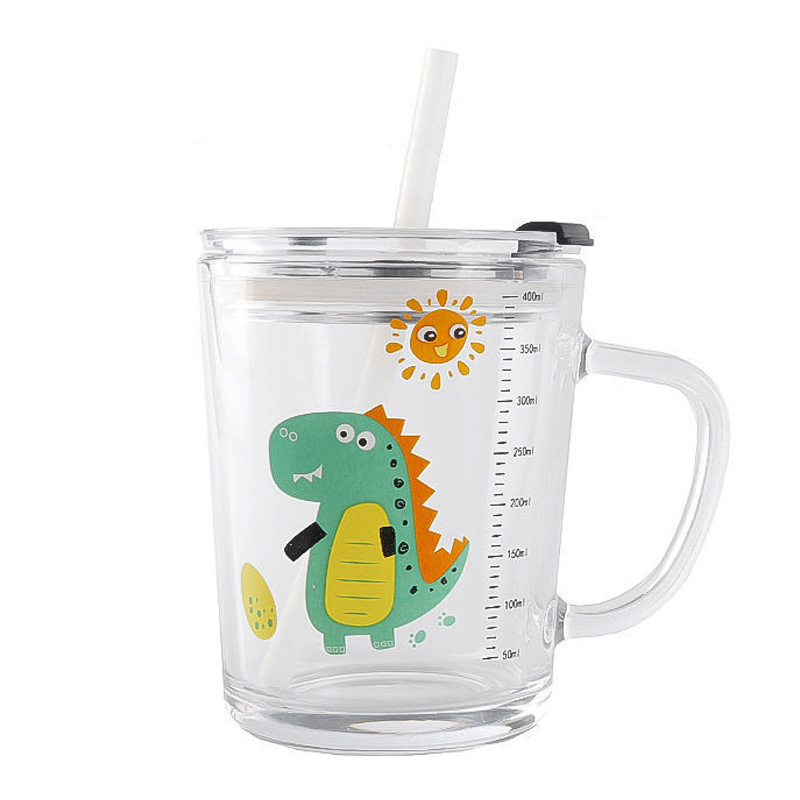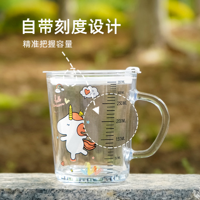 卡通玻璃杯可爱玻璃吸管杯耐热防漏水水杯儿童牛奶杯带刻度水杯