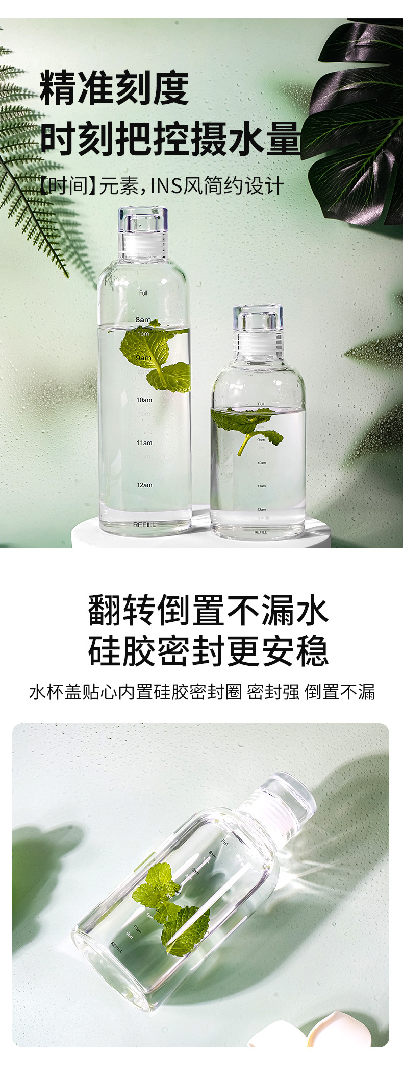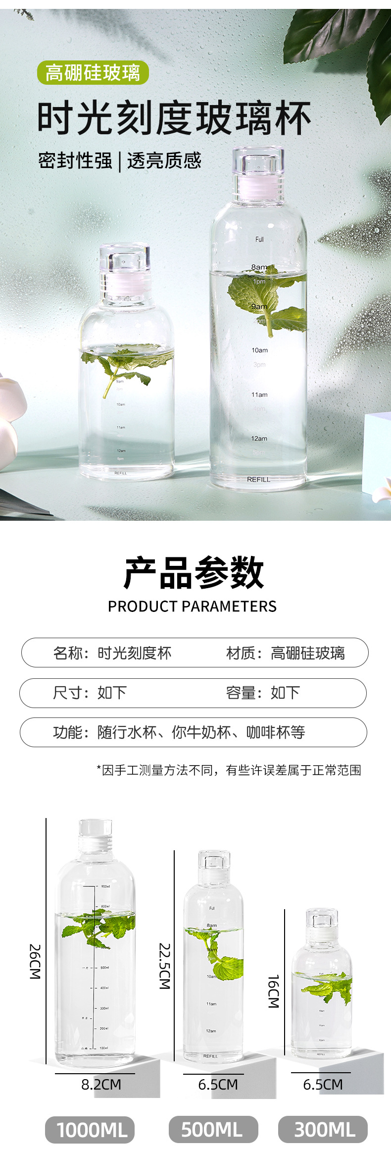 亚马逊耐高温高硼硅水杯小红书同款时间刻度杯防爆热饮果汁玻璃杯