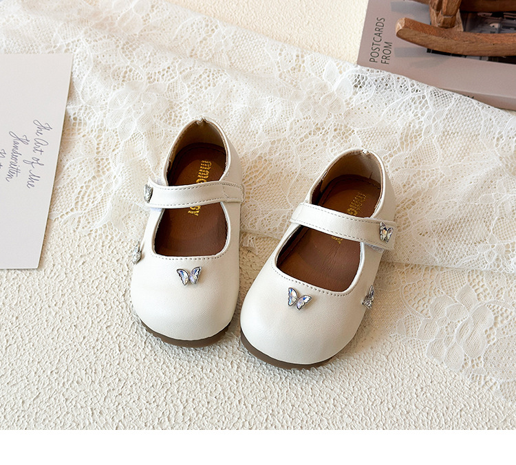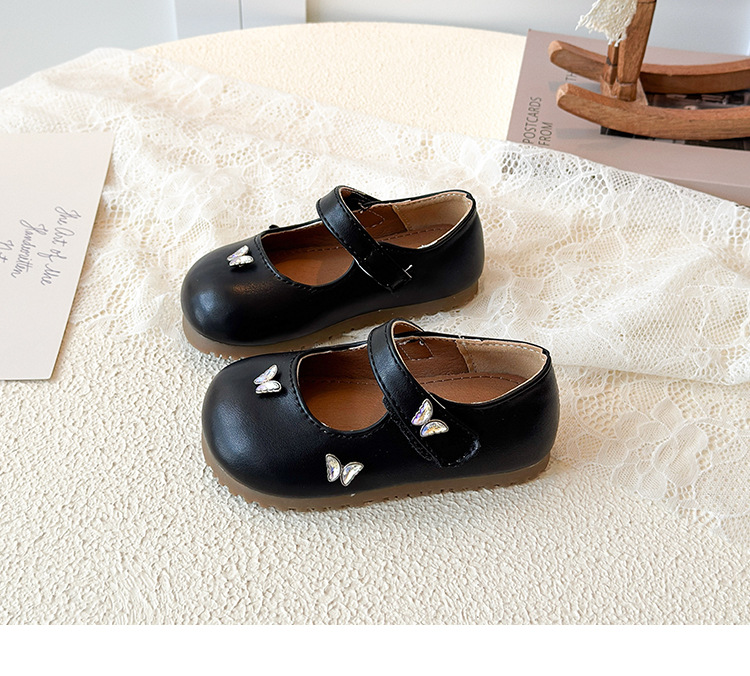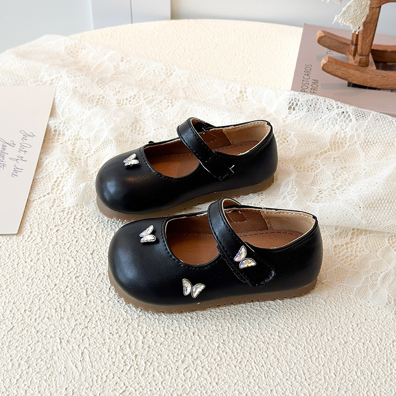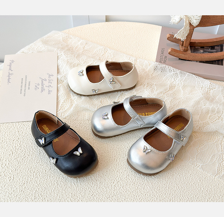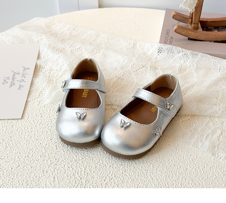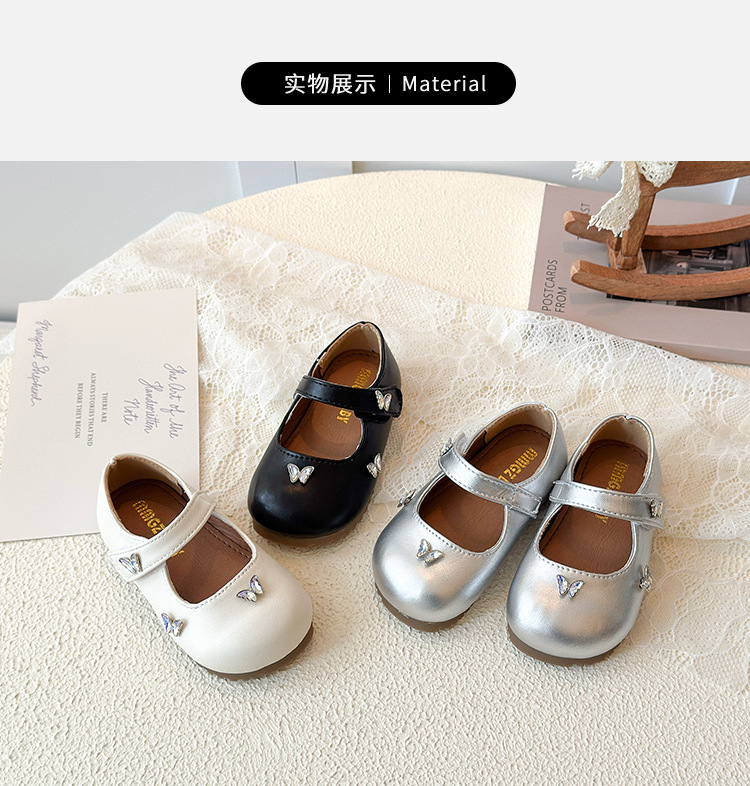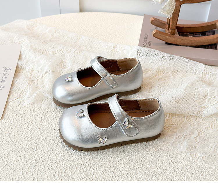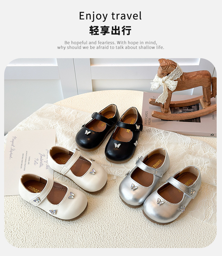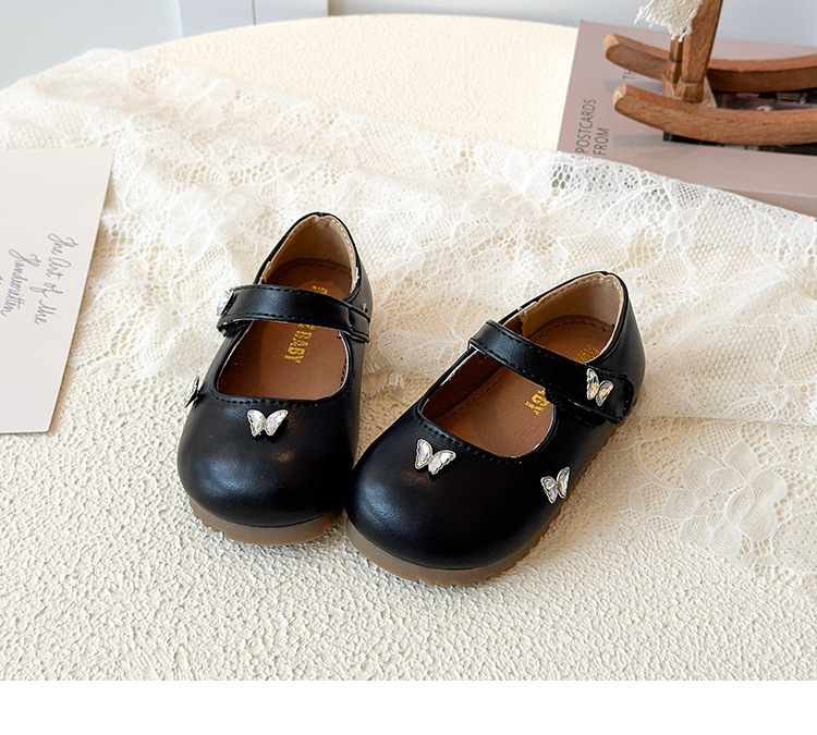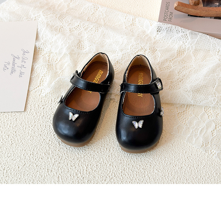 2025秋季新款韩版宝宝可爱蝴蝶小皮鞋女孩浅口单鞋女童圆头公主鞋