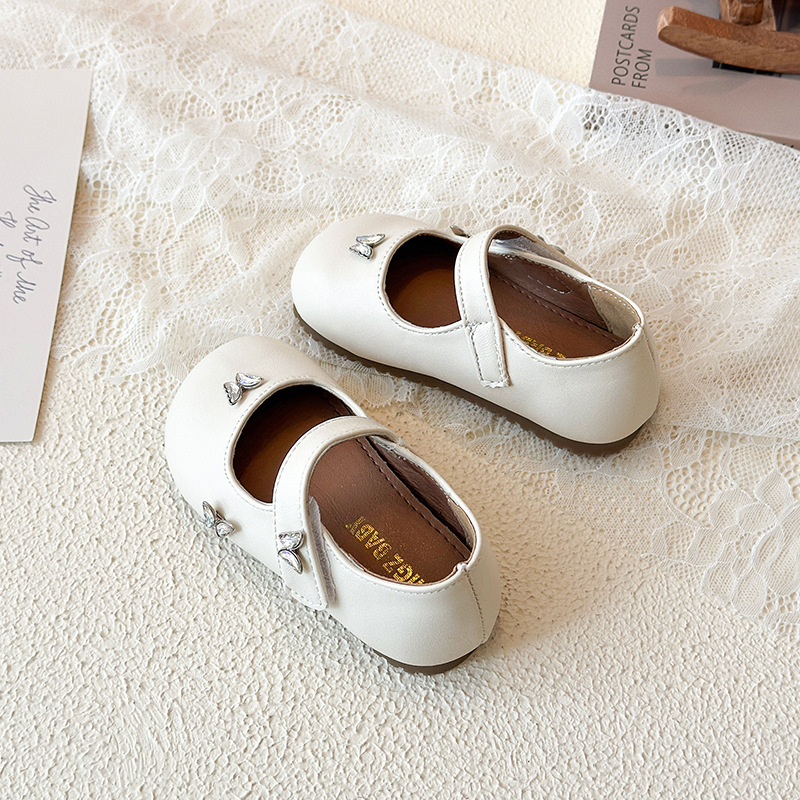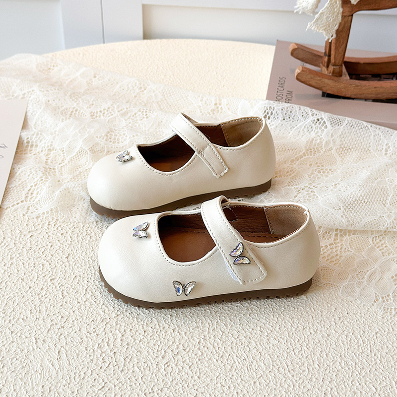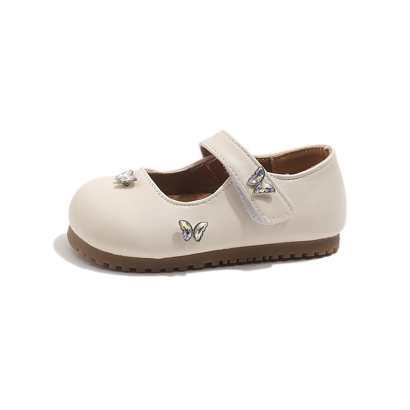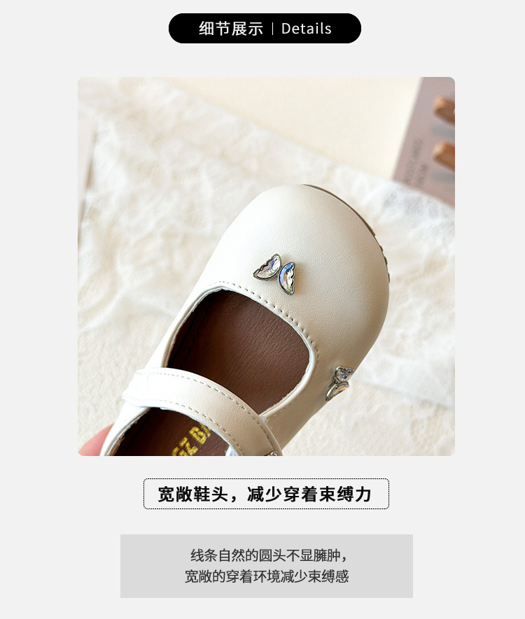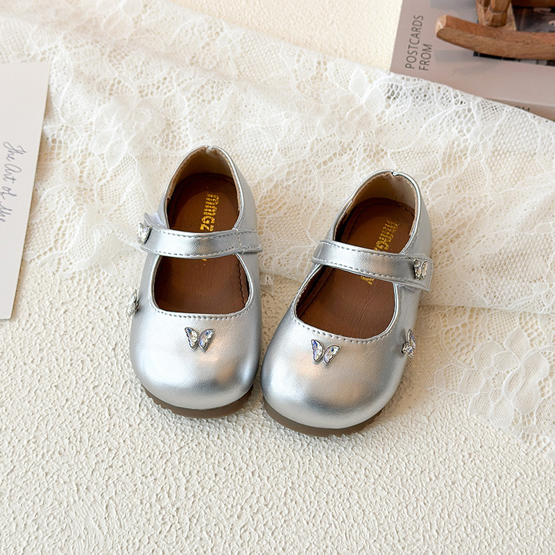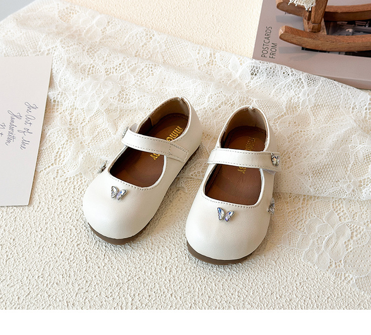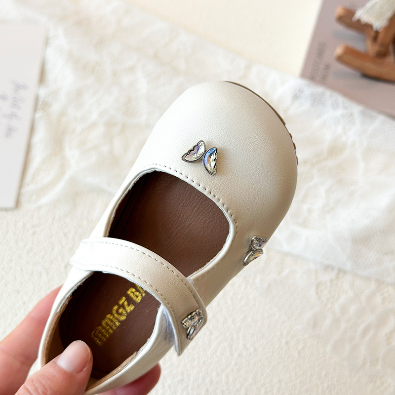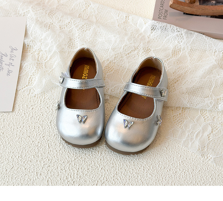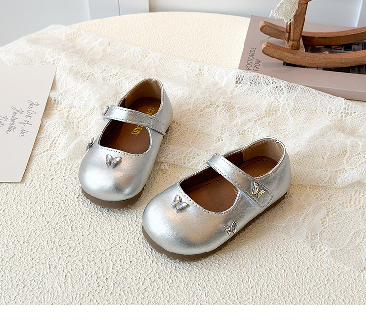 2025秋季新款韩版宝宝可爱蝴蝶小皮鞋女孩浅口单鞋女童圆头公主鞋