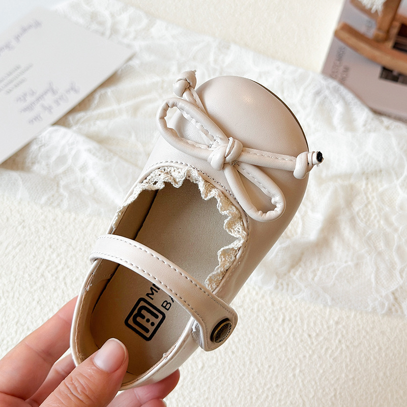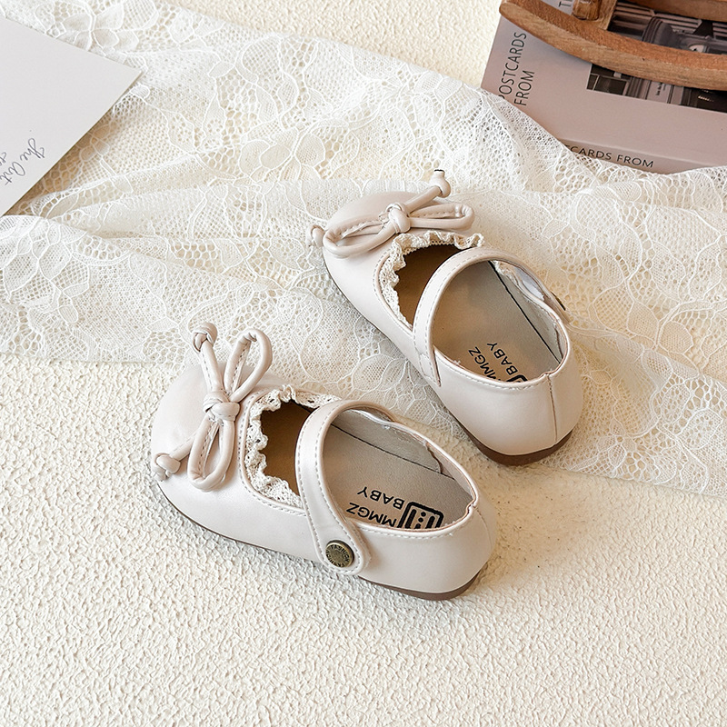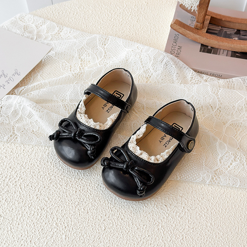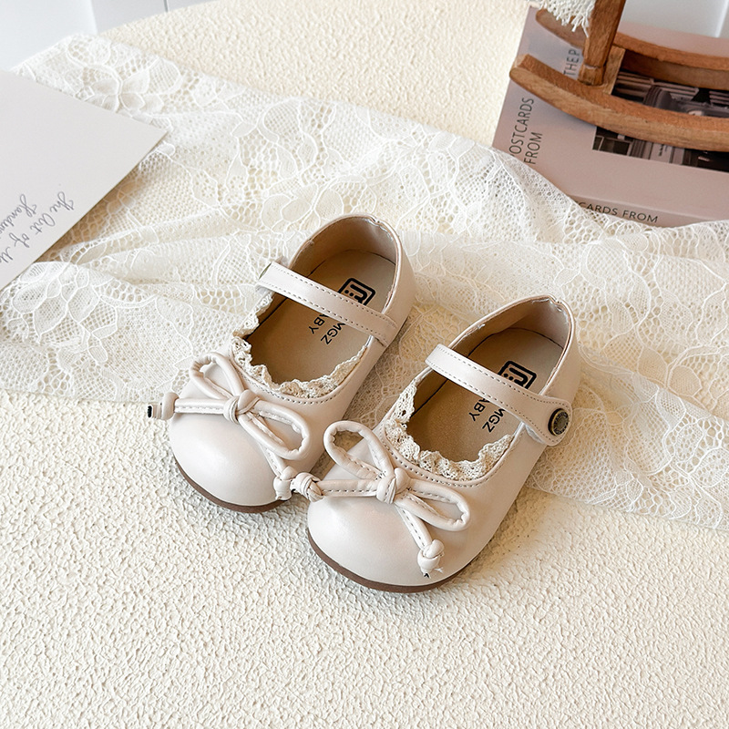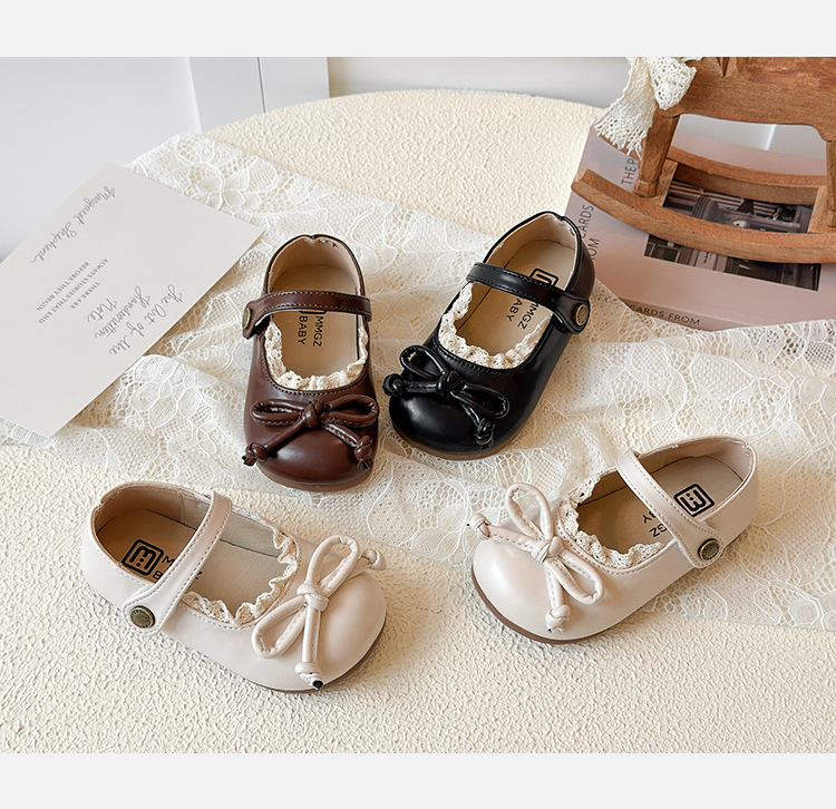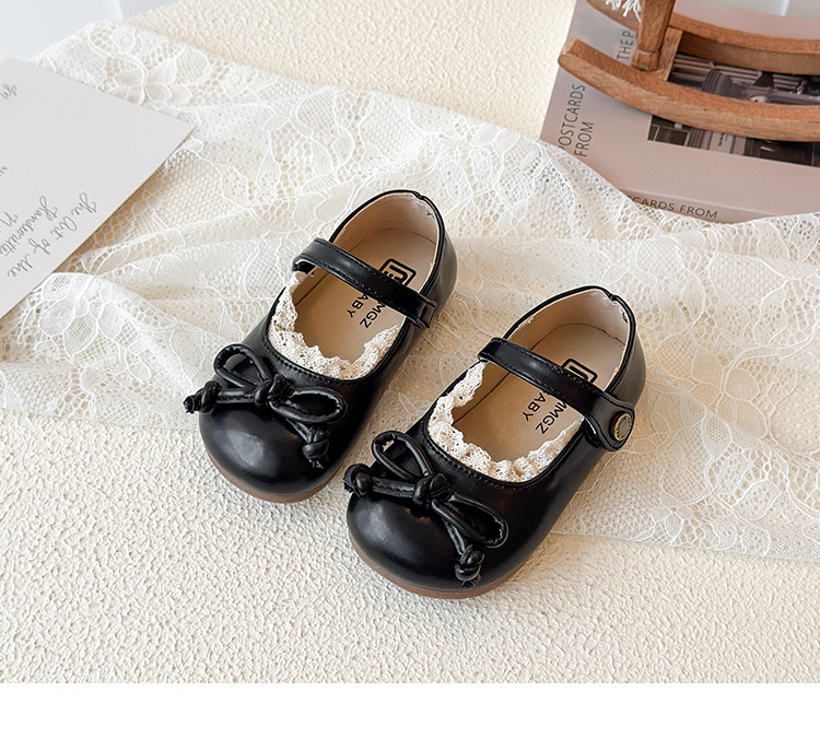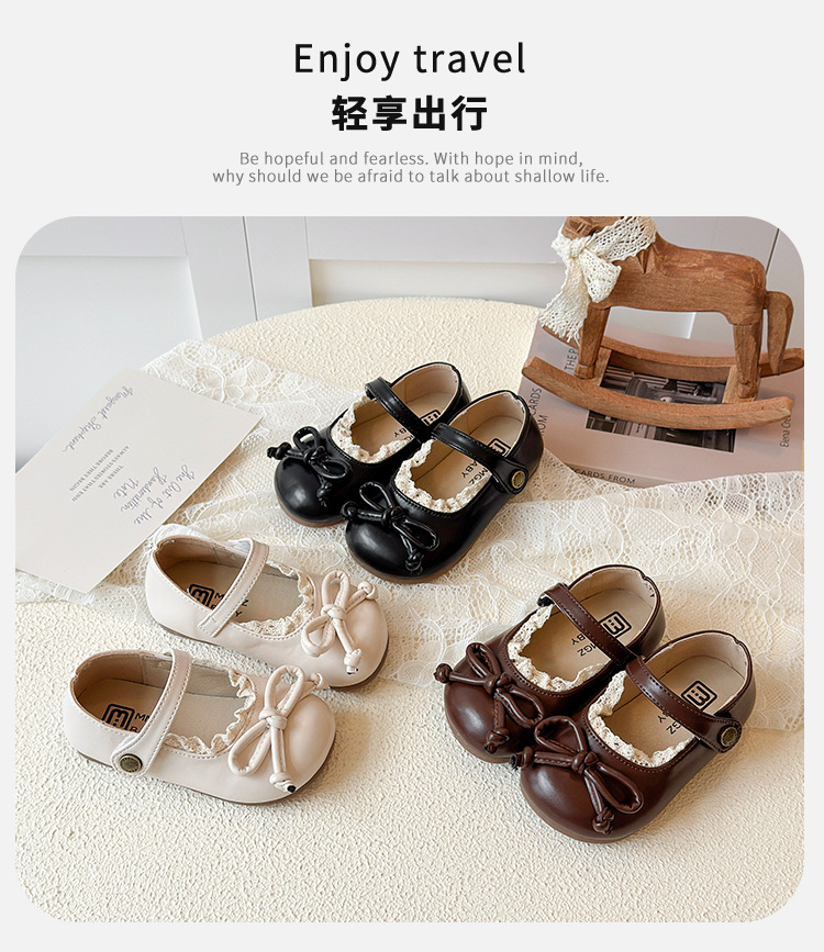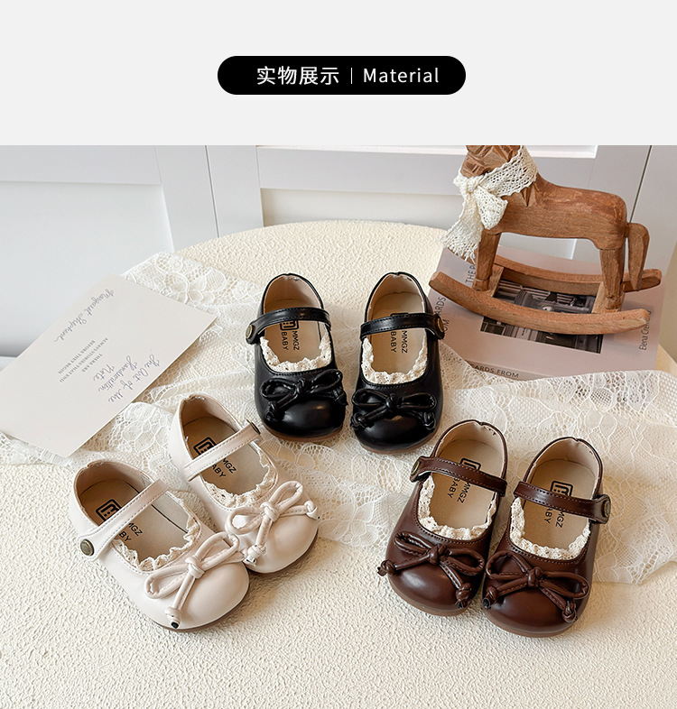 儿童公主鞋2025春秋季新款韩版宝宝时尚蝴蝶结小皮鞋女孩蕾丝边单