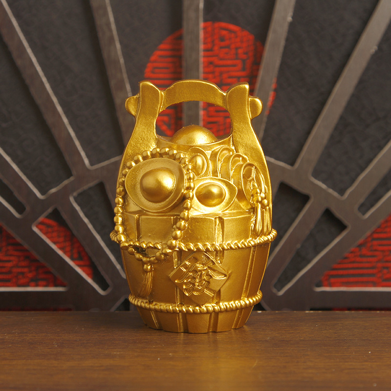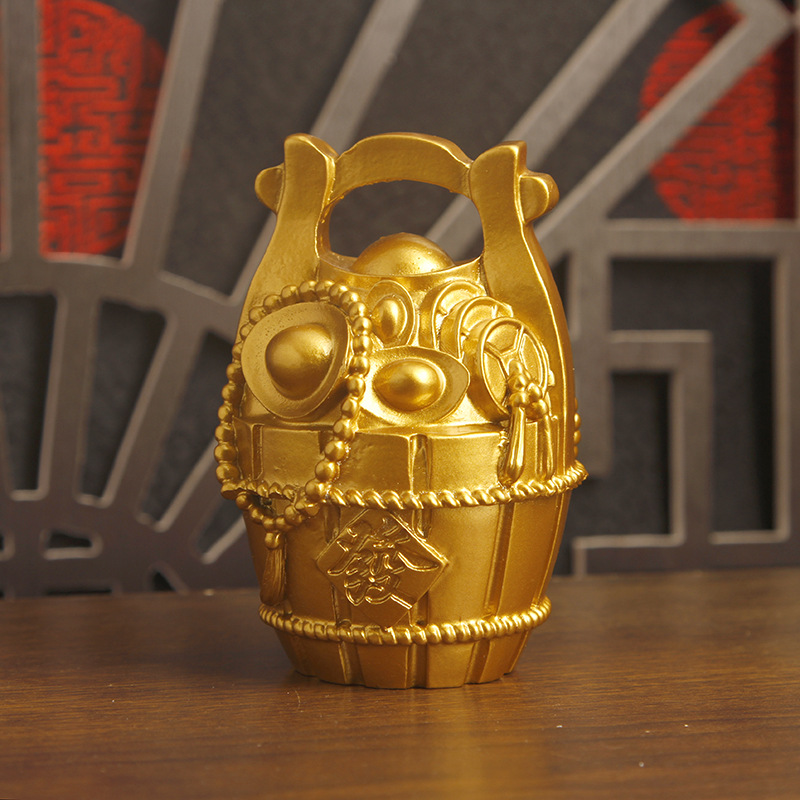 新款沙金色发财一桶金摆件元宝水桶家居桌面装饰乔迁礼品