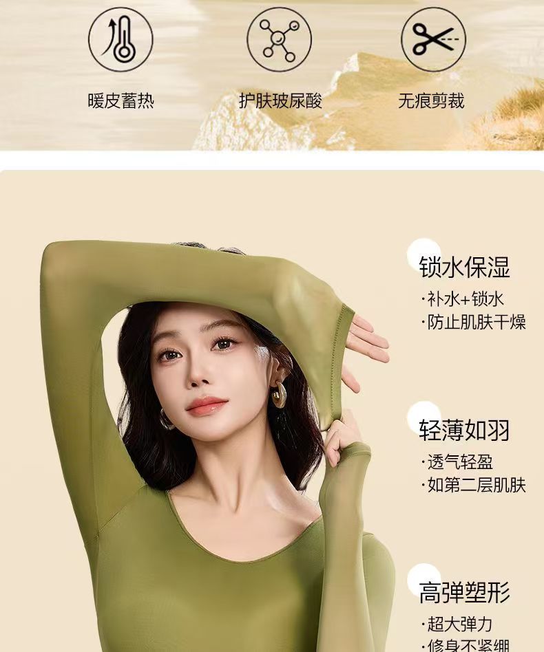 美肤衣玻尿酸保暖隐形发热打底衫秋衣高弹内衣套装女秋冬可外穿