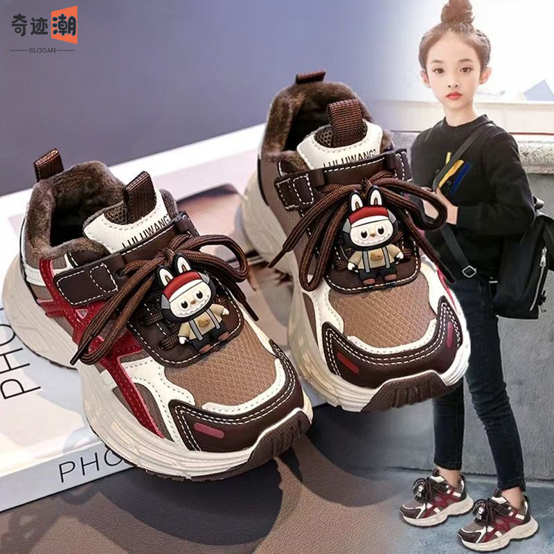 女童鞋冬季2025新款儿童公主加绒运动老爹鞋女孩拉布布跑步二棉鞋