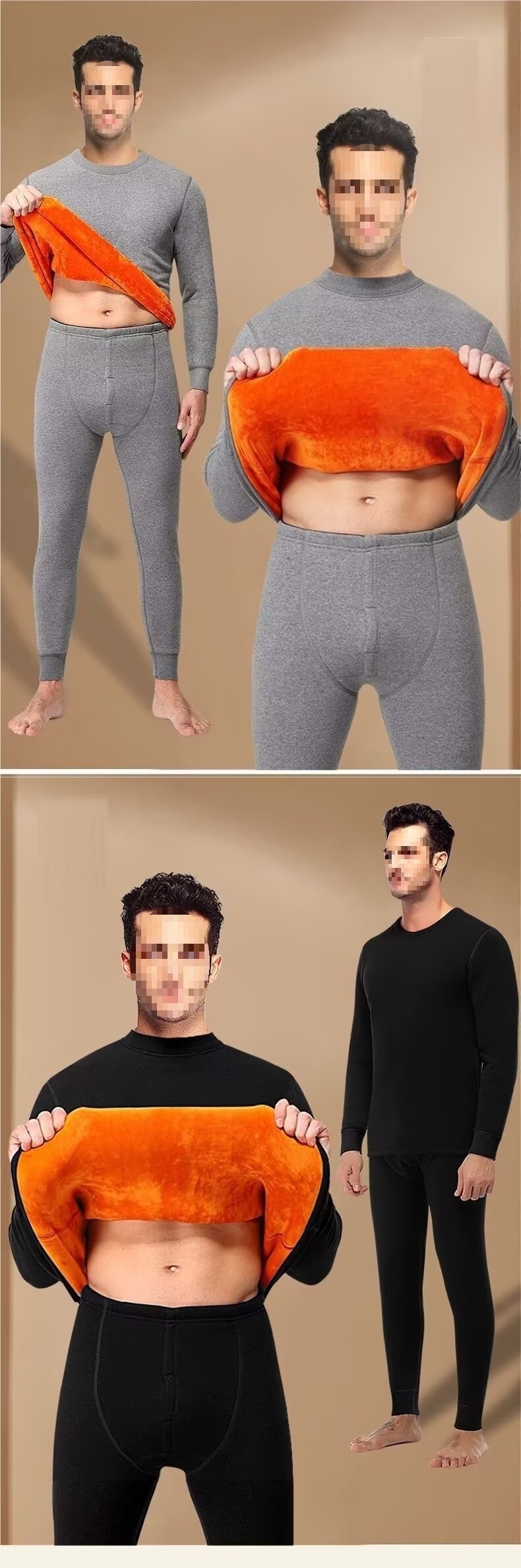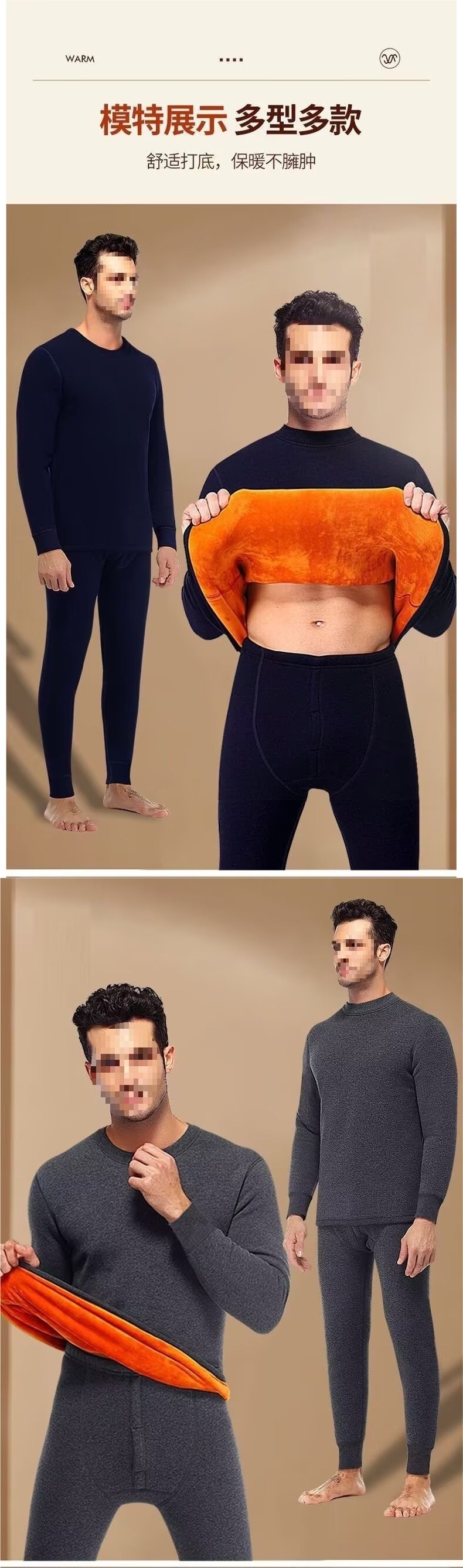 跨境纯色绒套装加绒加厚保暖内衣套装秋衣秋裤中老年御寒保暖