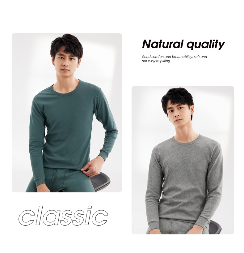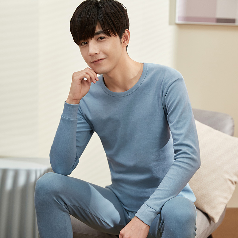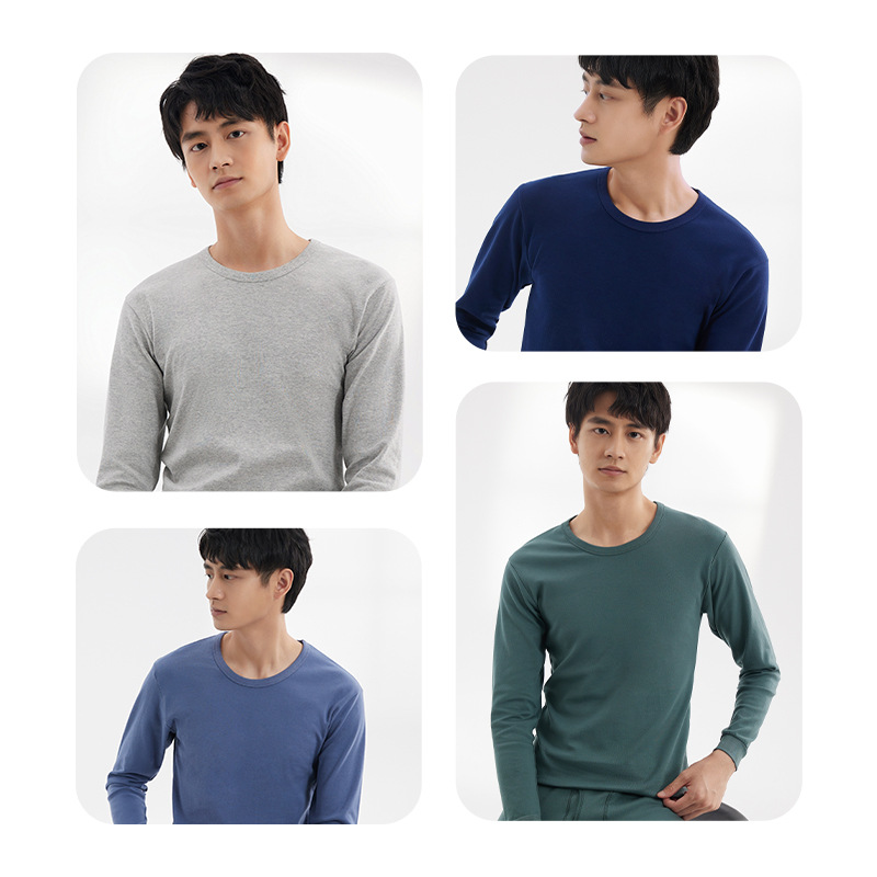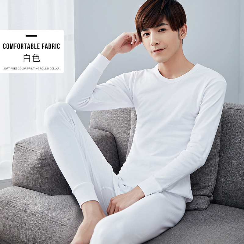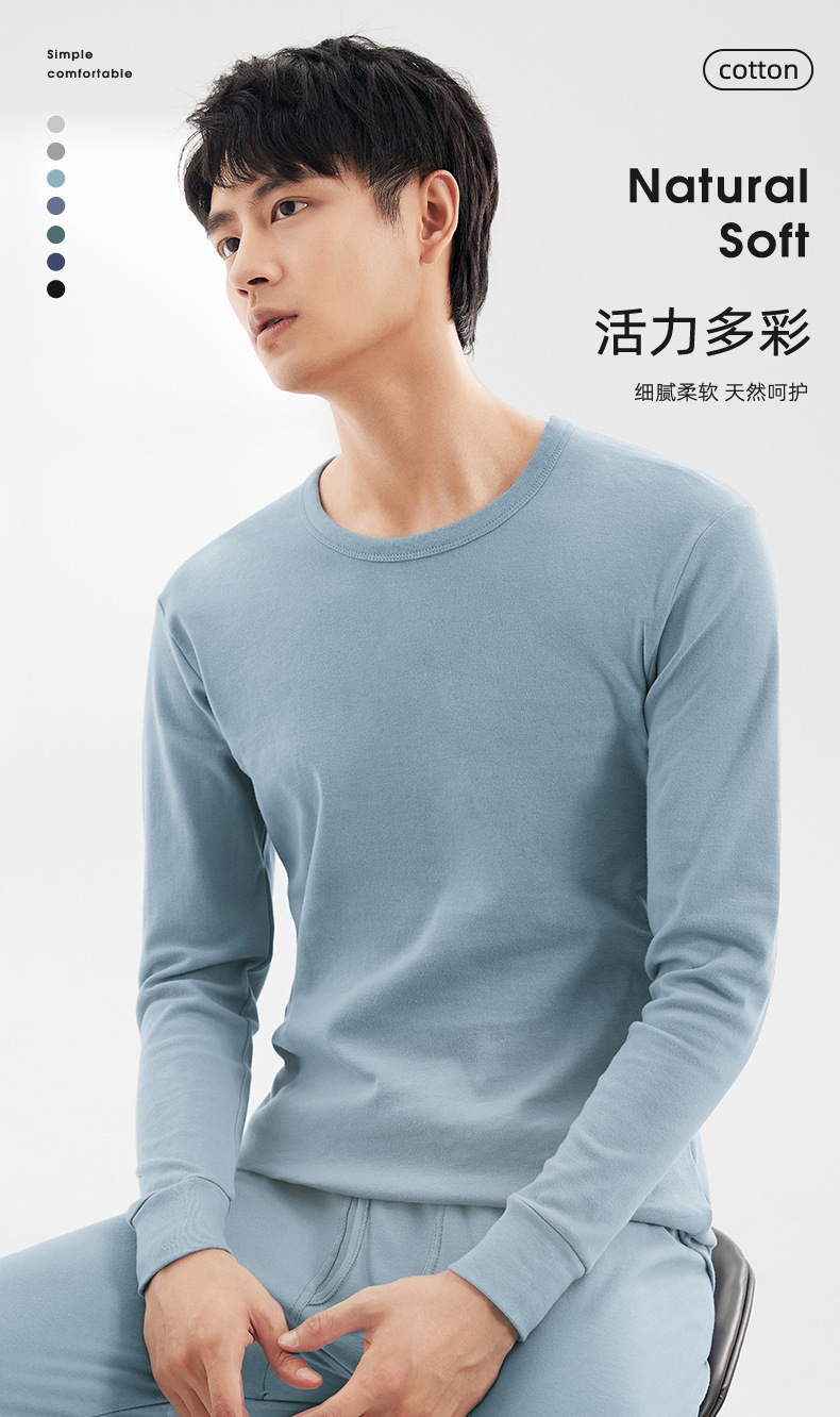 现货全棉薄款保暖内衣套装修身纯棉内穿打底棉毛衫男士秋衣秋裤