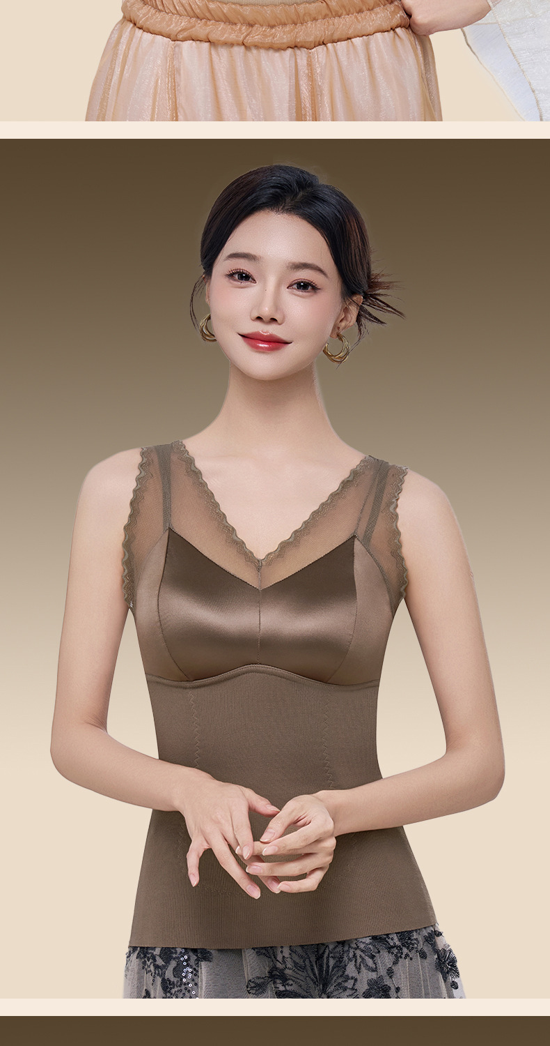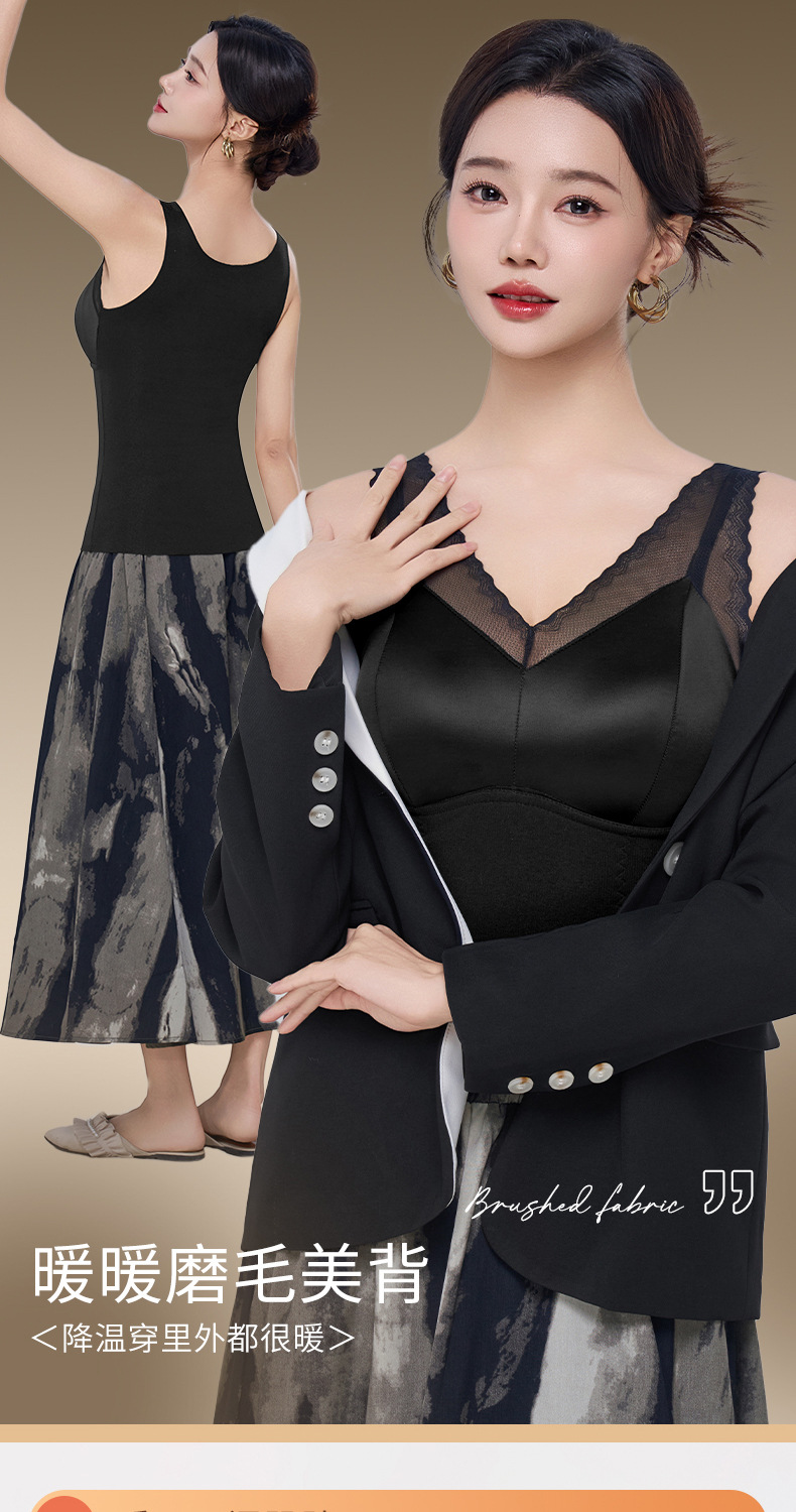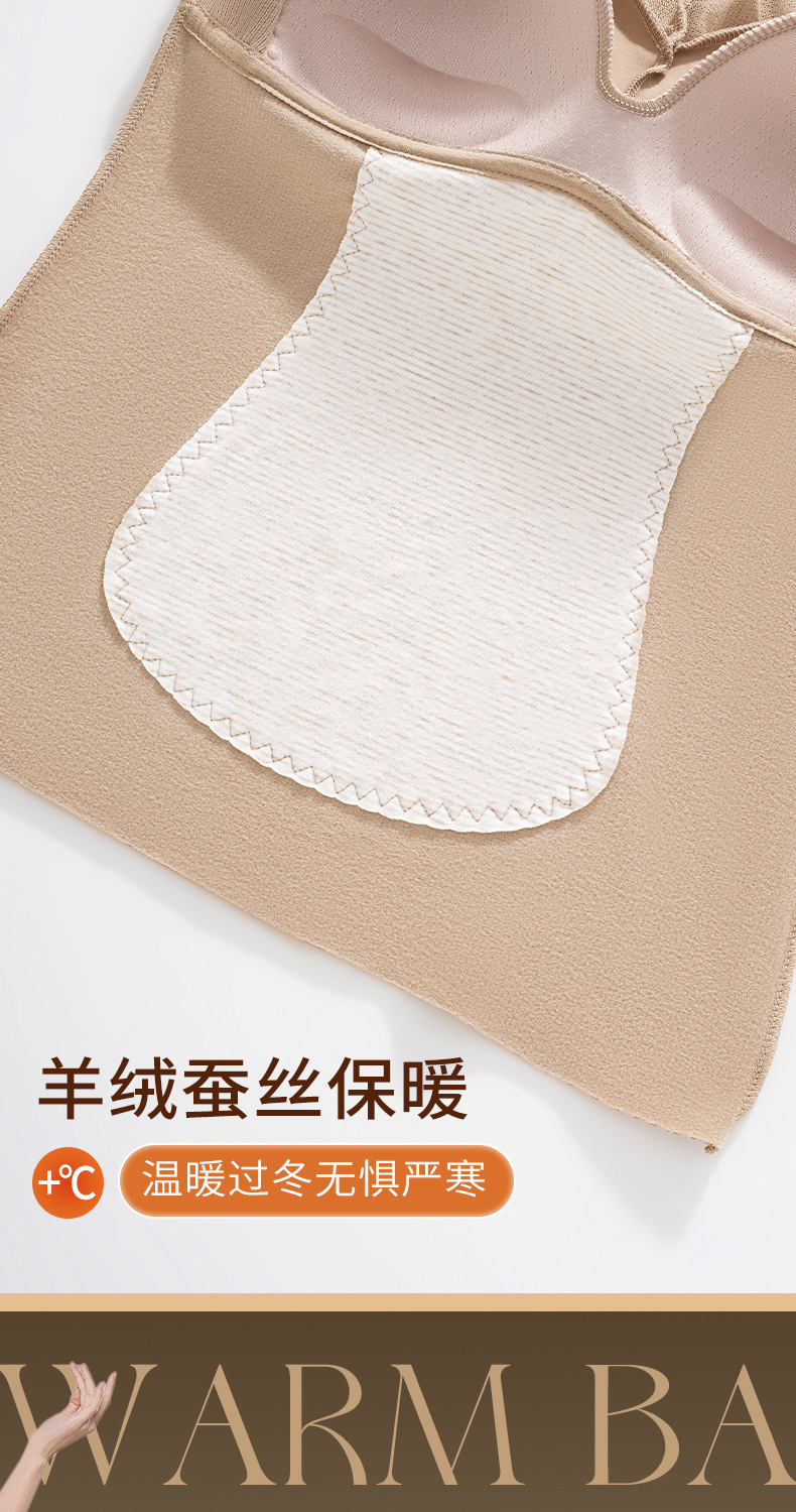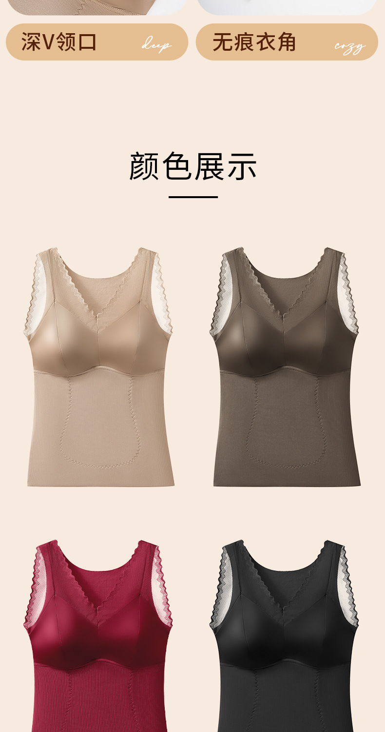 热卖秋冬V领保暖背心女带胸垫文胸一体式羽绒蚕丝保暖背心内衣女