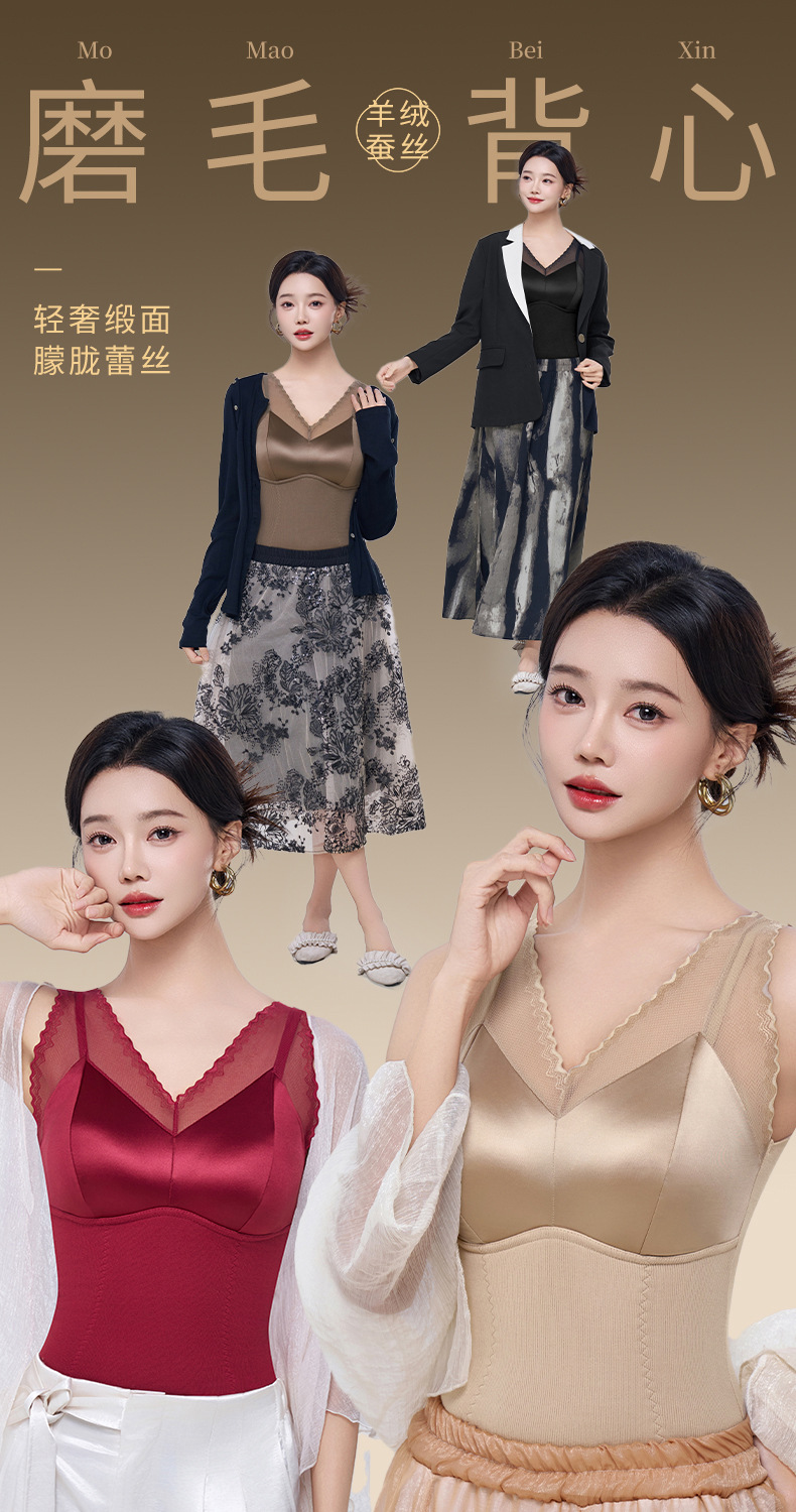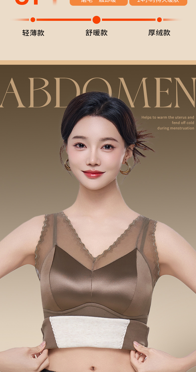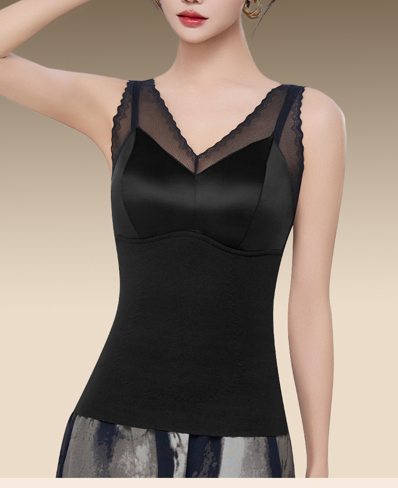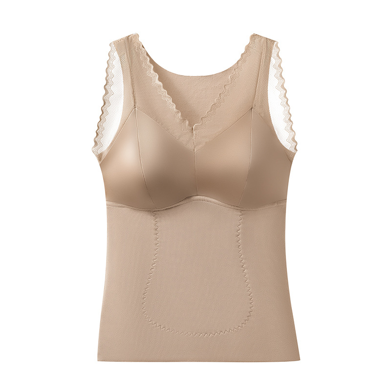 热卖秋冬V领保暖背心女带胸垫文胸一体式羽绒蚕丝保暖背心内衣女
