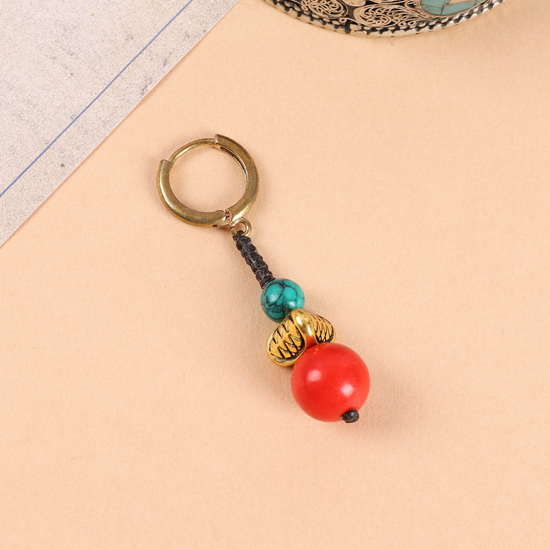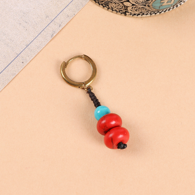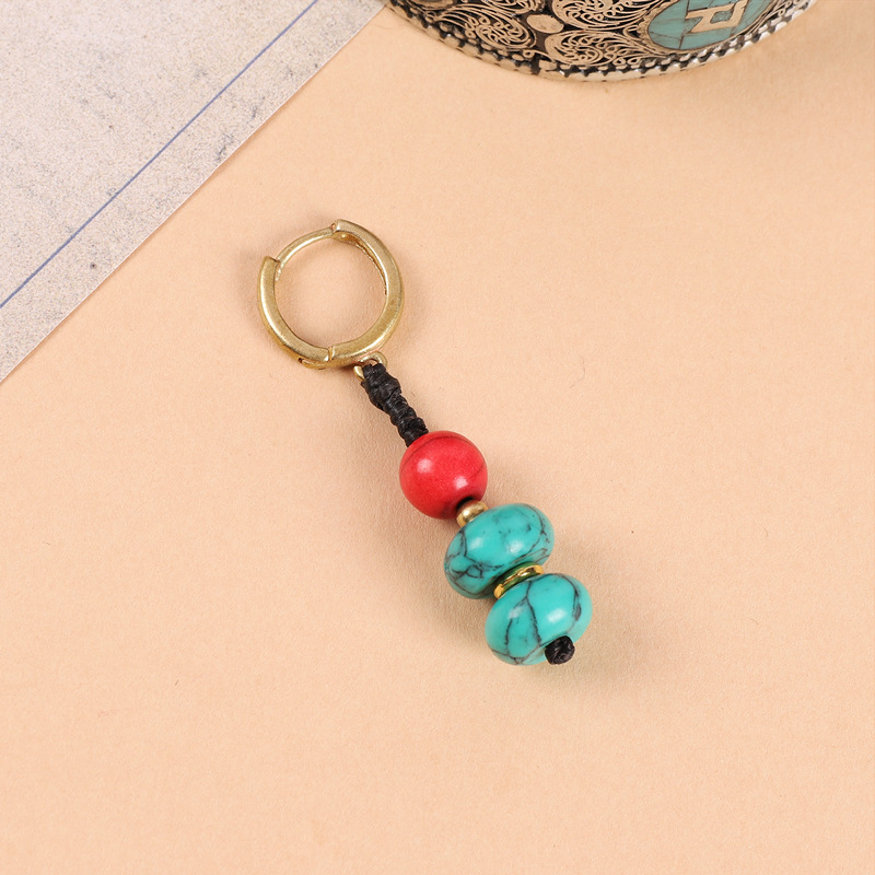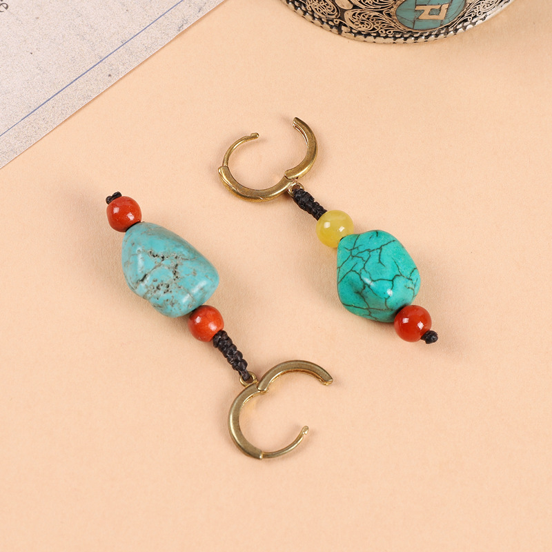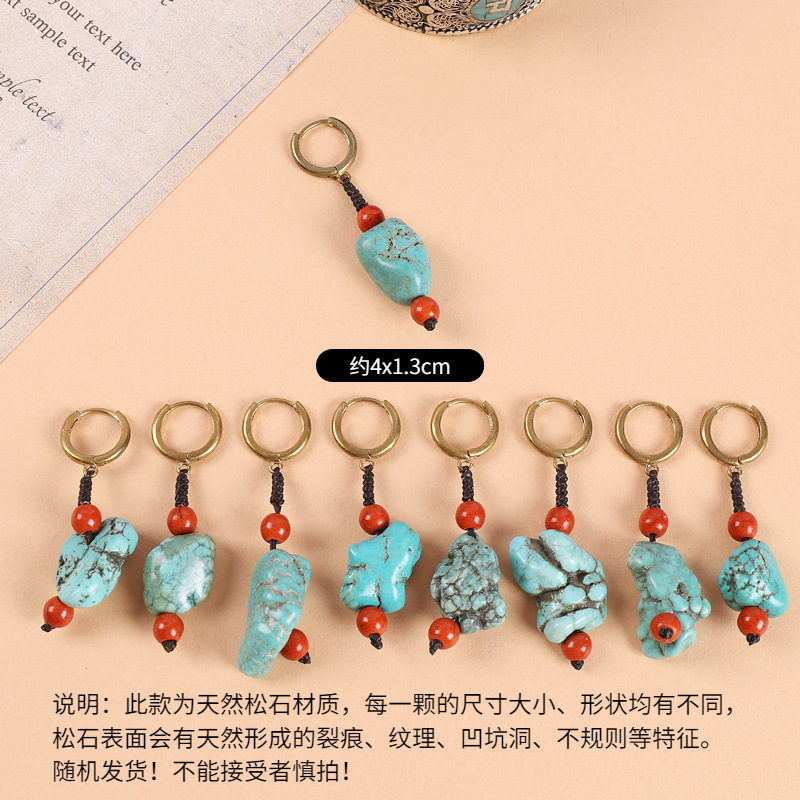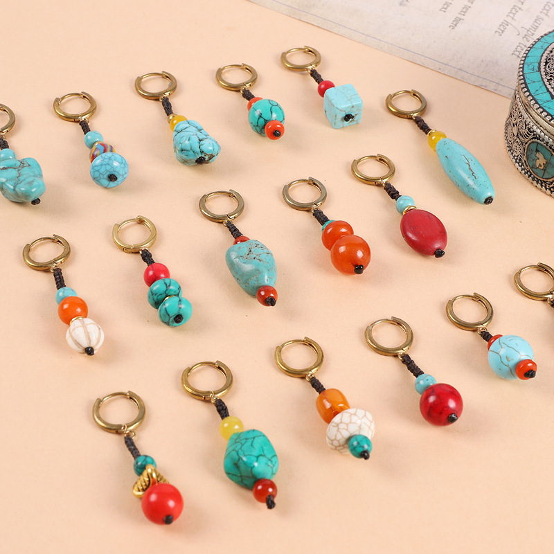 原创设计编织绿松石耳坠藏式少数民族风耳扣复古耳环丁真藏族耳饰
