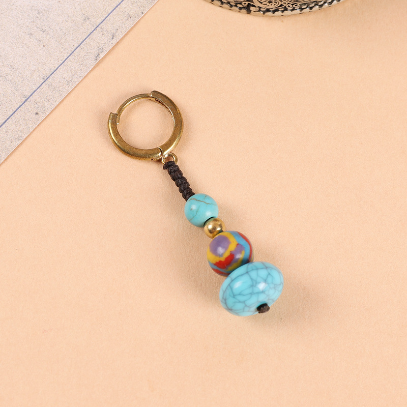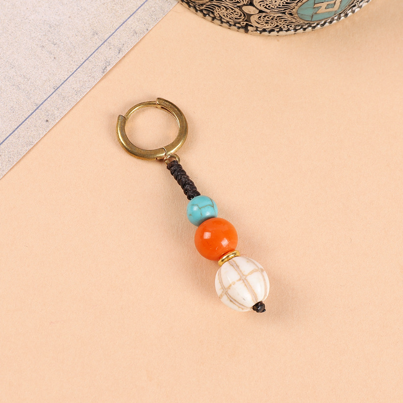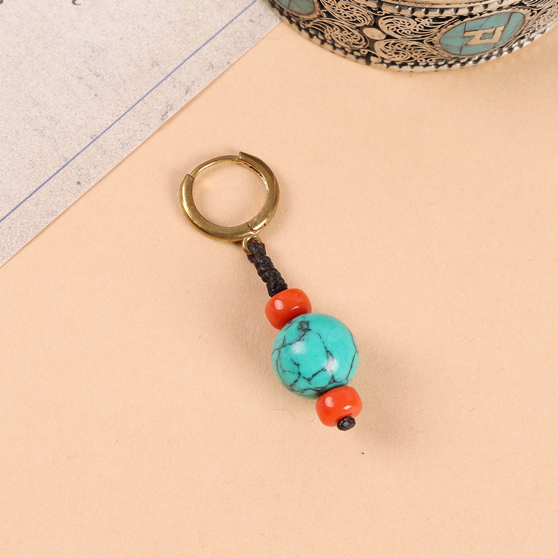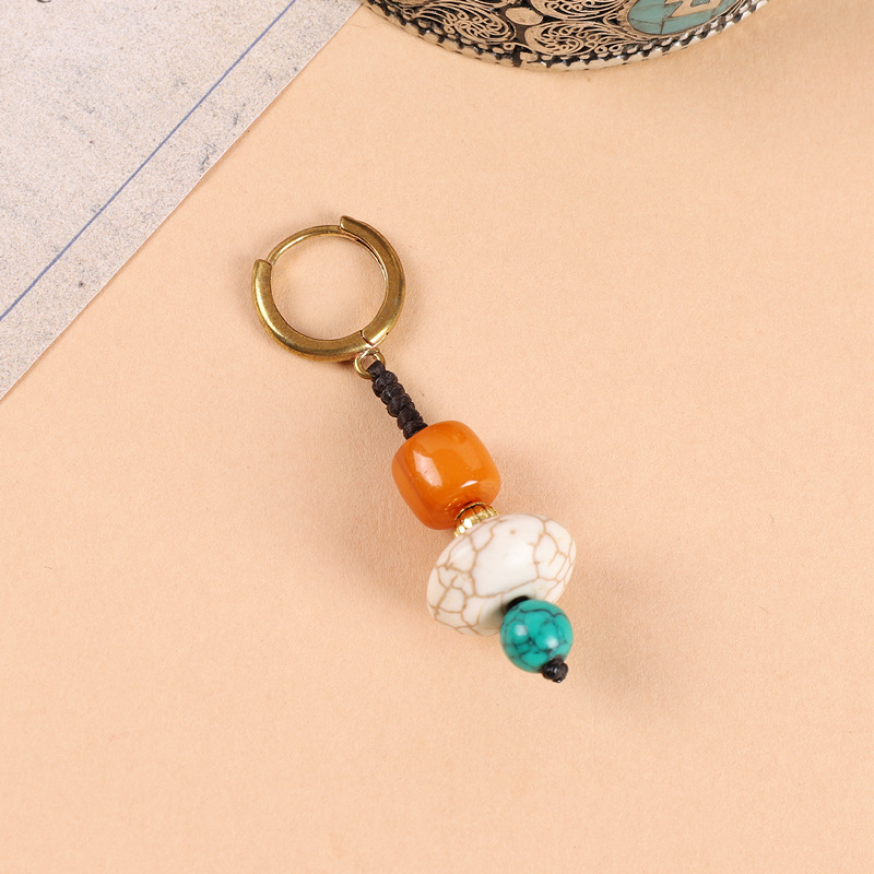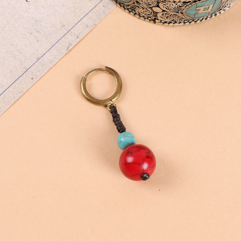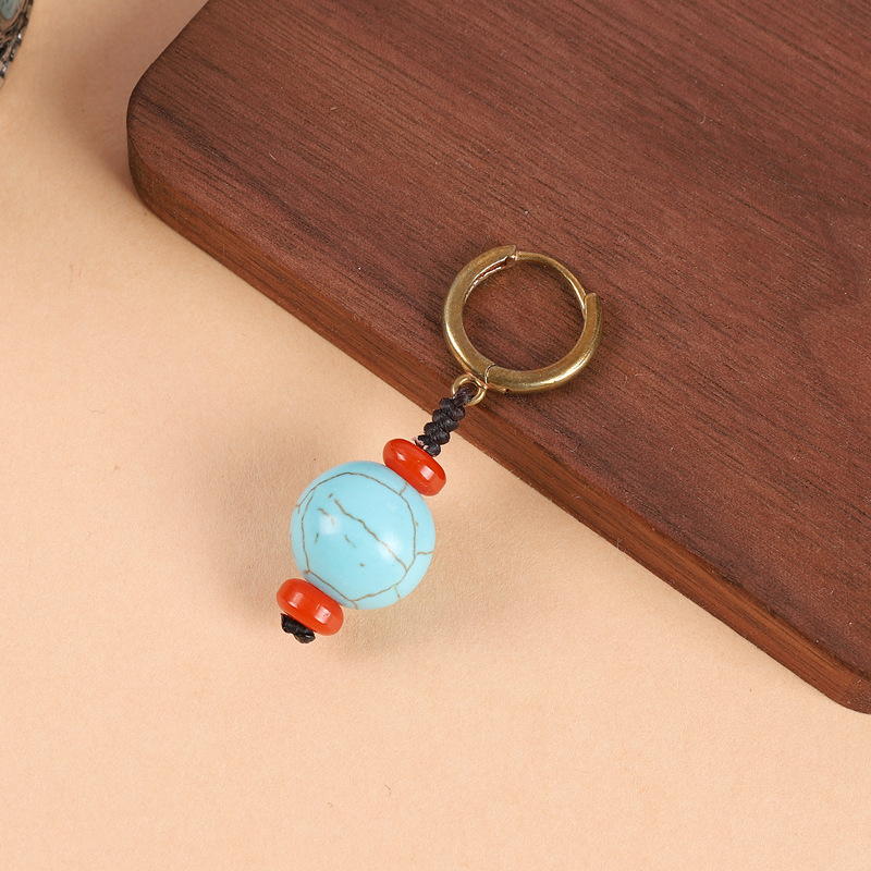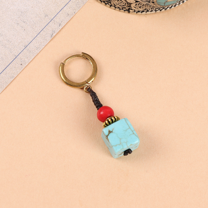 原创设计编织绿松石耳坠藏式少数民族风耳扣复古耳环丁真藏族耳饰