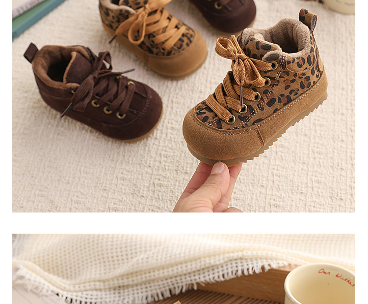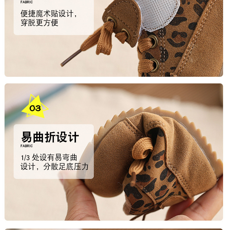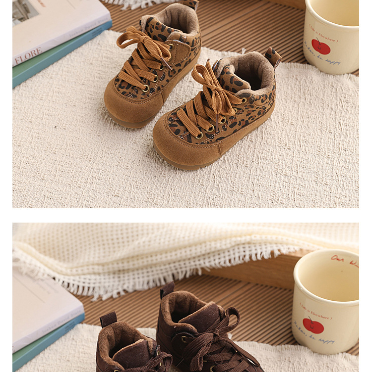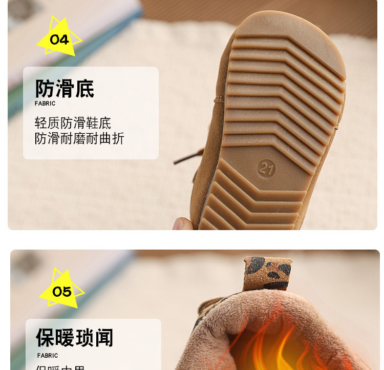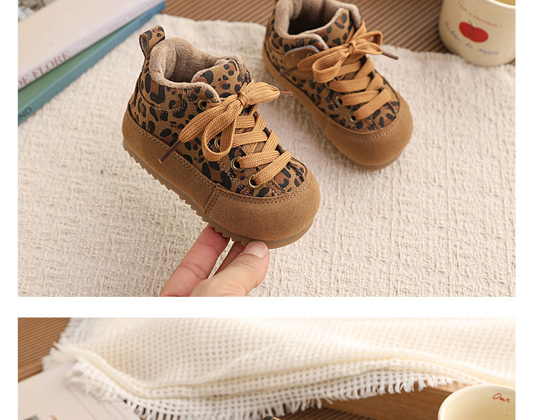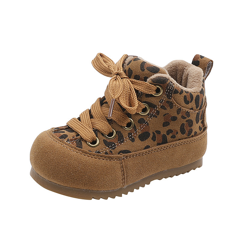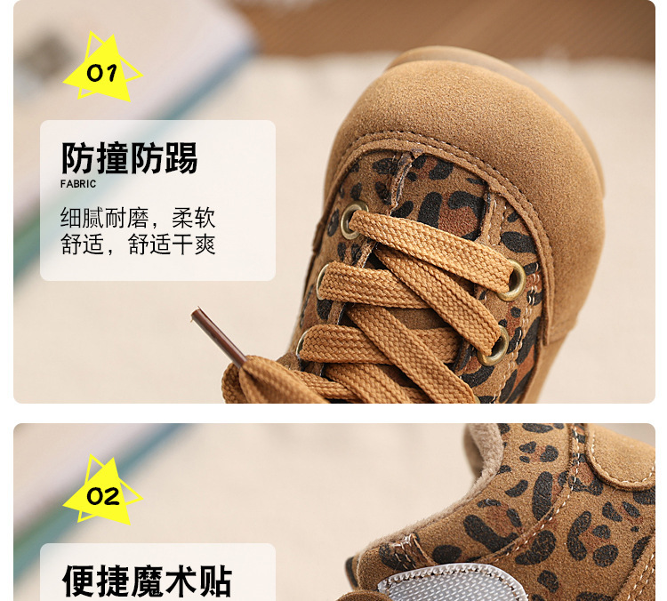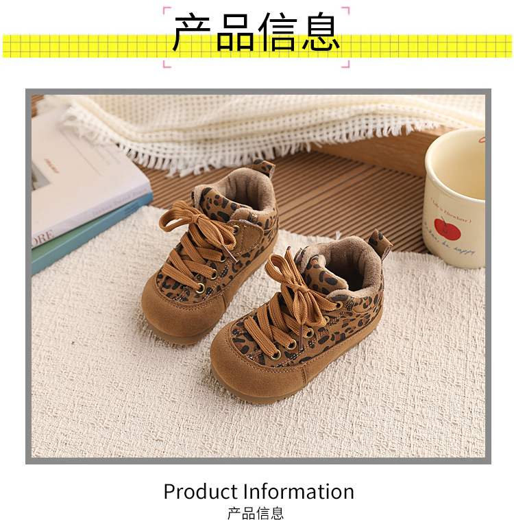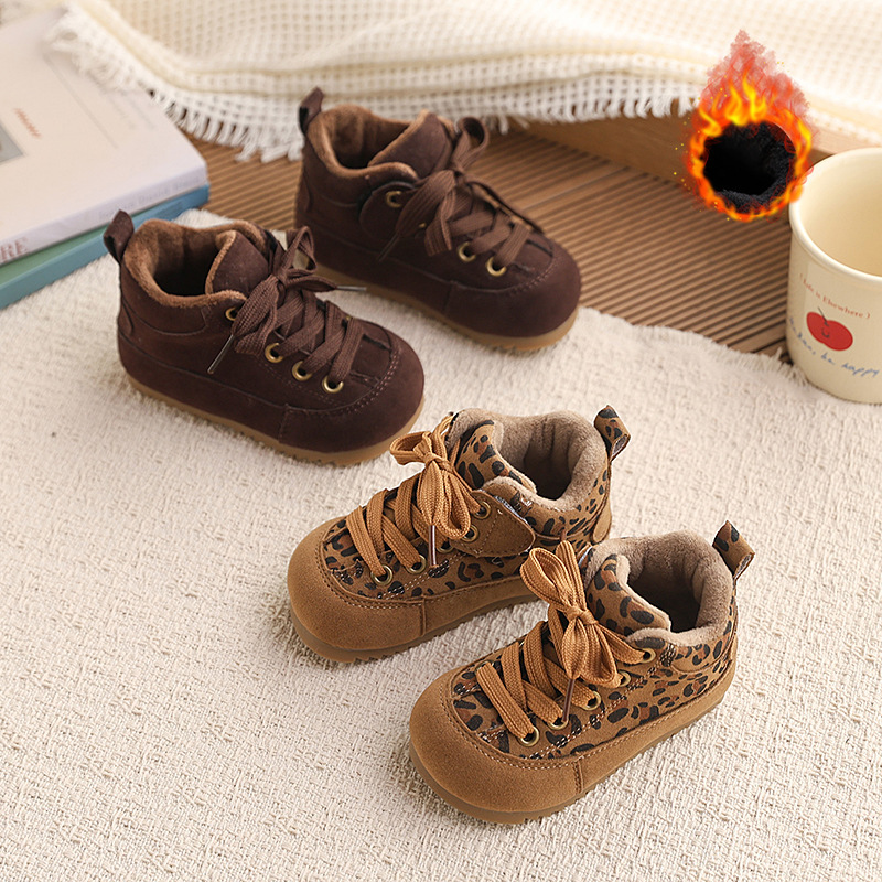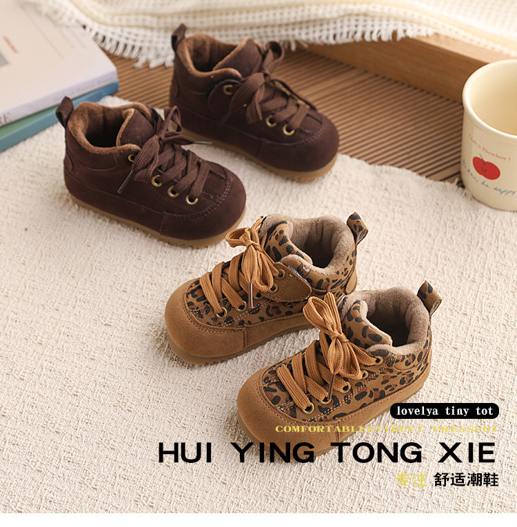 豹纹高帮加绒儿童面包鞋女童冬鞋2025新款保暖宝宝二棉鞋男童休闲