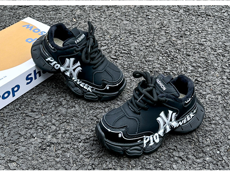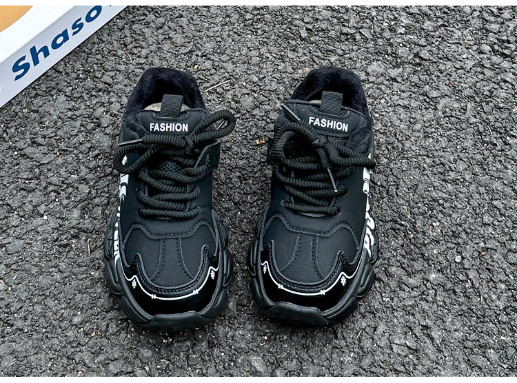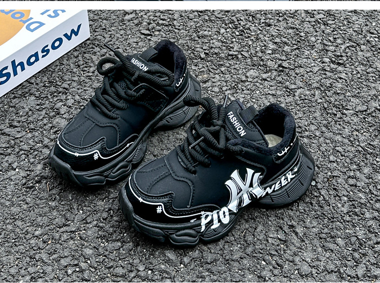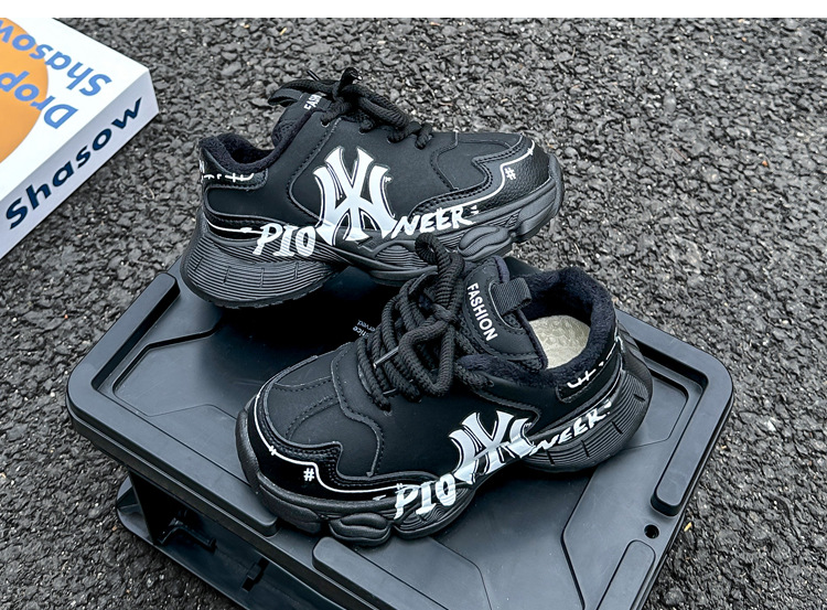 儿童运动鞋加绒保暖二棉鞋冬季新款小白鞋女童超轻软底跑步老爹鞋