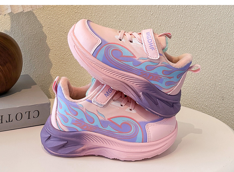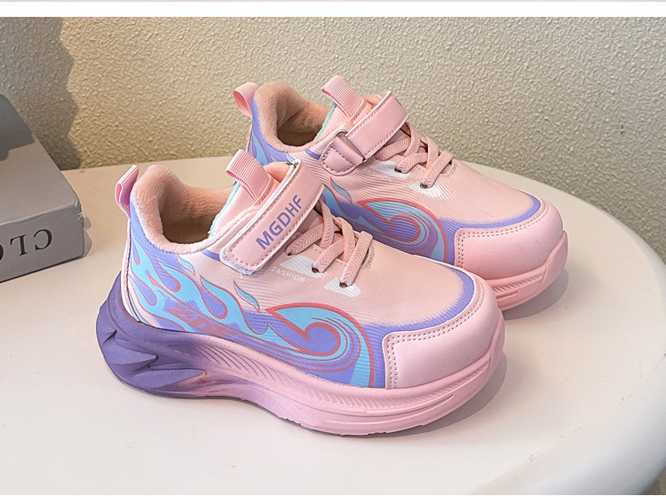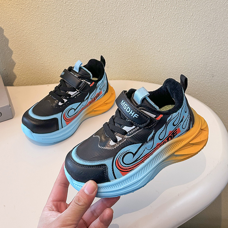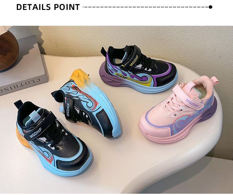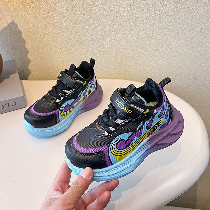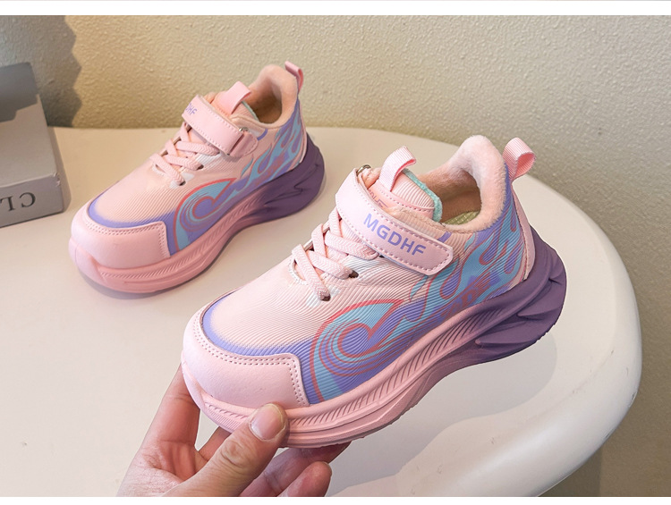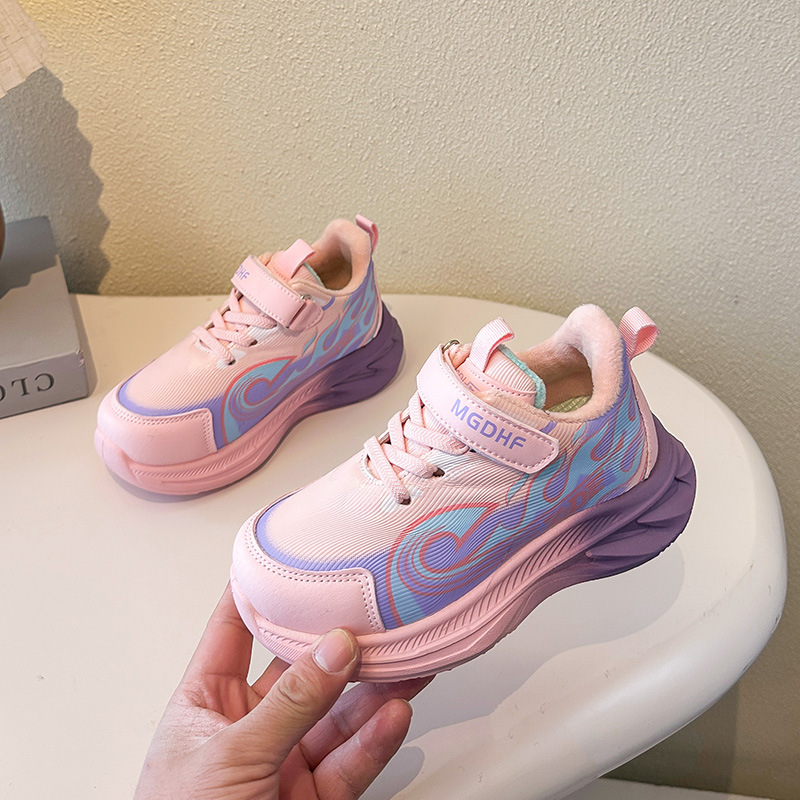 儿童加绒跑步鞋秋冬款学生加厚保暖防滑二棉鞋超轻软底女童运动鞋