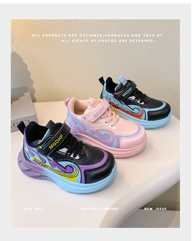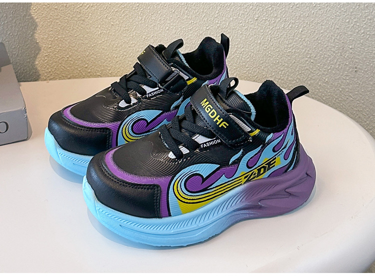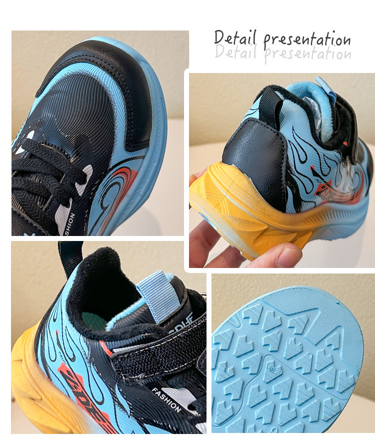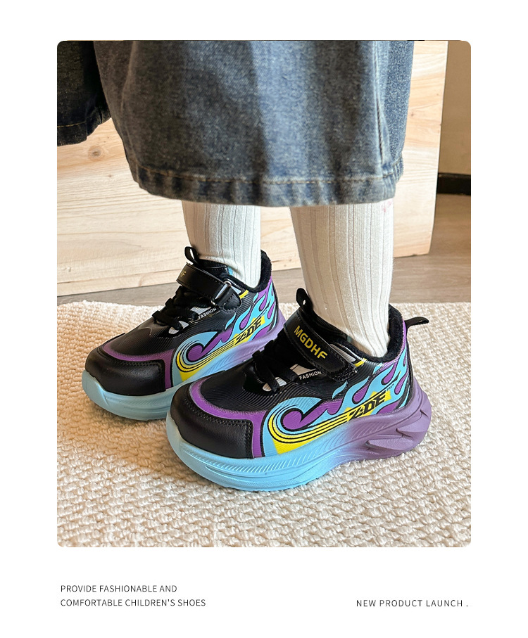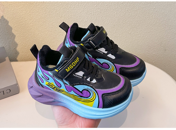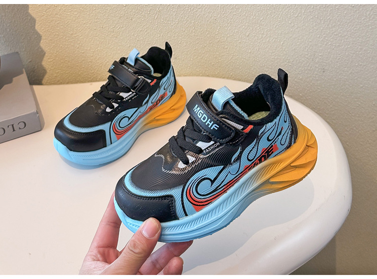 儿童加绒跑步鞋秋冬款学生加厚保暖防滑二棉鞋超轻软底女童运动鞋