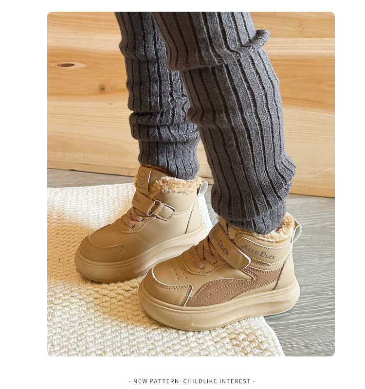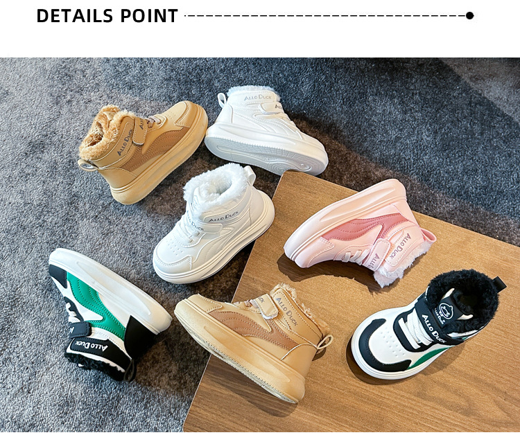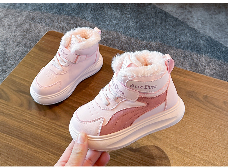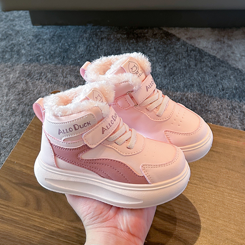 女童运动鞋加绒保暖2025新款冬季中大童大棉鞋女宝宝儿童高帮板鞋
