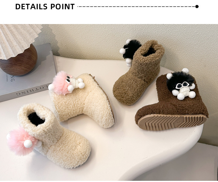 儿童加厚毛毛女童新款棉靴2025冬季保暖卡通雪地女孩宝宝加绒大棉