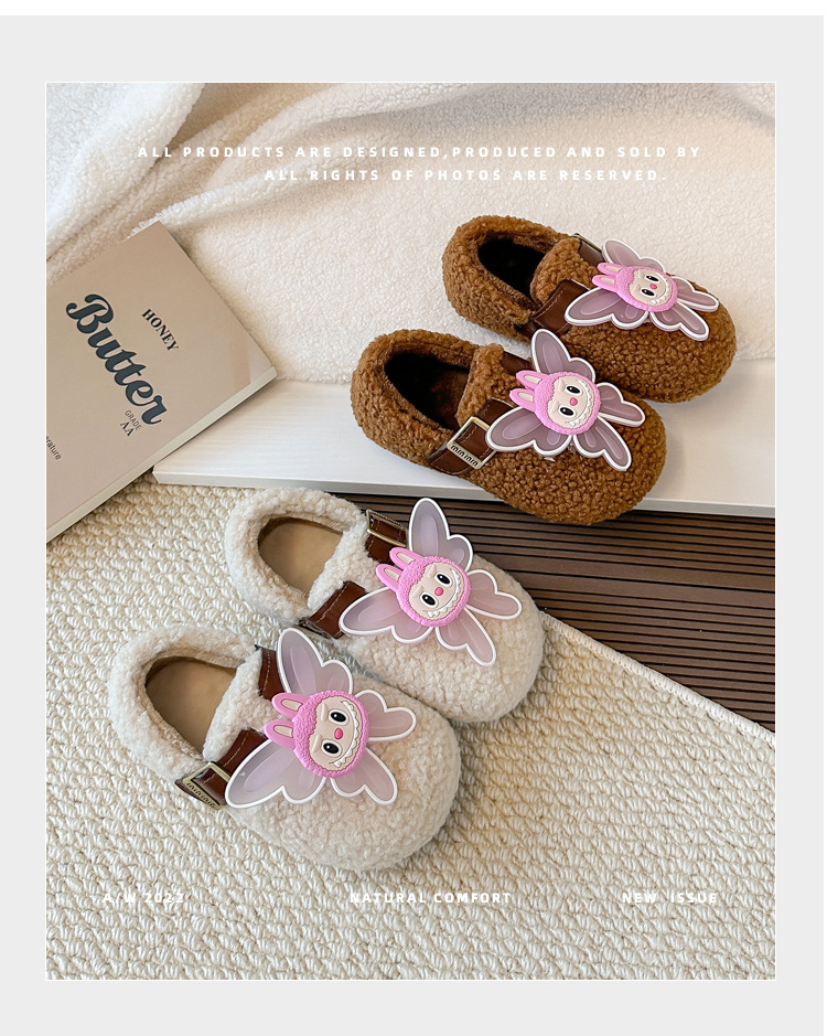 女童毛毛鞋外穿冬季2025新款儿童加绒保暖棉鞋女孩宝宝洋气豆豆鞋