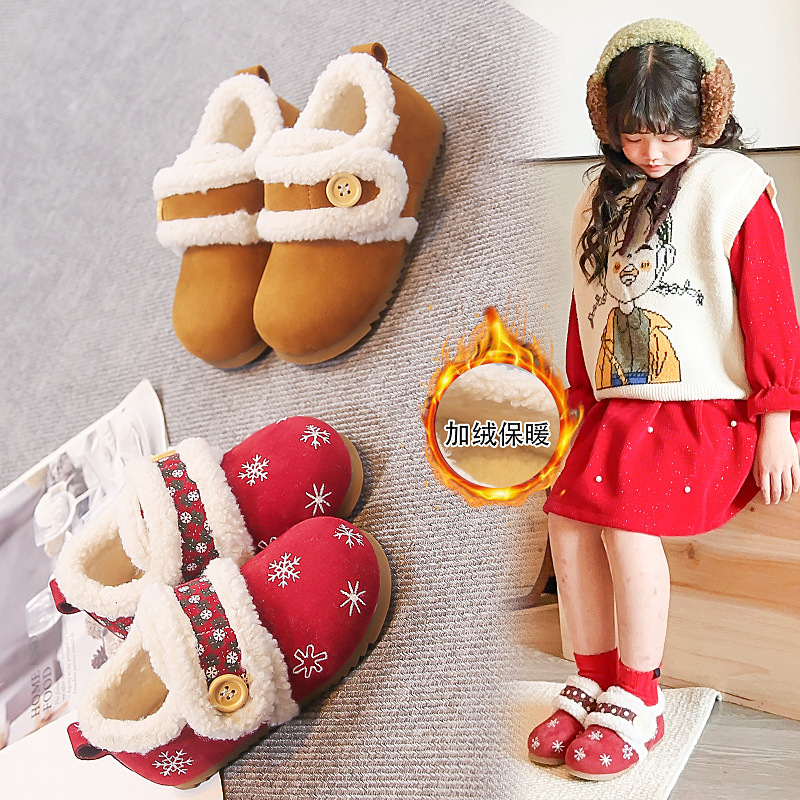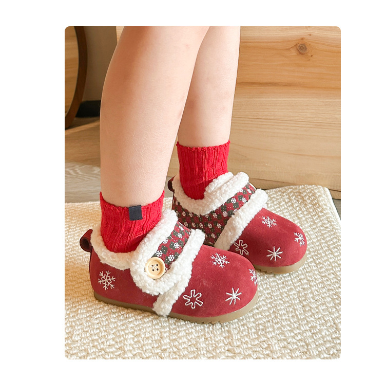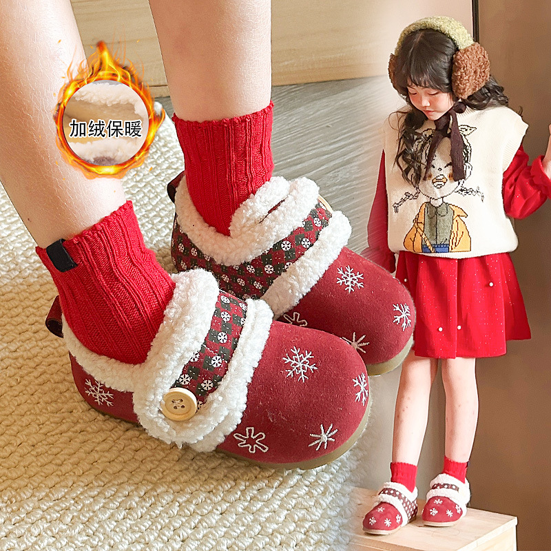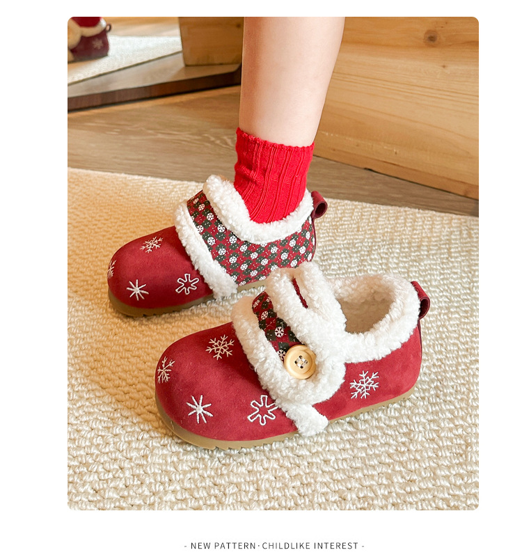 圣诞加绒勃肯鞋女2025过年新款冬季保暖全包一脚蹬毛毛鞋雪地棉鞋