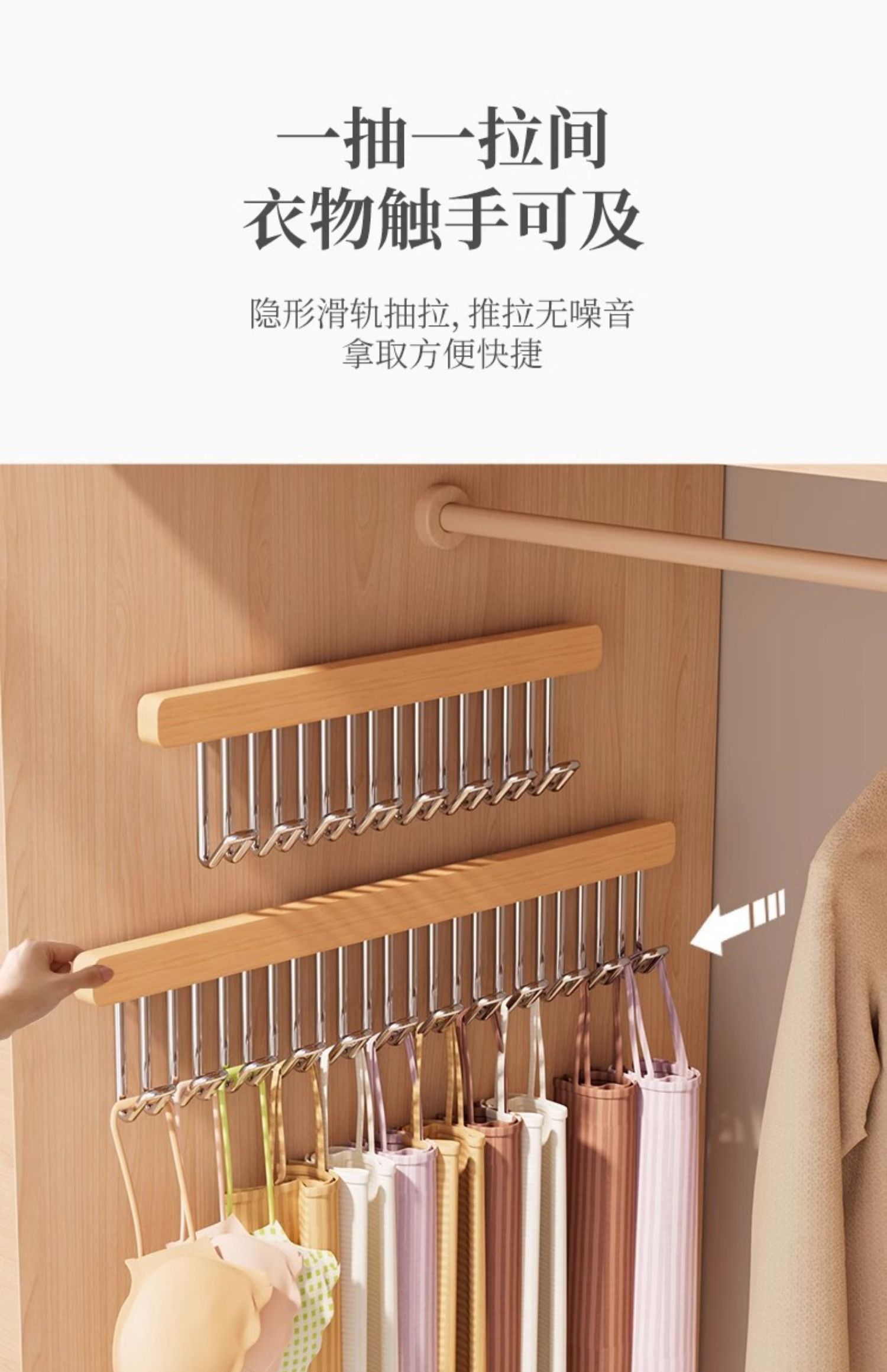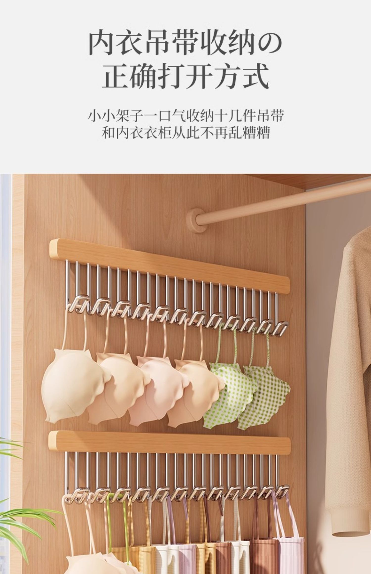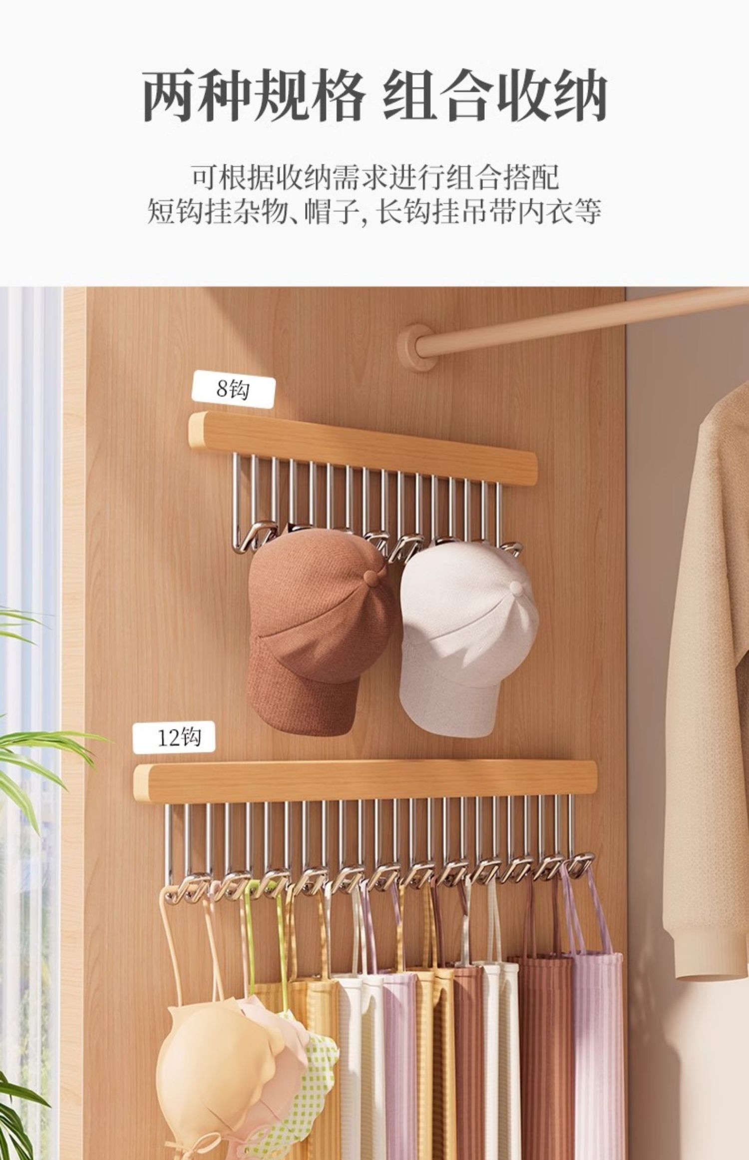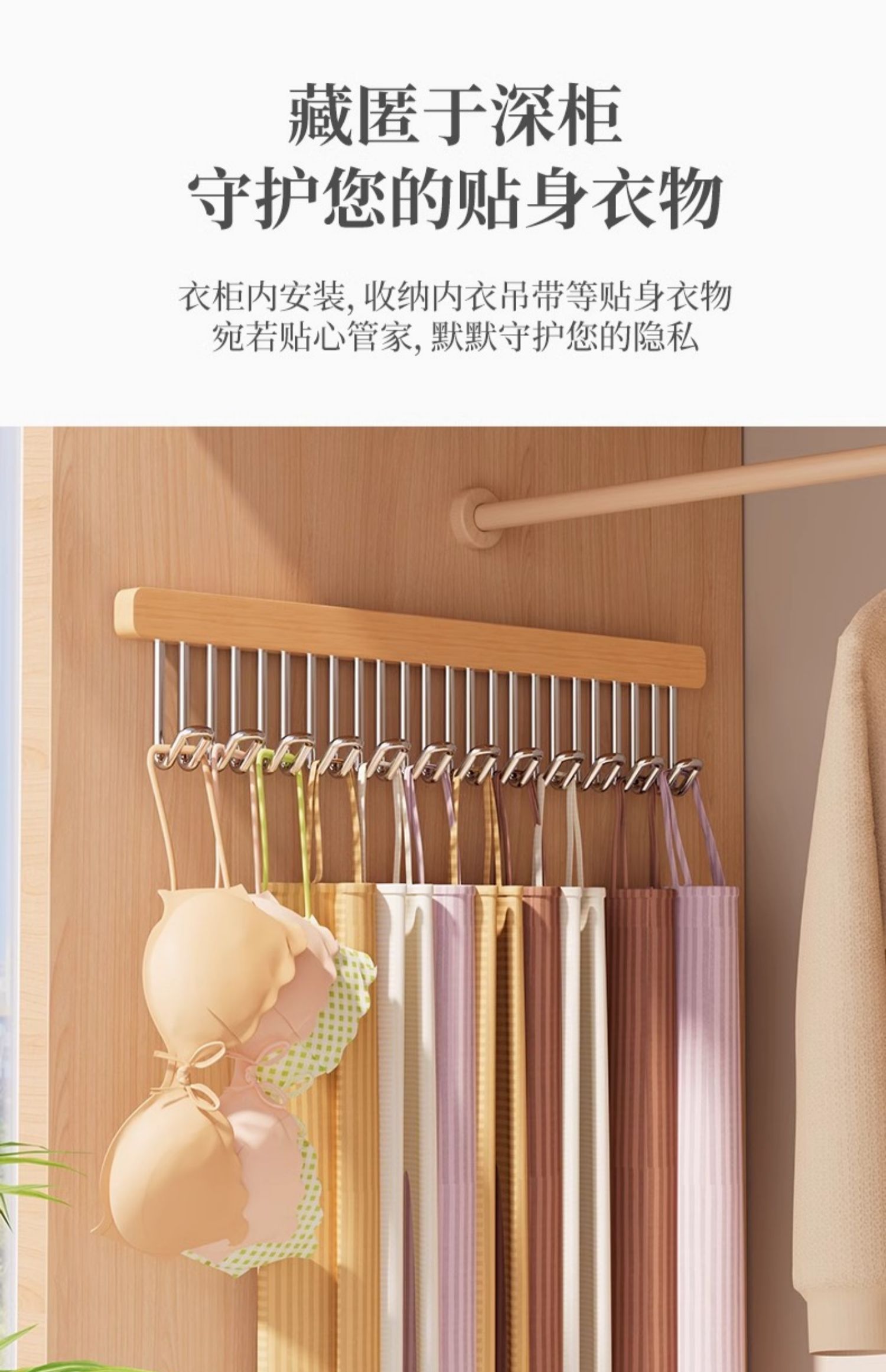 免打孔实木8钩衣架吊带内衣文胸丝袜收纳神器领带架家用宿舍晾晒