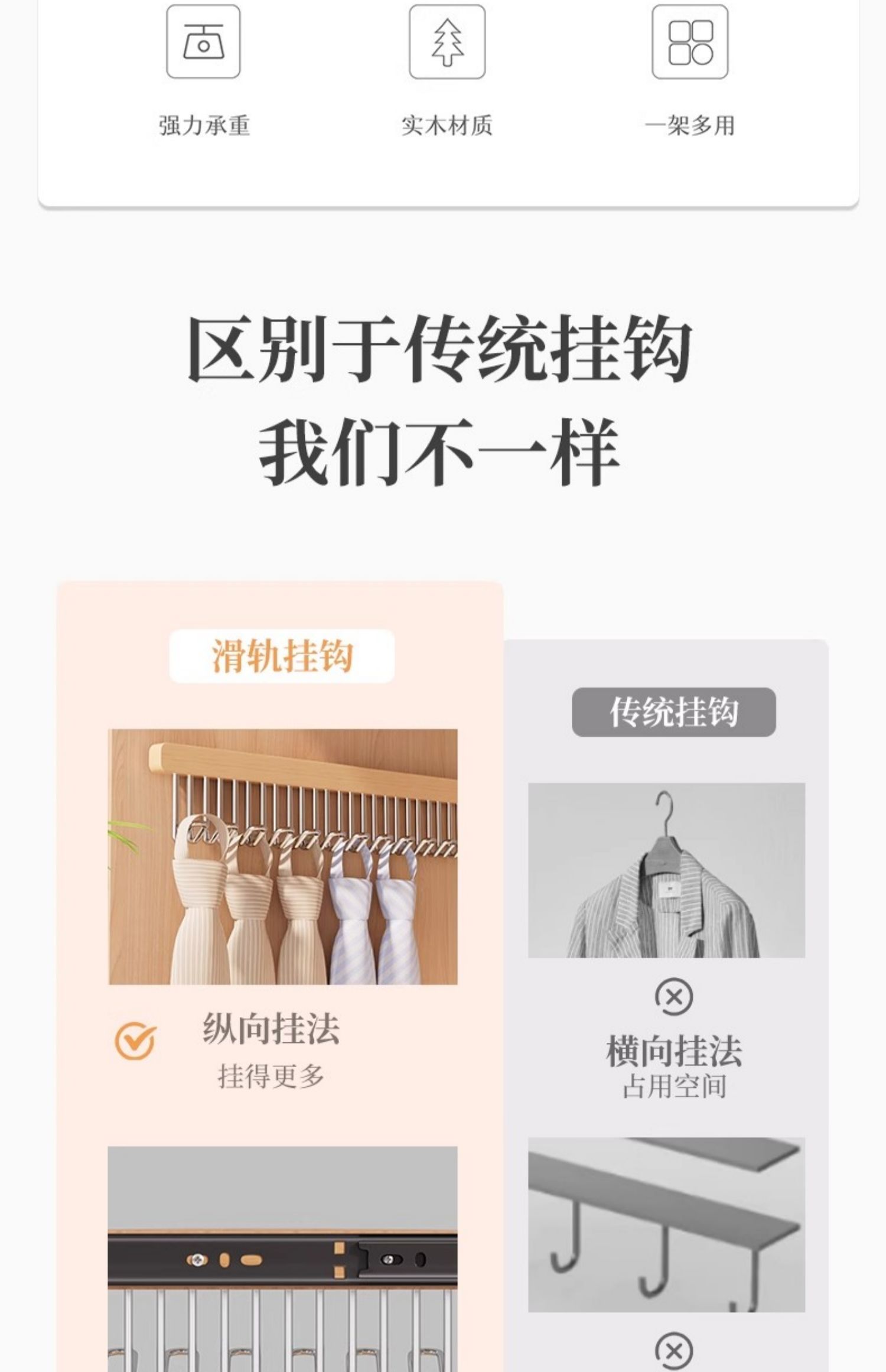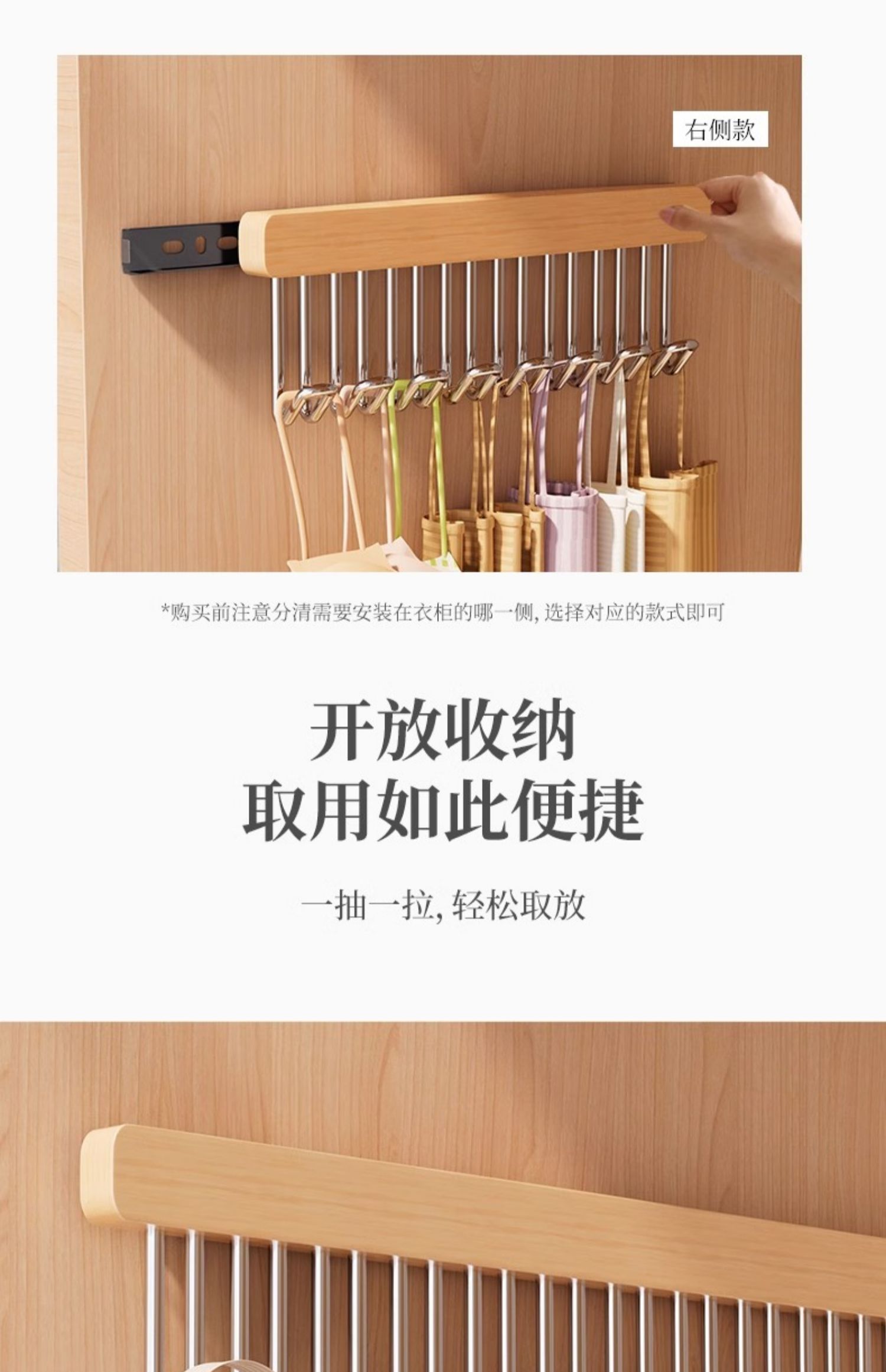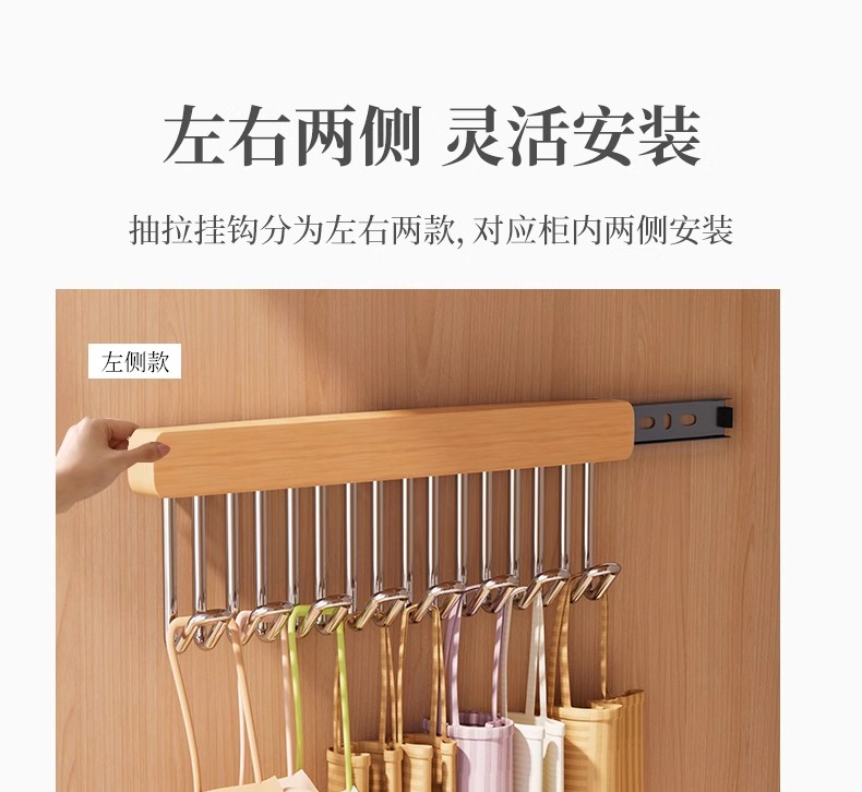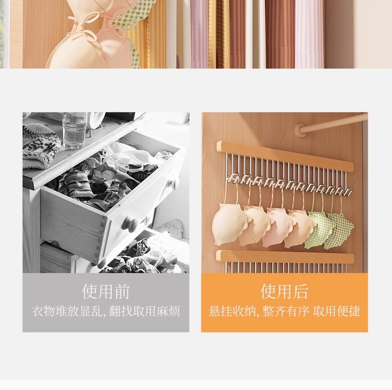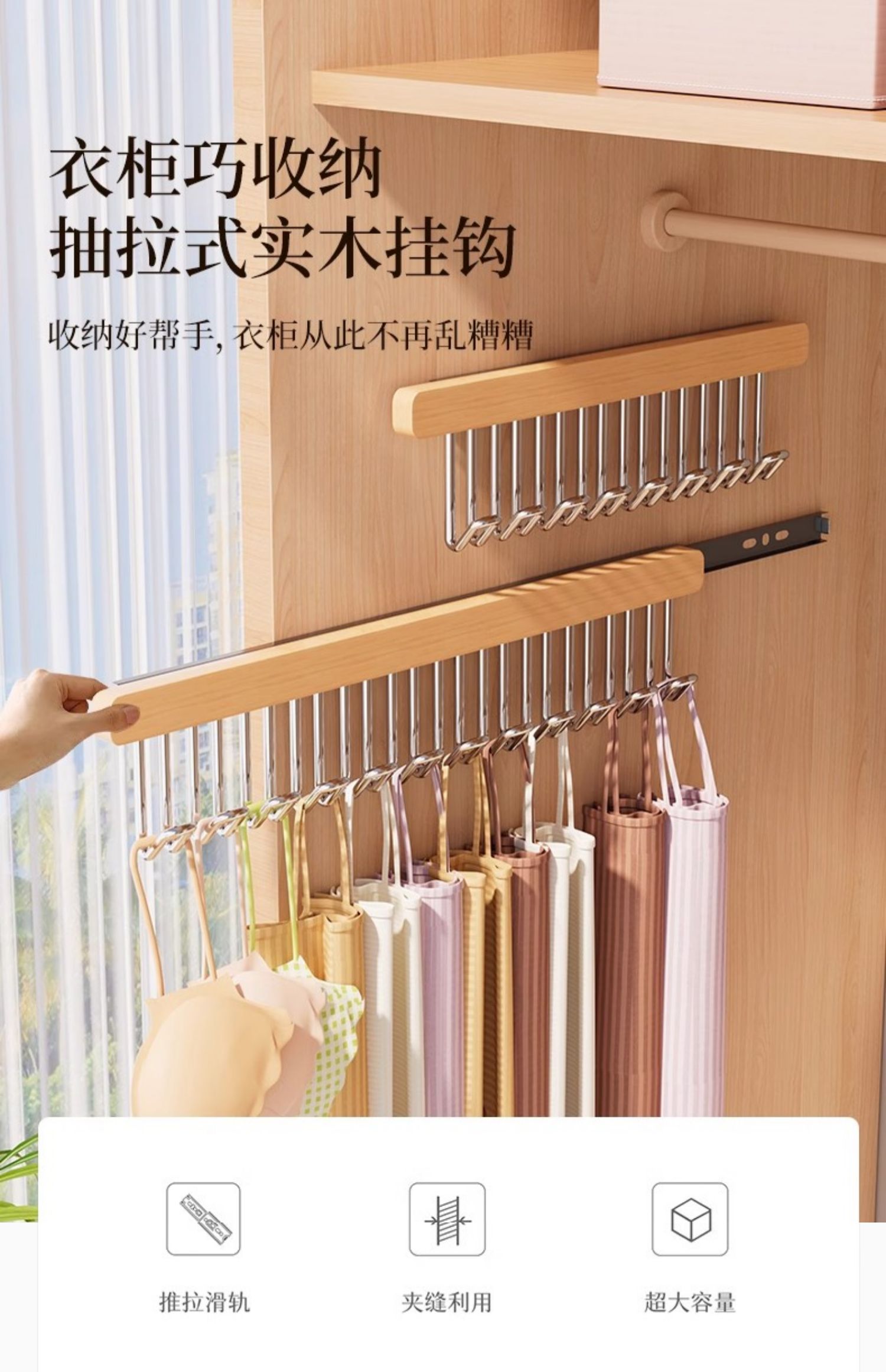 免打孔实木8钩衣架吊带内衣文胸丝袜收纳神器领带架家用宿舍晾晒