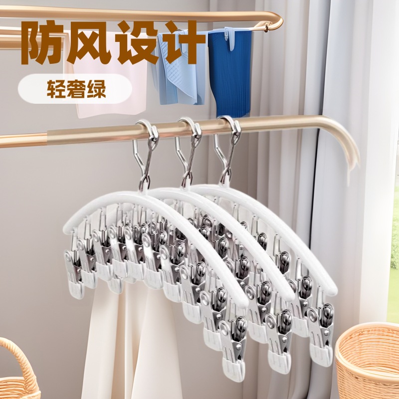 不锈钢晒袜子夹晾衣架多夹子阳台防风多功能晾内衣裤袜夹家用挂衣