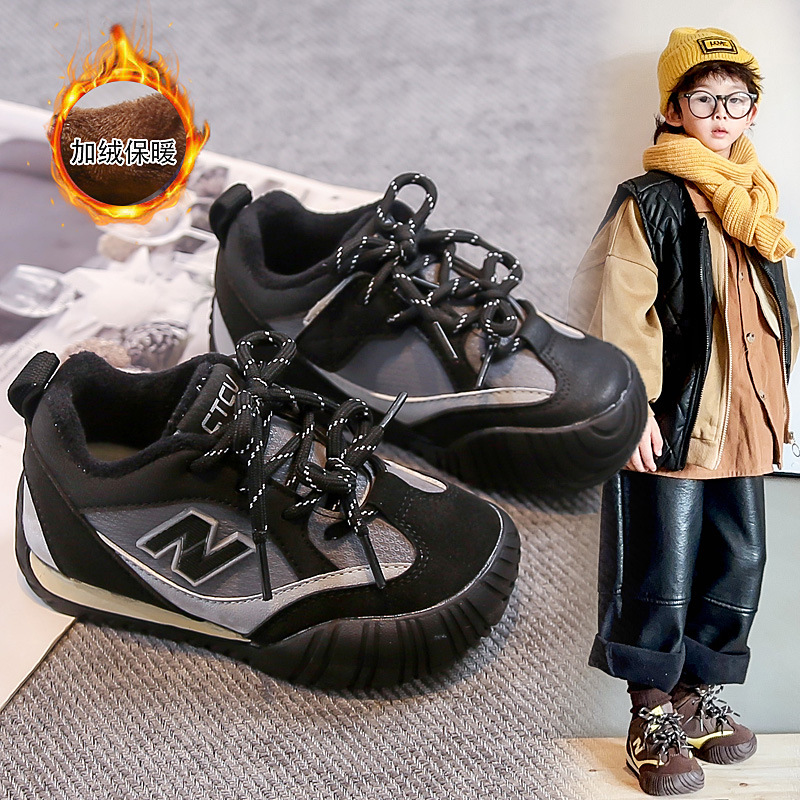 女童运动鞋2025冬季新款儿童二棉童鞋女孩软底加绒阿甘鞋子