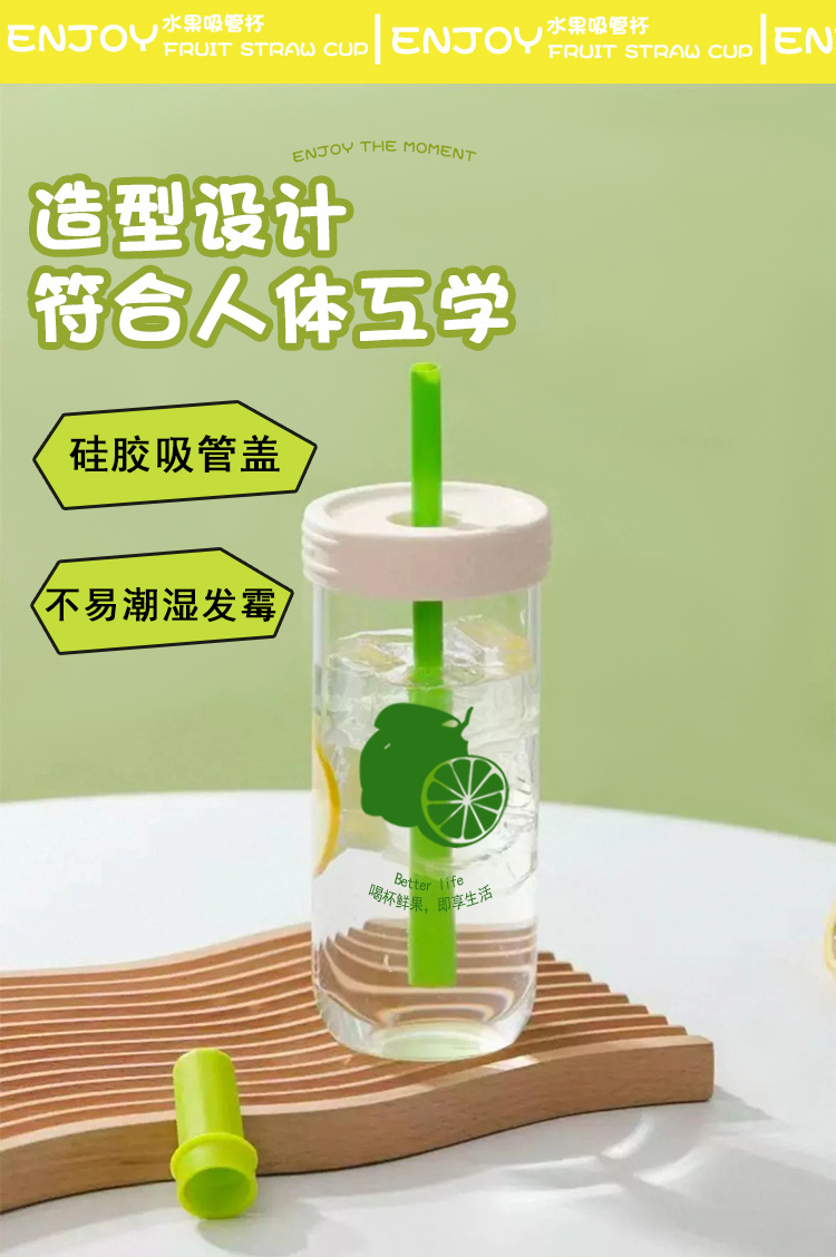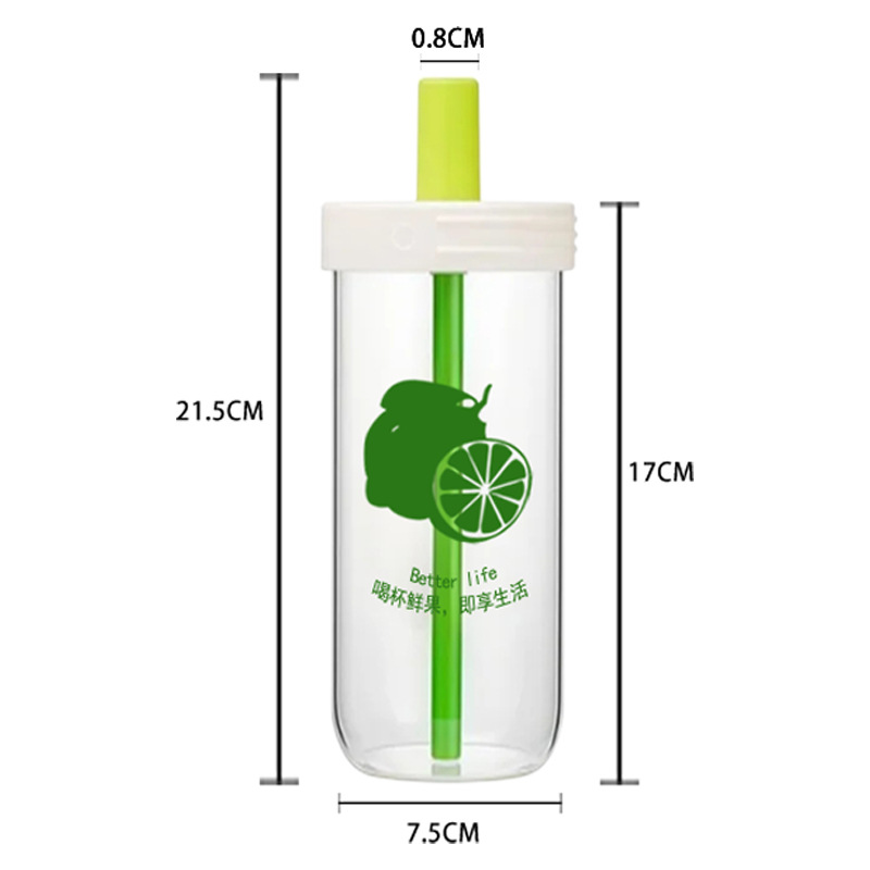 玻璃水杯大容量便携带随行现货高颜值柠檬吸管杯高硼硅吸管玻璃杯