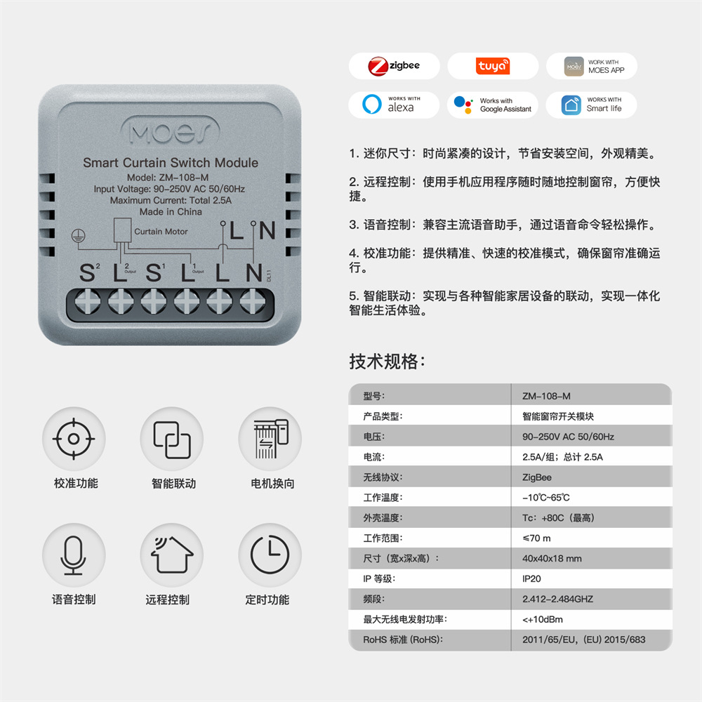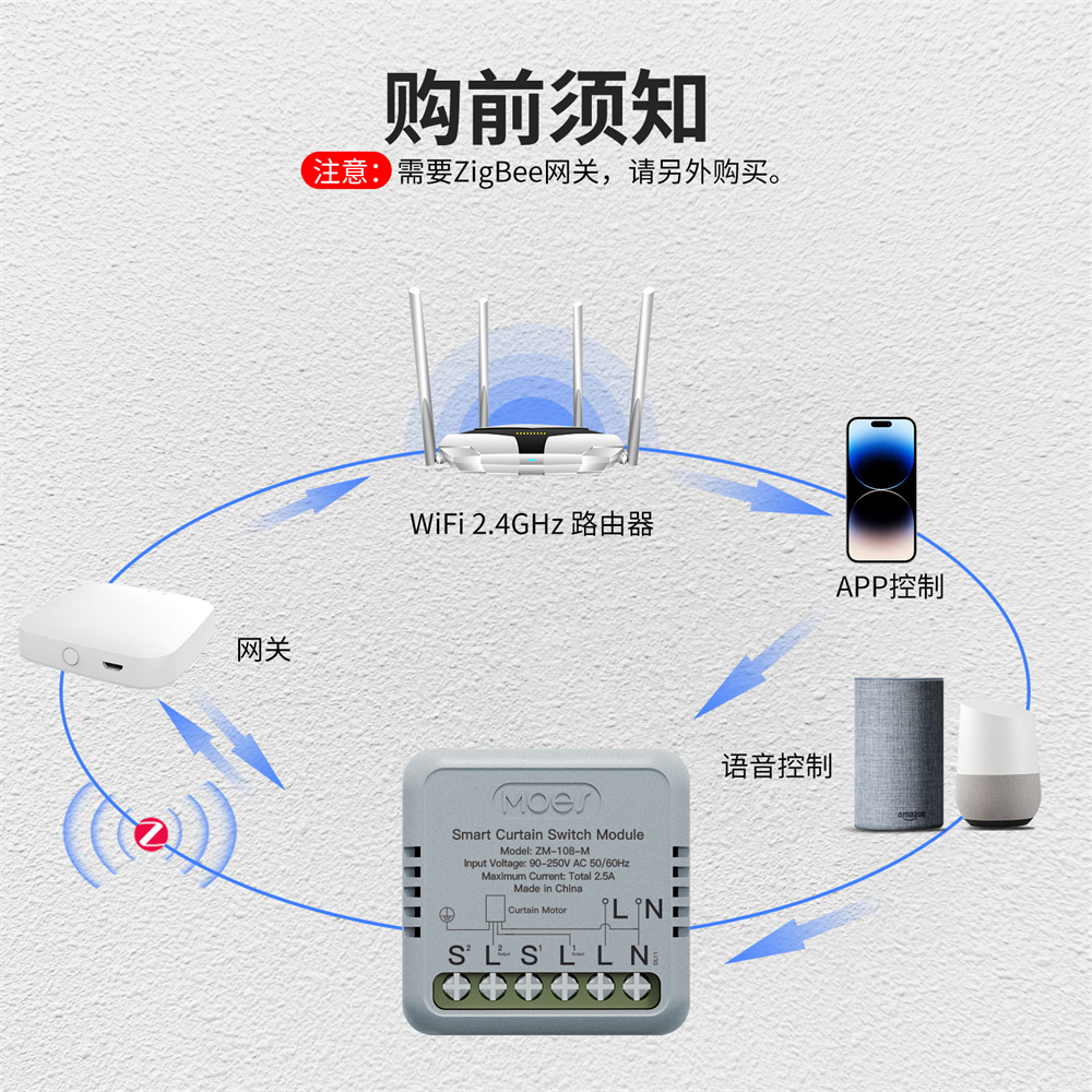 zigbee窗帘电机智能开关app远程控制定时4芯线窗帘电机墙壁开关