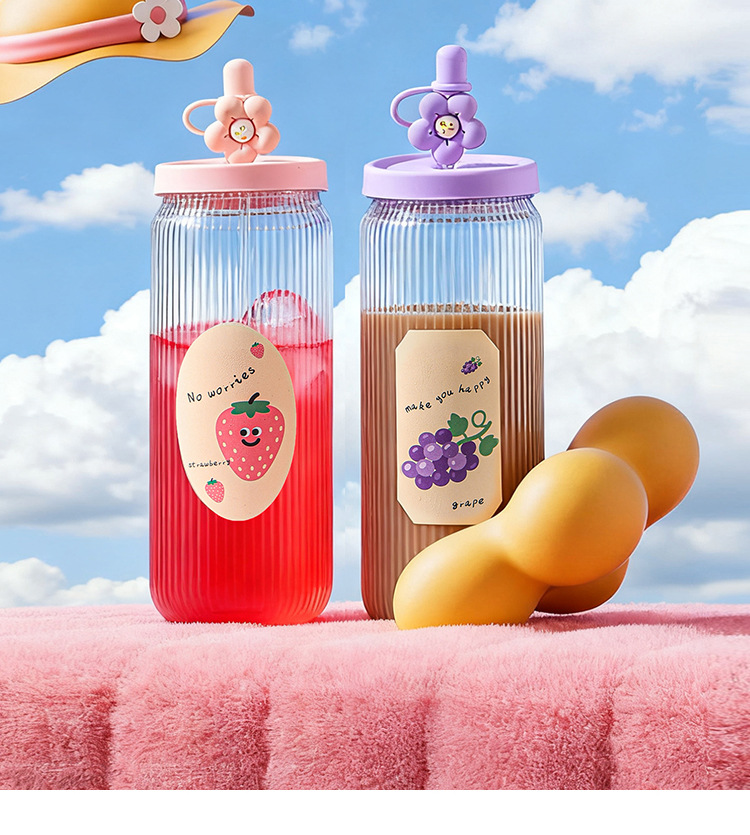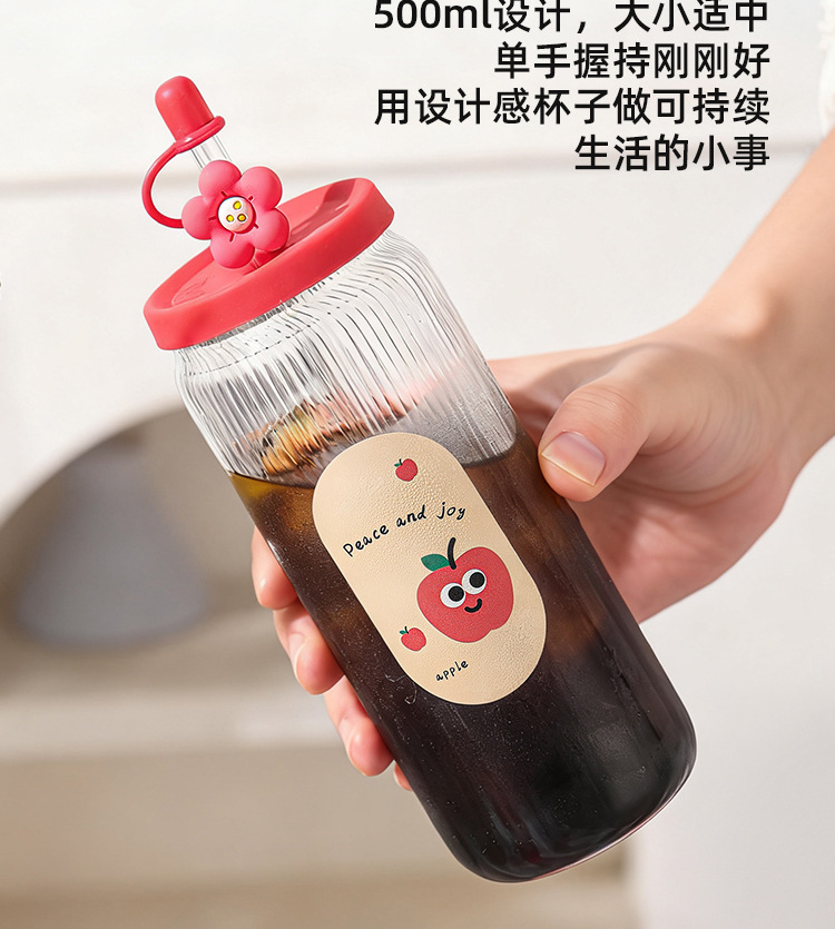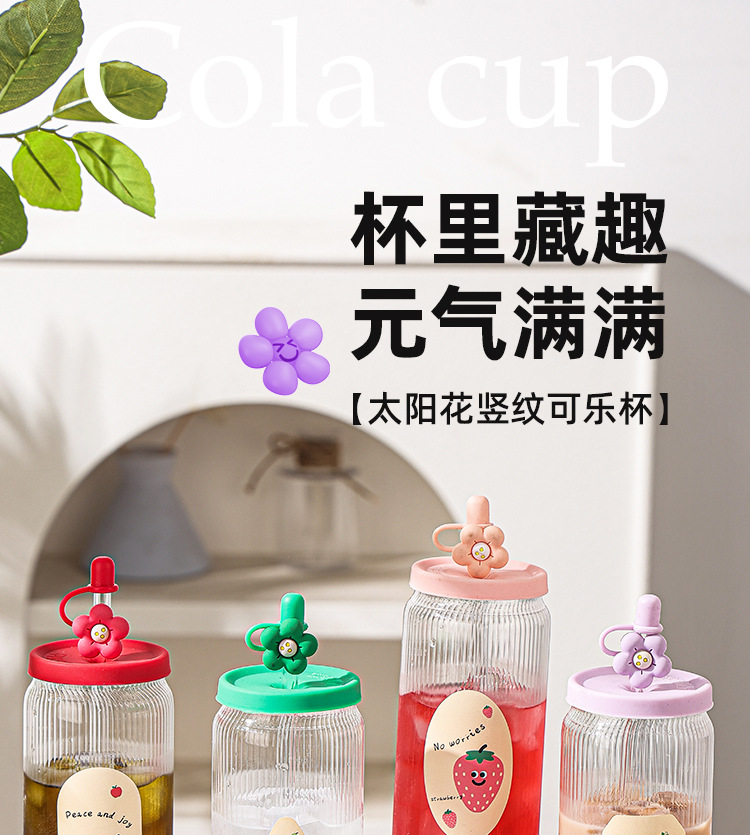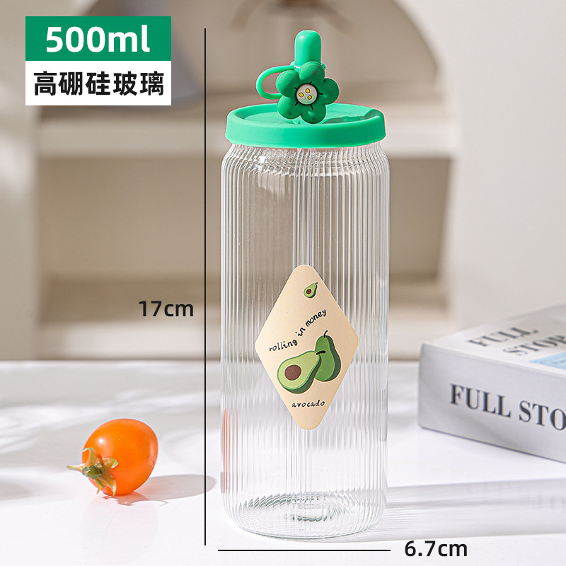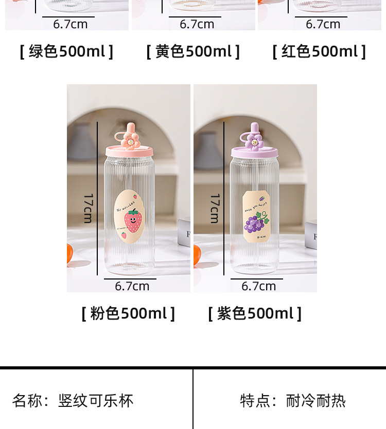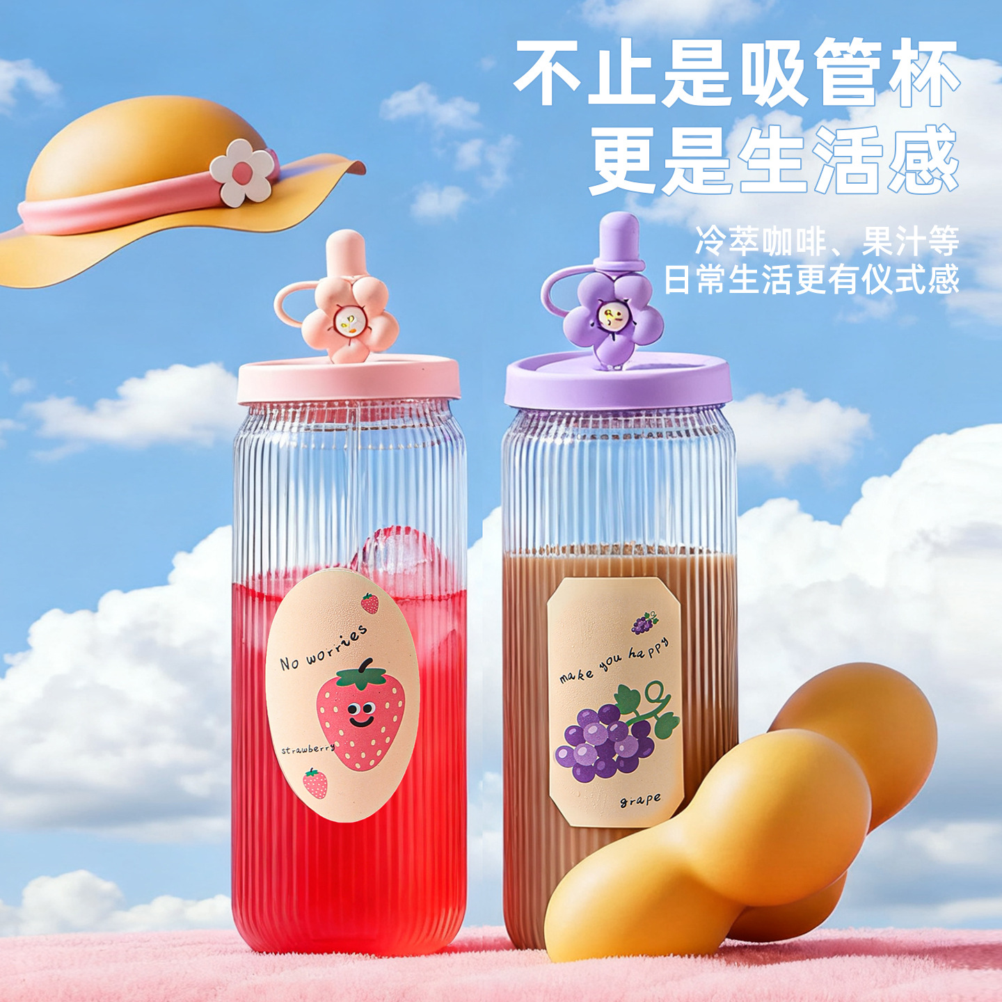 新款马卡龙吸管玻璃水杯女生高硼硅高颜值杯子牛奶早餐杯果汁奶茶