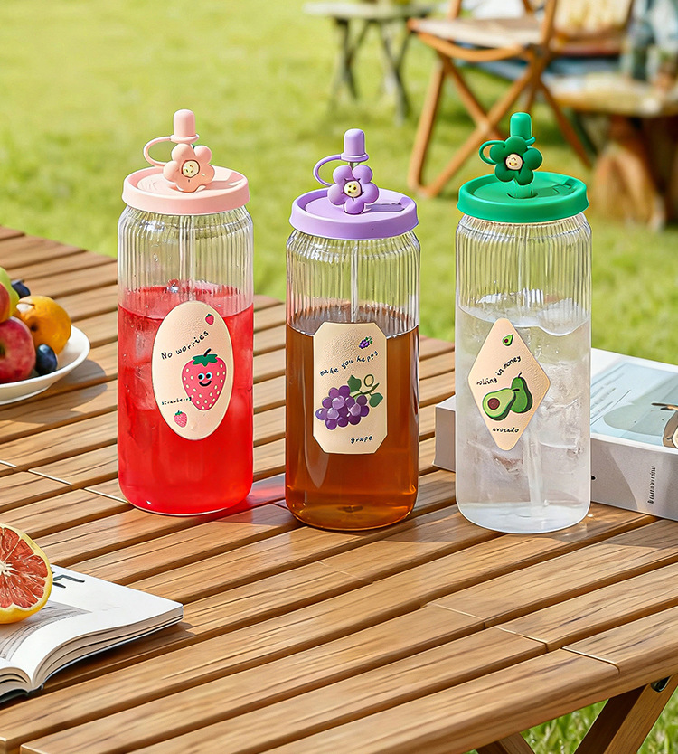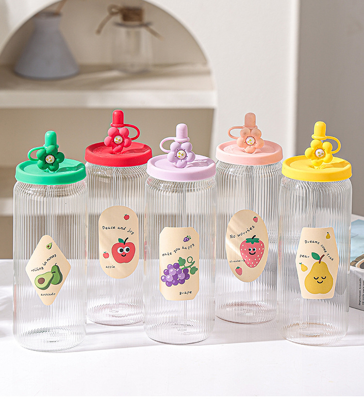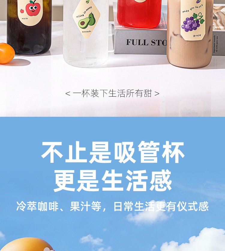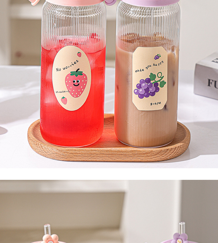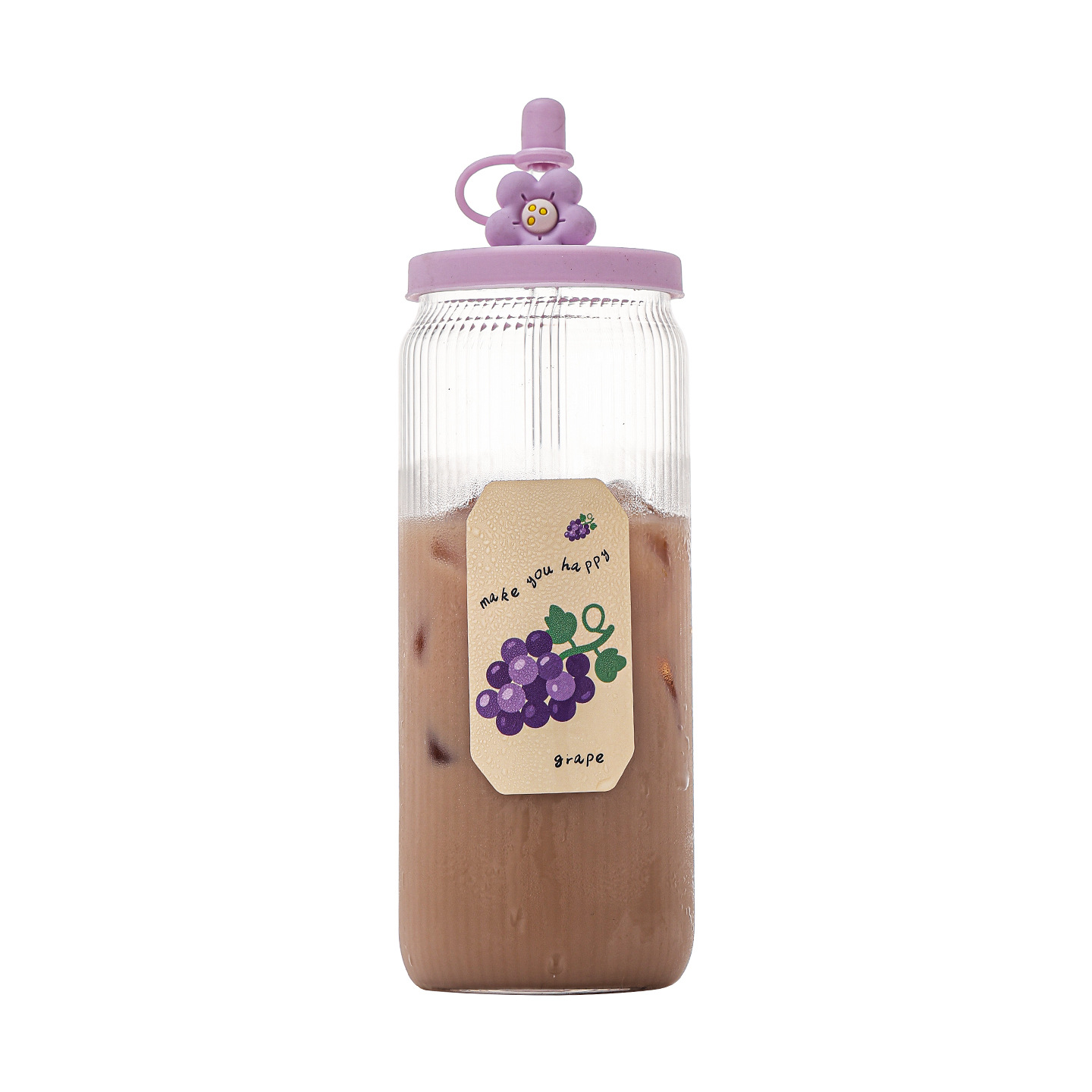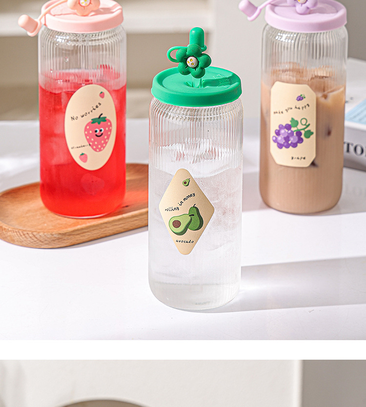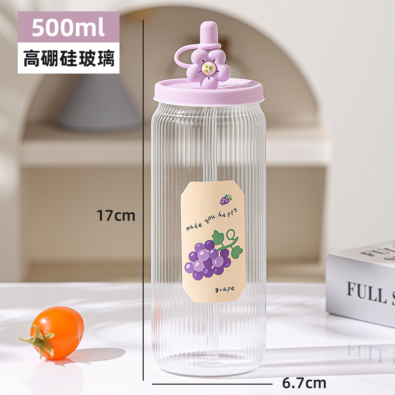 新款马卡龙吸管玻璃水杯女生高硼硅高颜值杯子牛奶早餐杯果汁奶茶