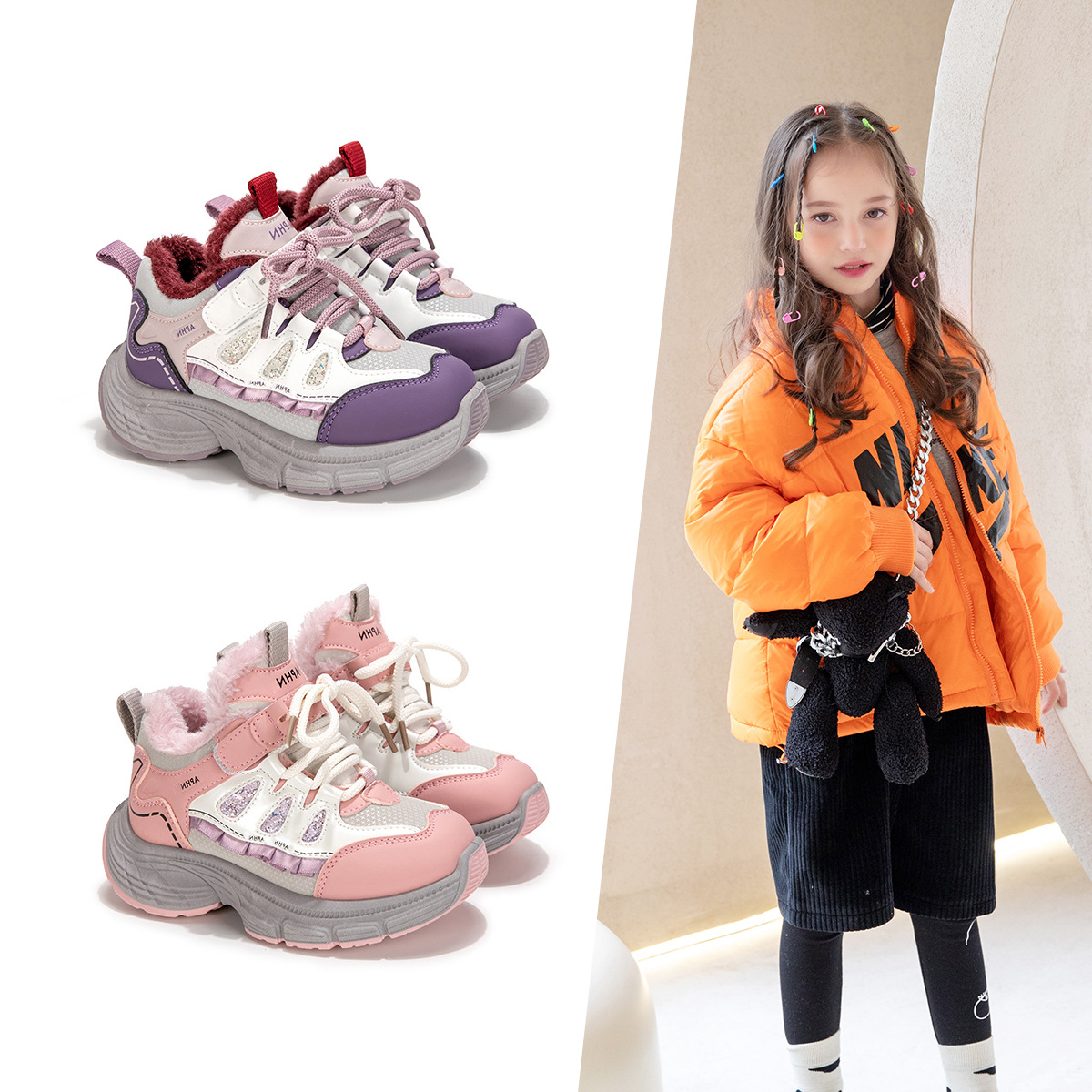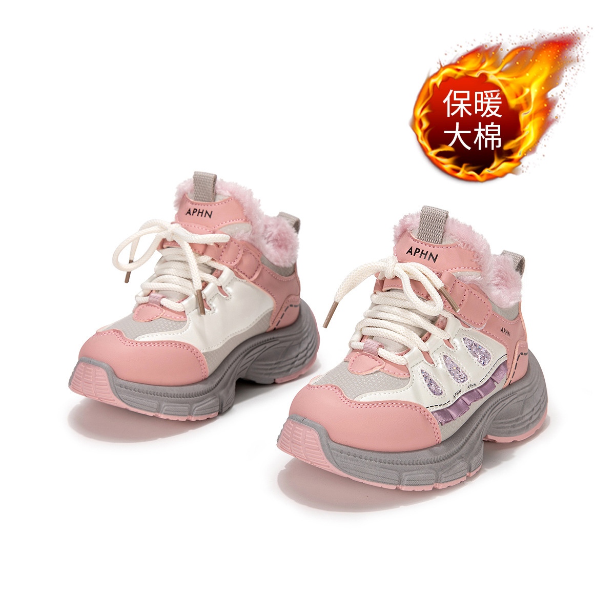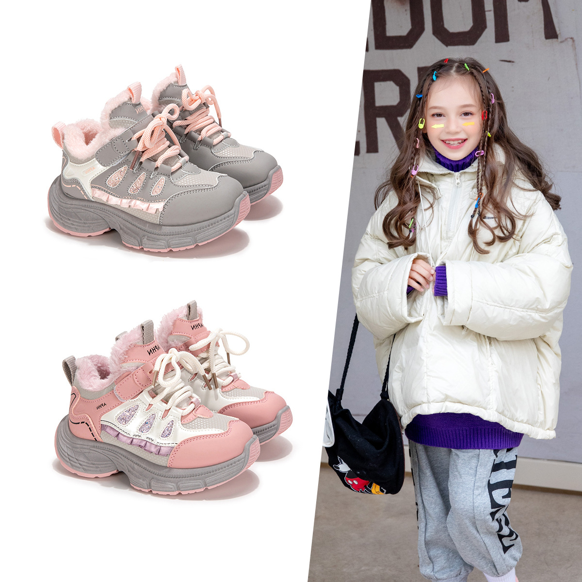 儿童休闲运动鞋2025冬季新款男女童百搭跑鞋中大童加绒保暖运动鞋