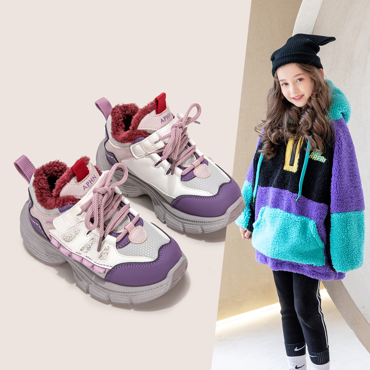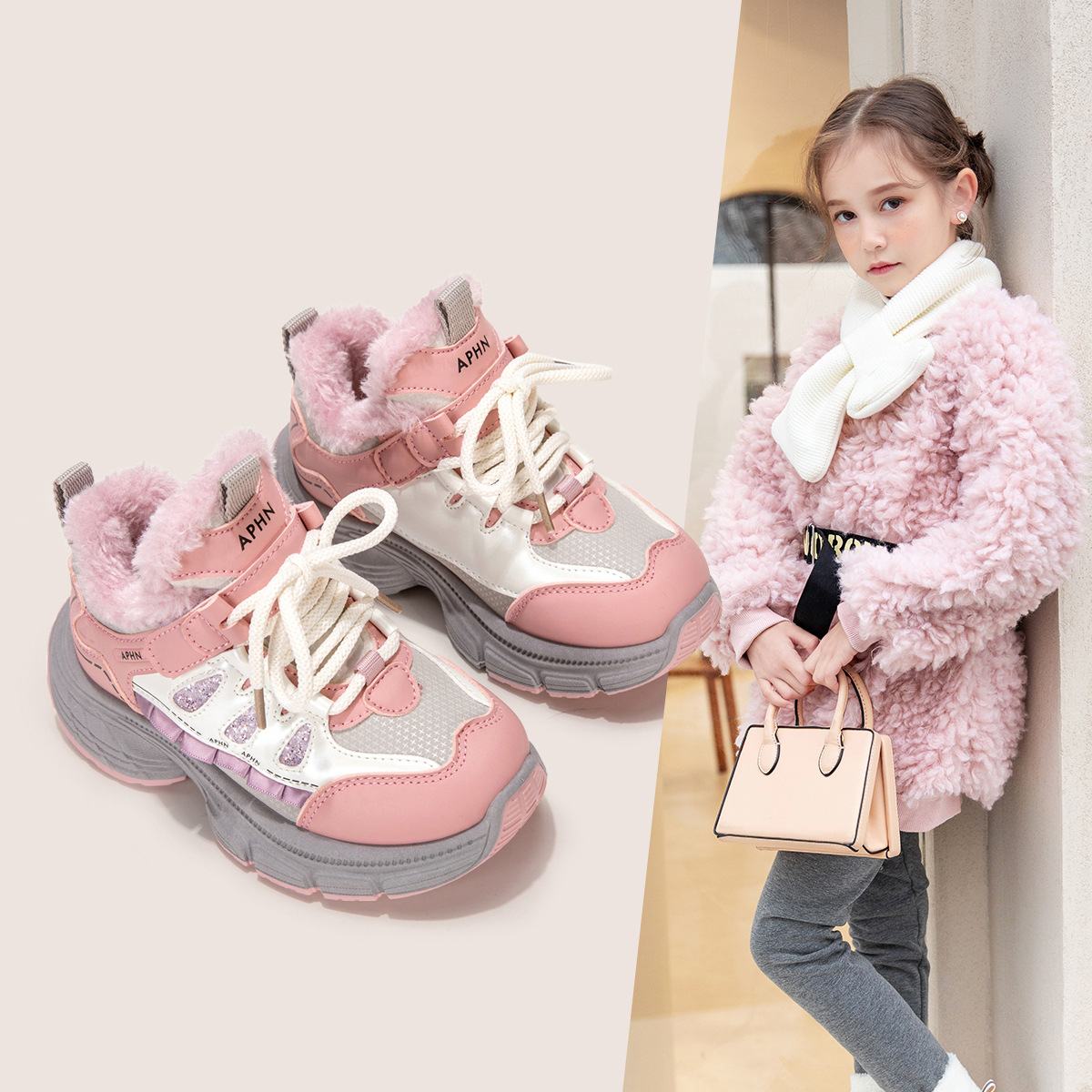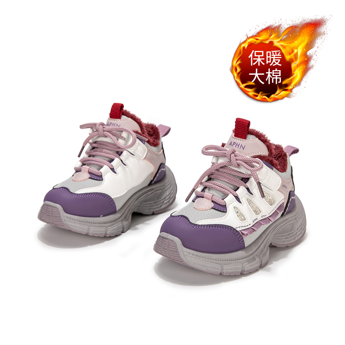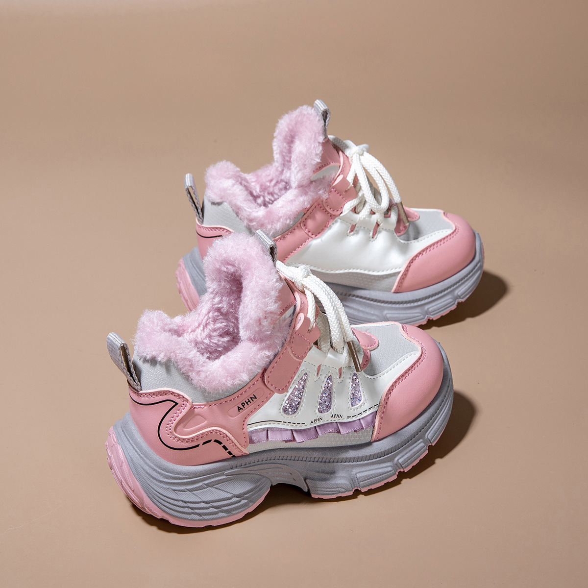 儿童休闲运动鞋2025冬季新款男女童百搭跑鞋中大童加绒保暖运动鞋