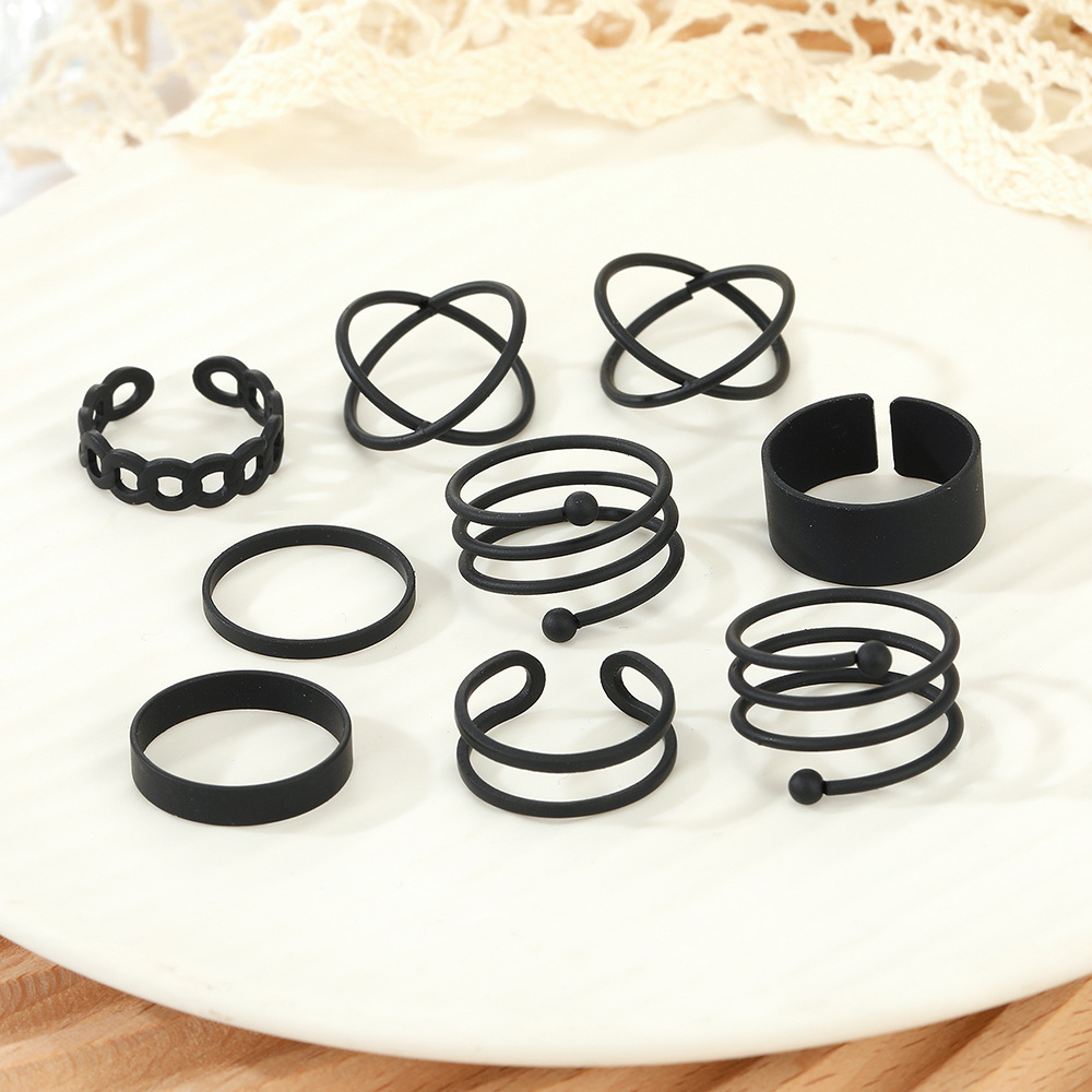 亚马逊跨境黑色烤漆戒指女欧美男高级感开口小众套装首饰饰品批发