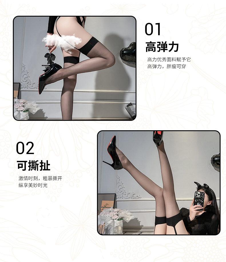 情趣丝袜性感吊带一体袜纯欲拼接辣妹丝袜夜店蹦迪红边黑丝长筒袜