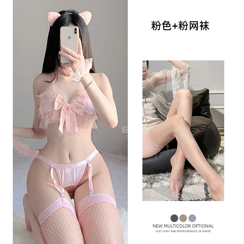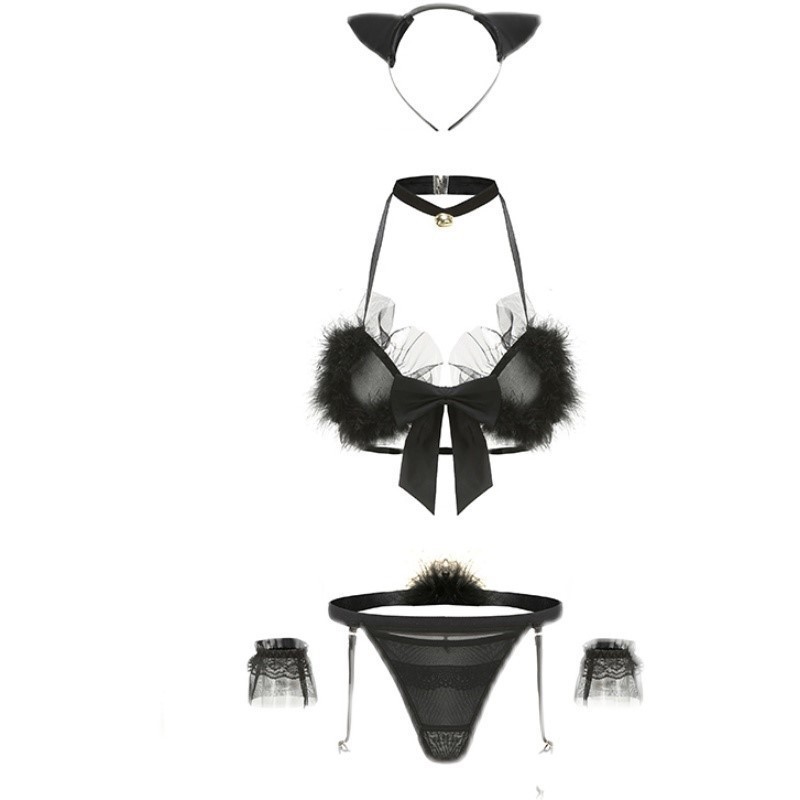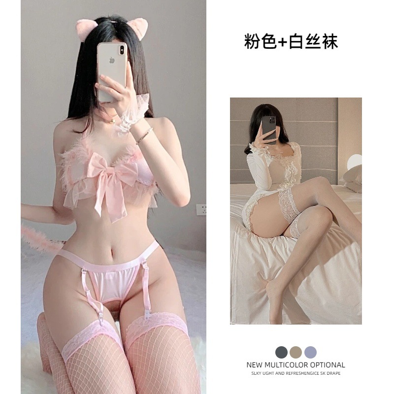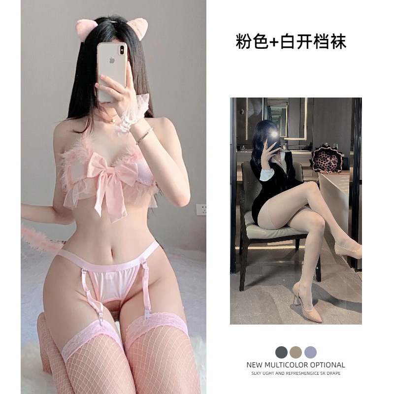 情趣内衣透明性感套装纯欲女郎诱惑尾巴制服可爱开裆制服角色扮演