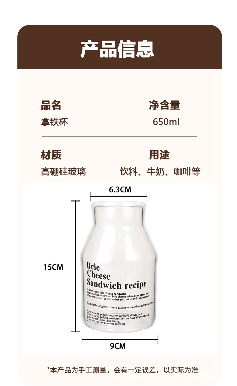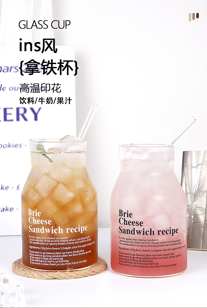 ins高颜值拿铁咖啡高硼硅玻璃杯家用水杯大容量奶茶果汁可乐字母