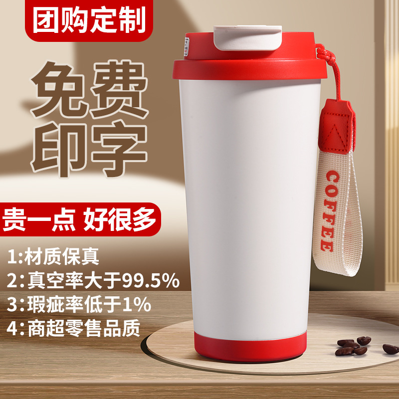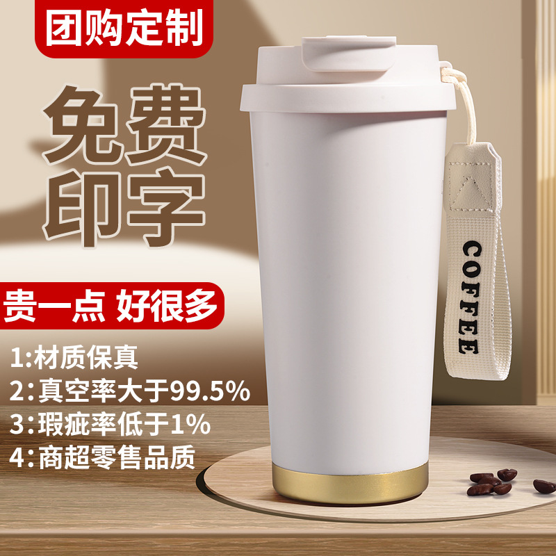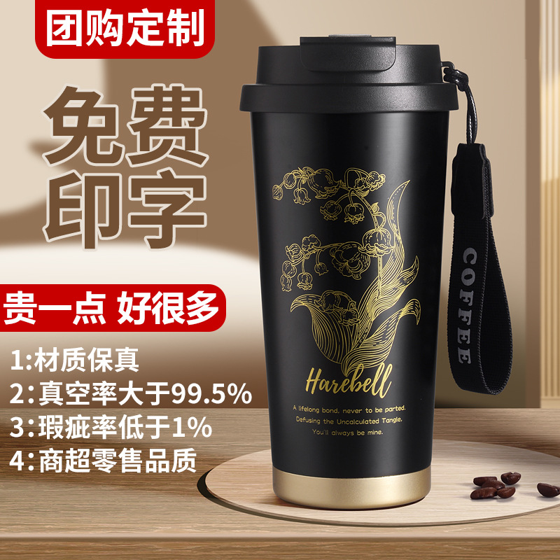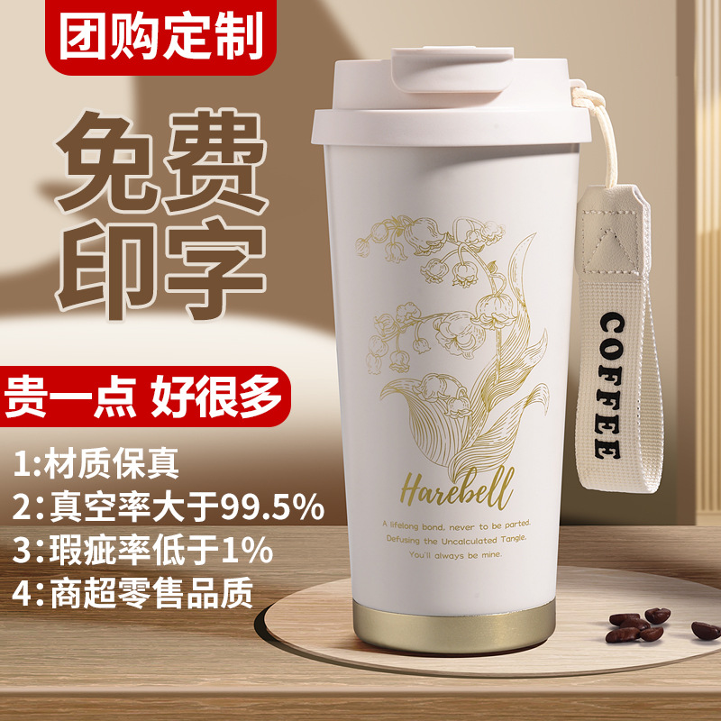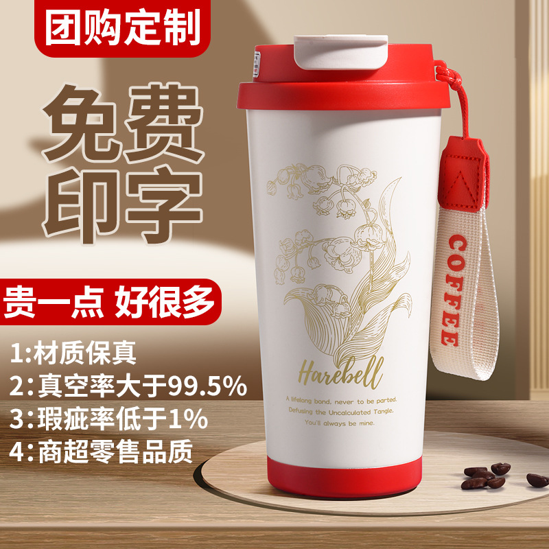咖啡保温杯304不锈钢保温杯铃兰花双饮吸管不锈钢咖啡杯定制logo