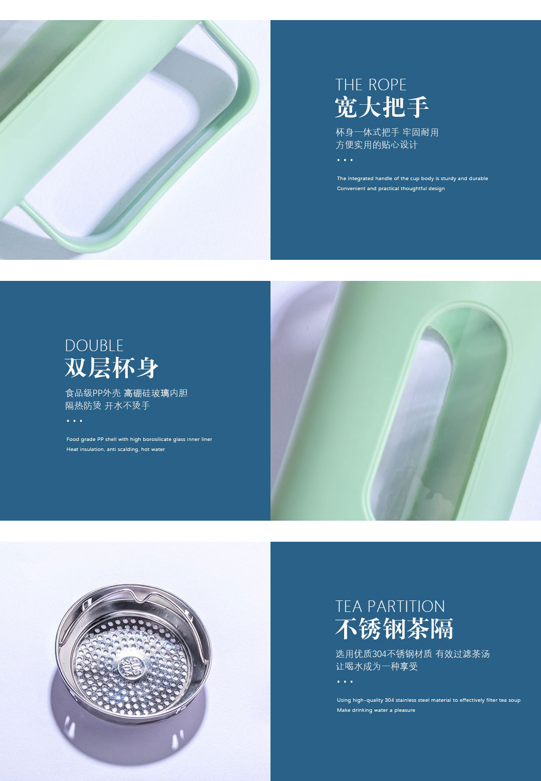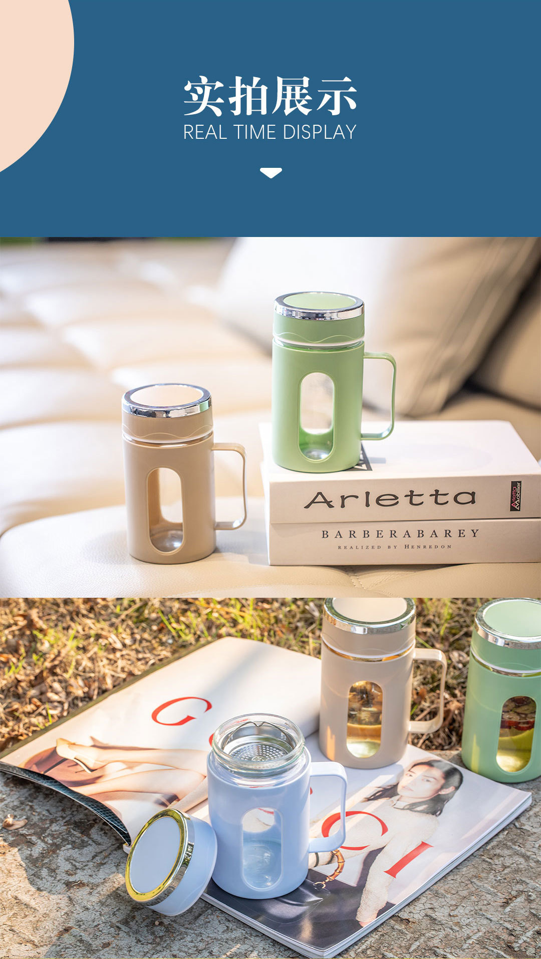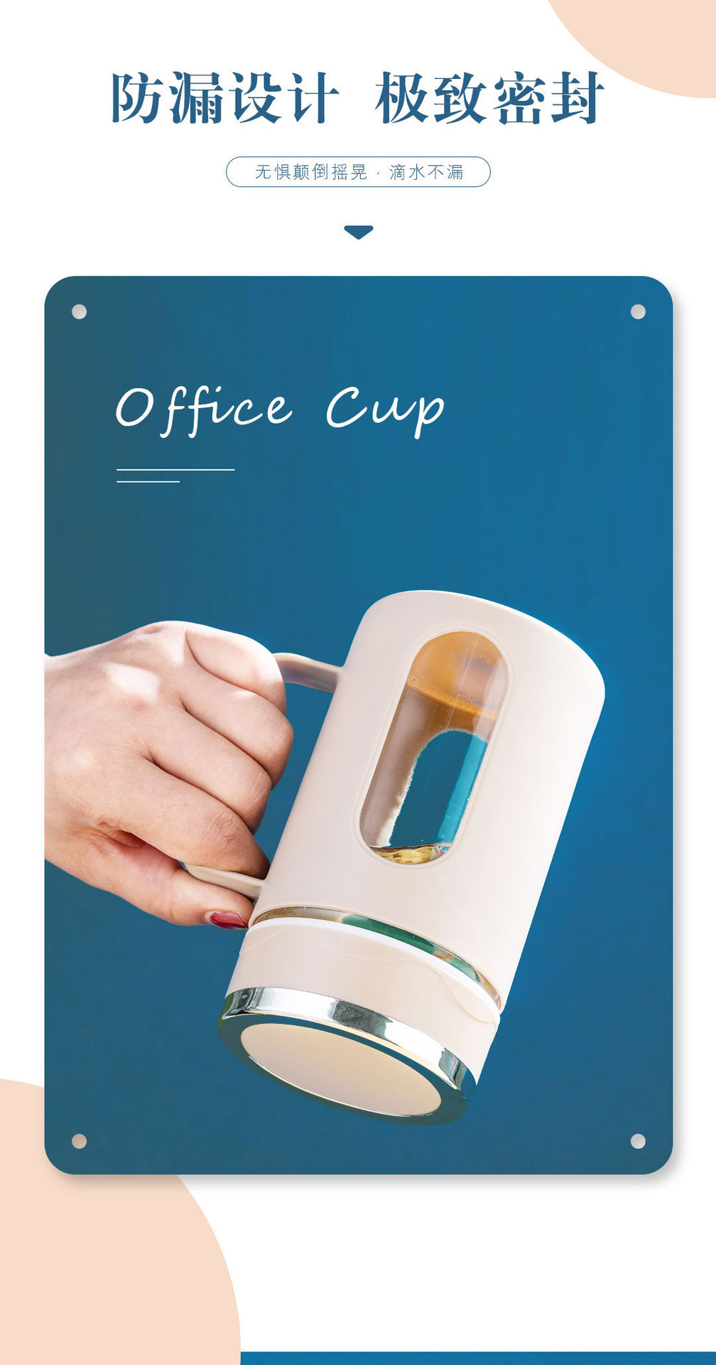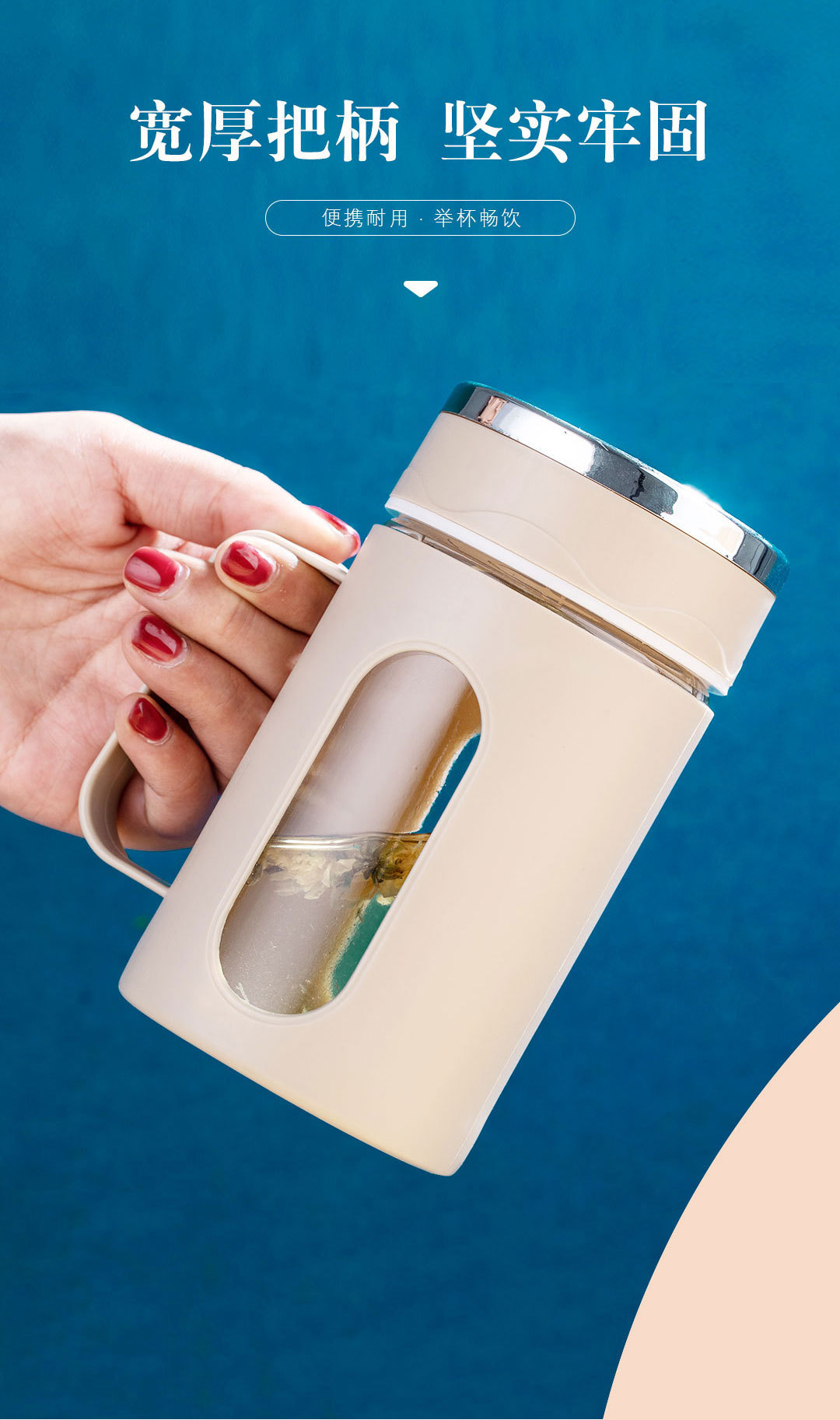 双层隔热把手商务杯玻璃塑壳水杯茶水分离杯大容量礼品杯批发茶杯