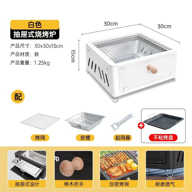 家用露营庭院烧烤炉户外便携木炭烧烤架方形围炉煮茶的野营烤火盆