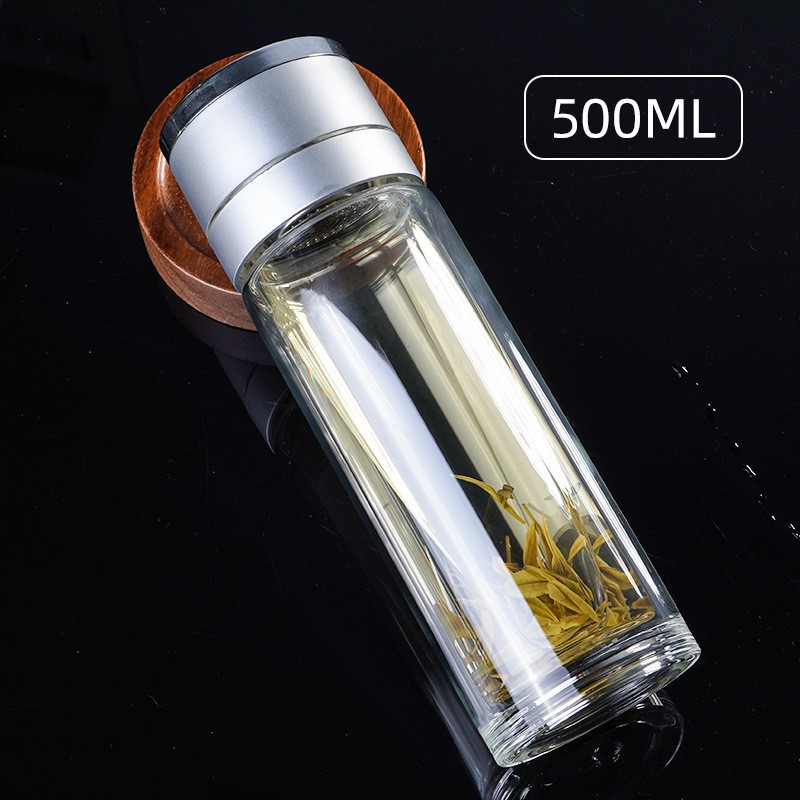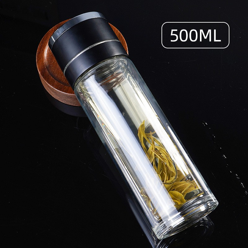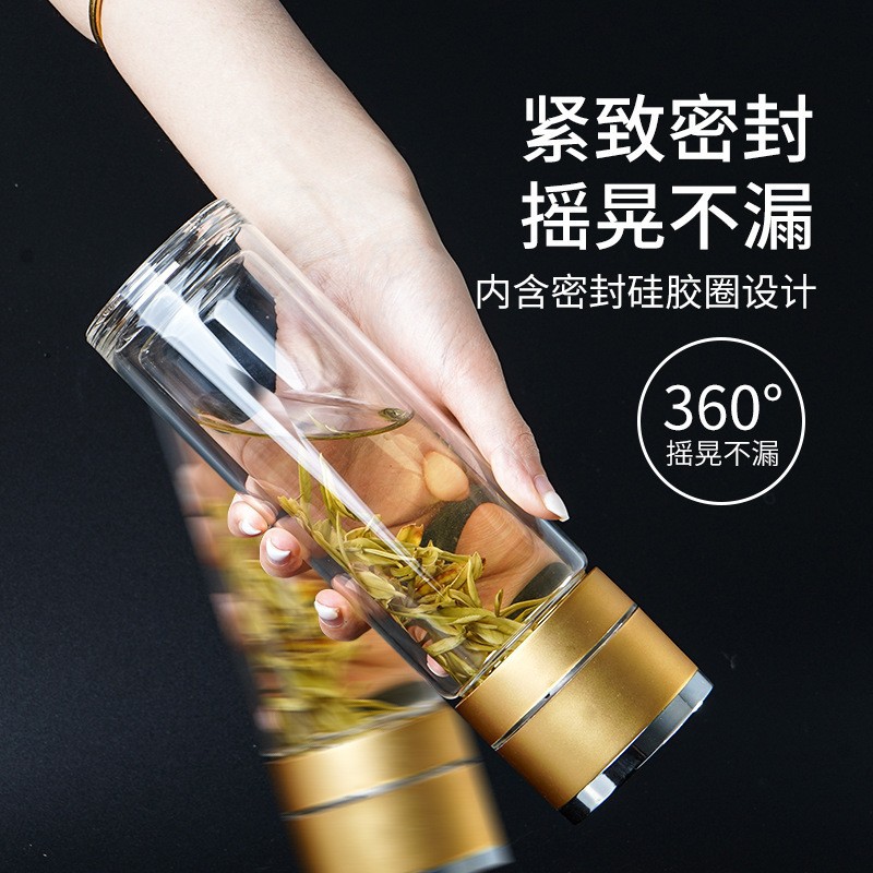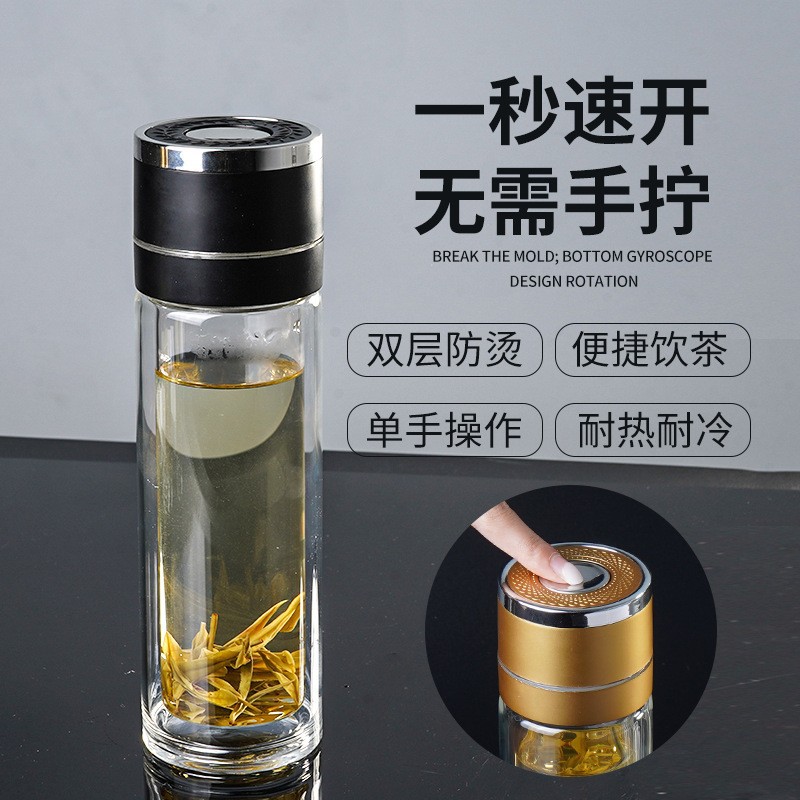 一键按压式玻璃杯防烫玻璃水杯男双层大容量泡茶杯车载速开弹盖子