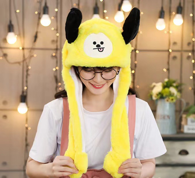 耳朵会动的帽子网红发光兔子帽气囊兔兔帽捏耳朵气囊帽厂