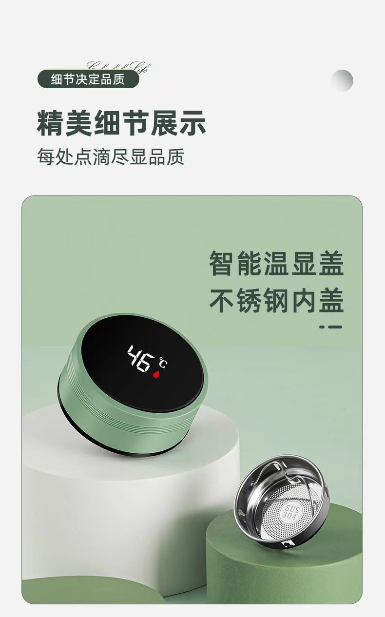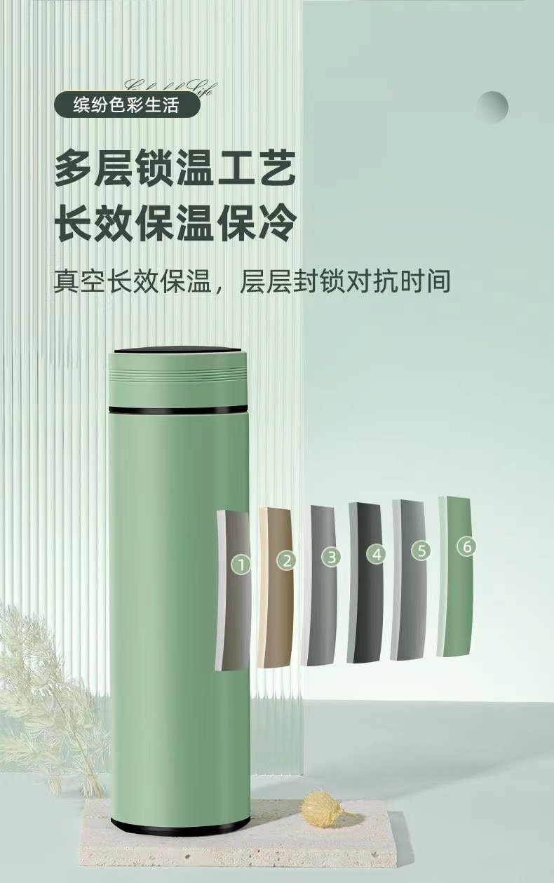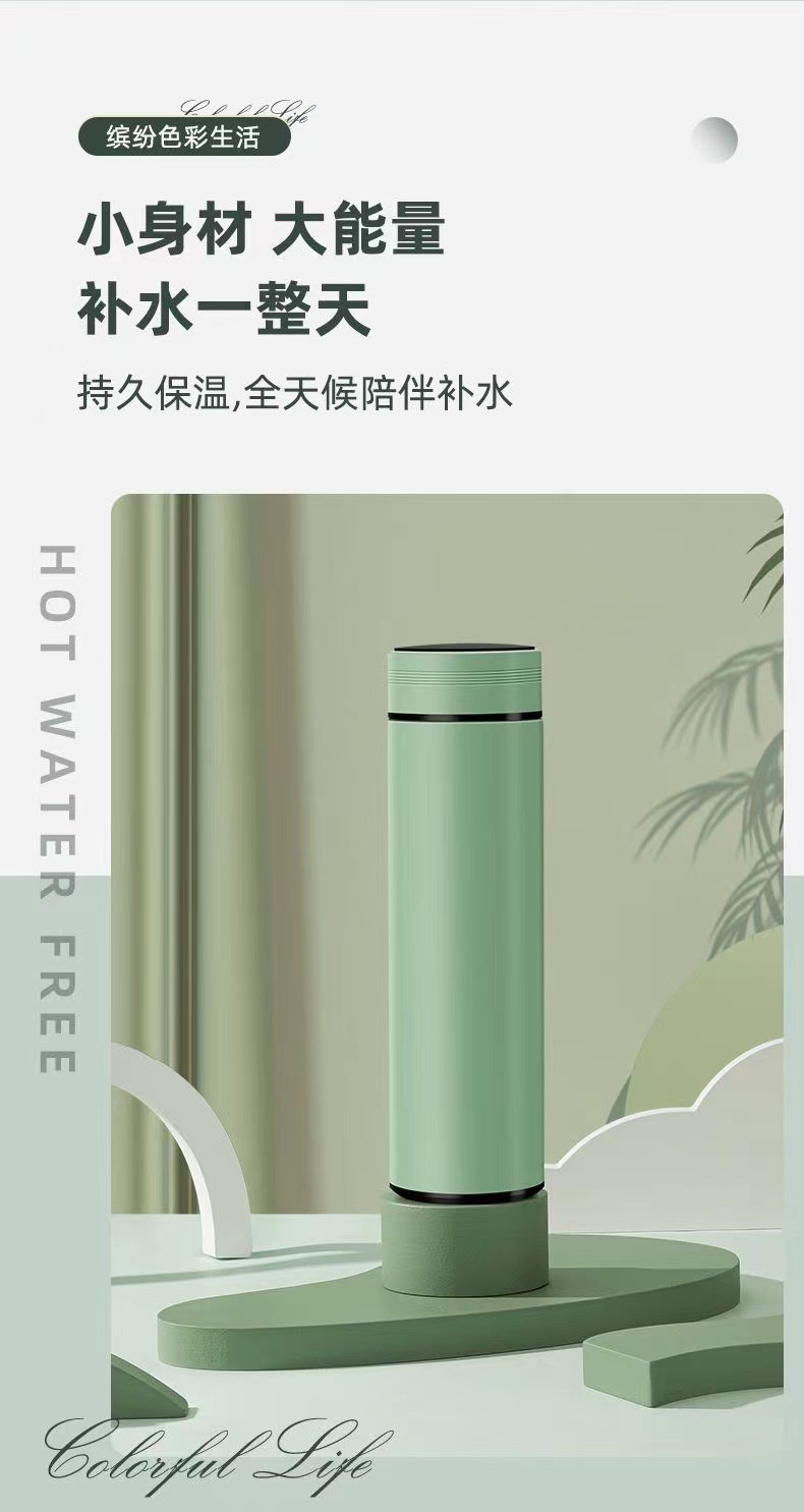 智能测温商务杯不锈钢保温杯莫兰迪配色保温杯礼品保温杯便携水杯